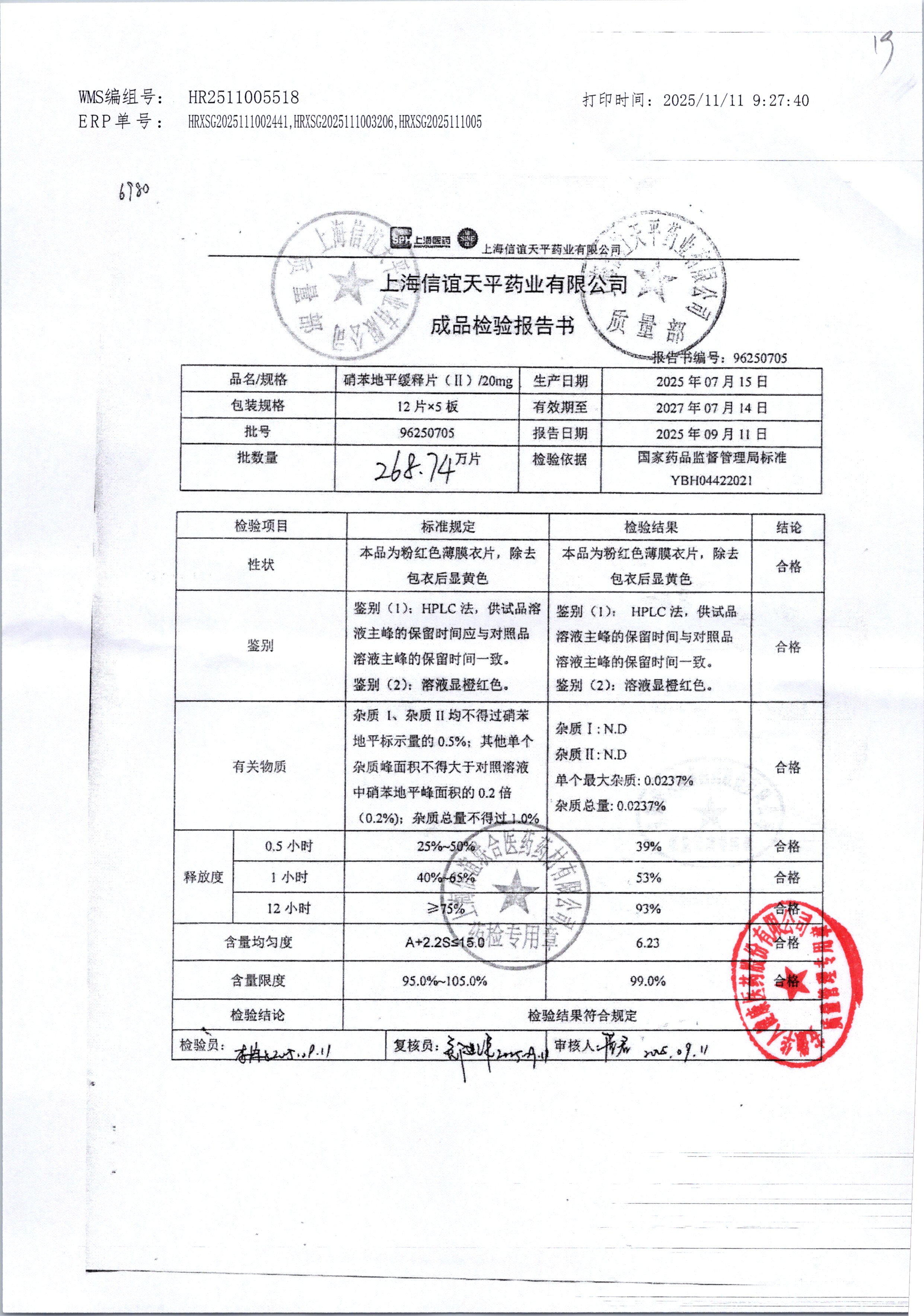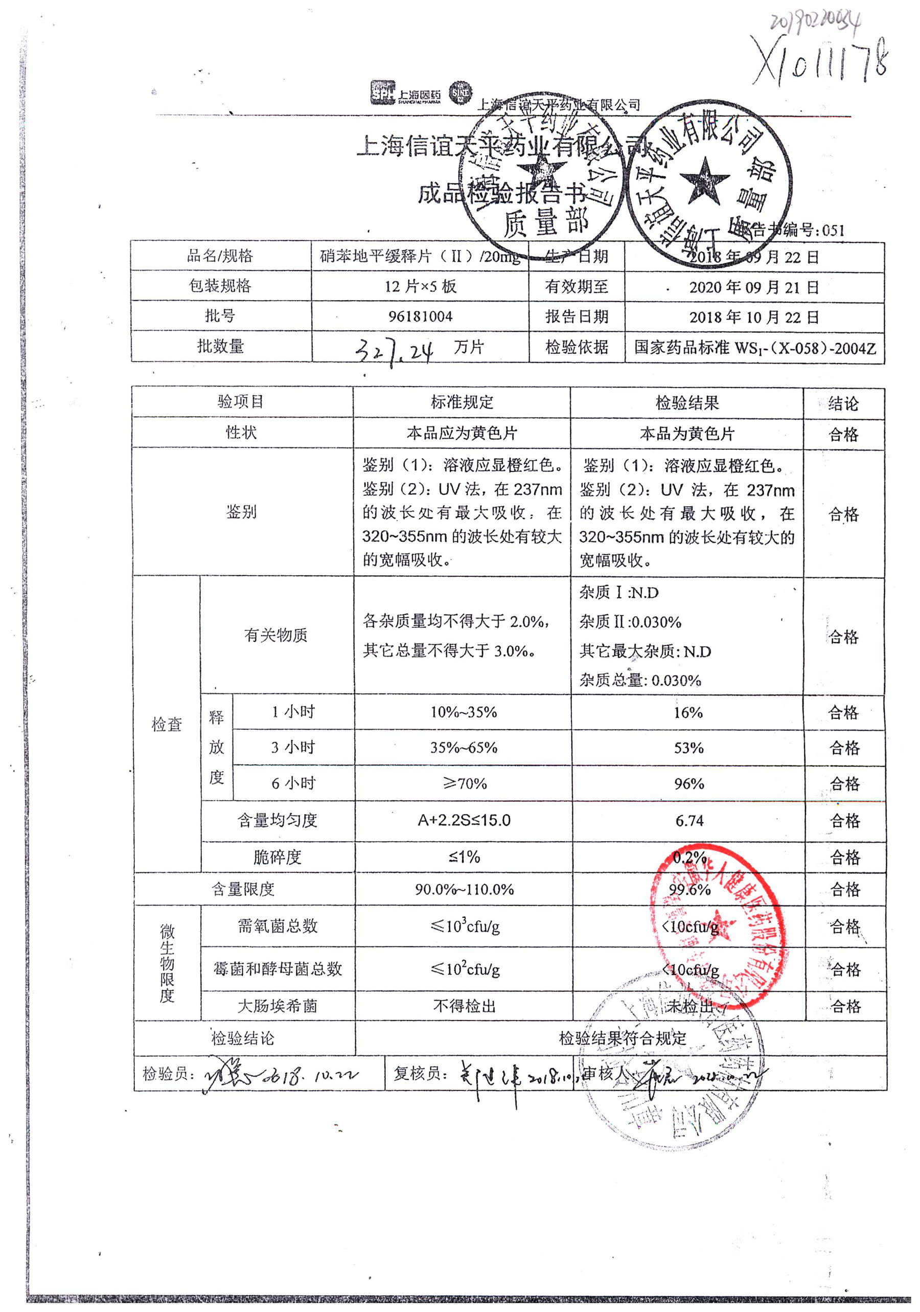 | 硝苯地平緩釋片 | 60s | 96220905 | 查看詳情 |