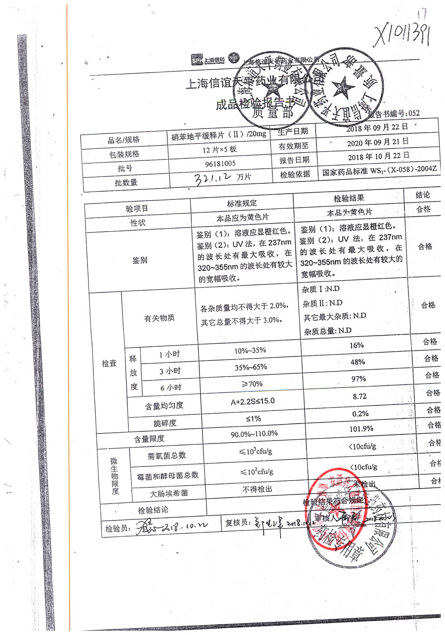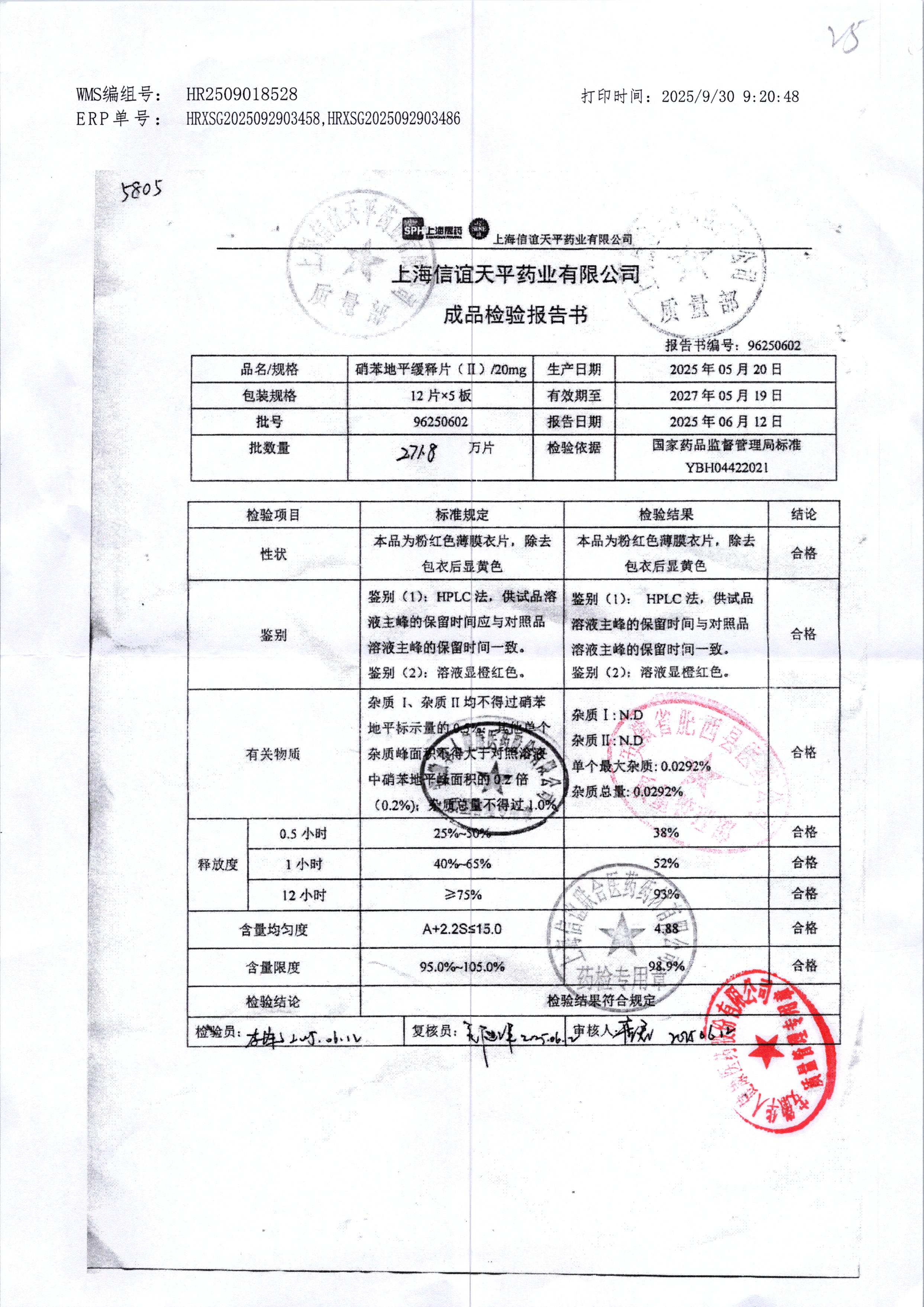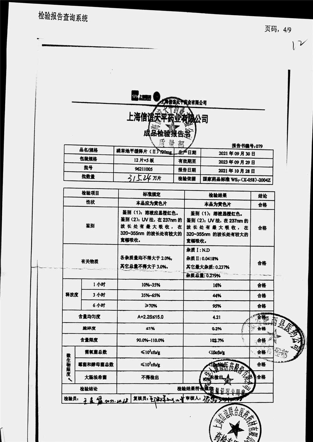 | 硝苯地平緩釋片 | 60s | 96200509 | 查看詳情 |