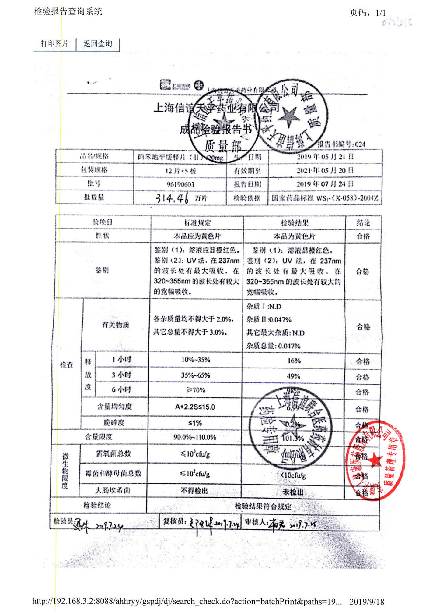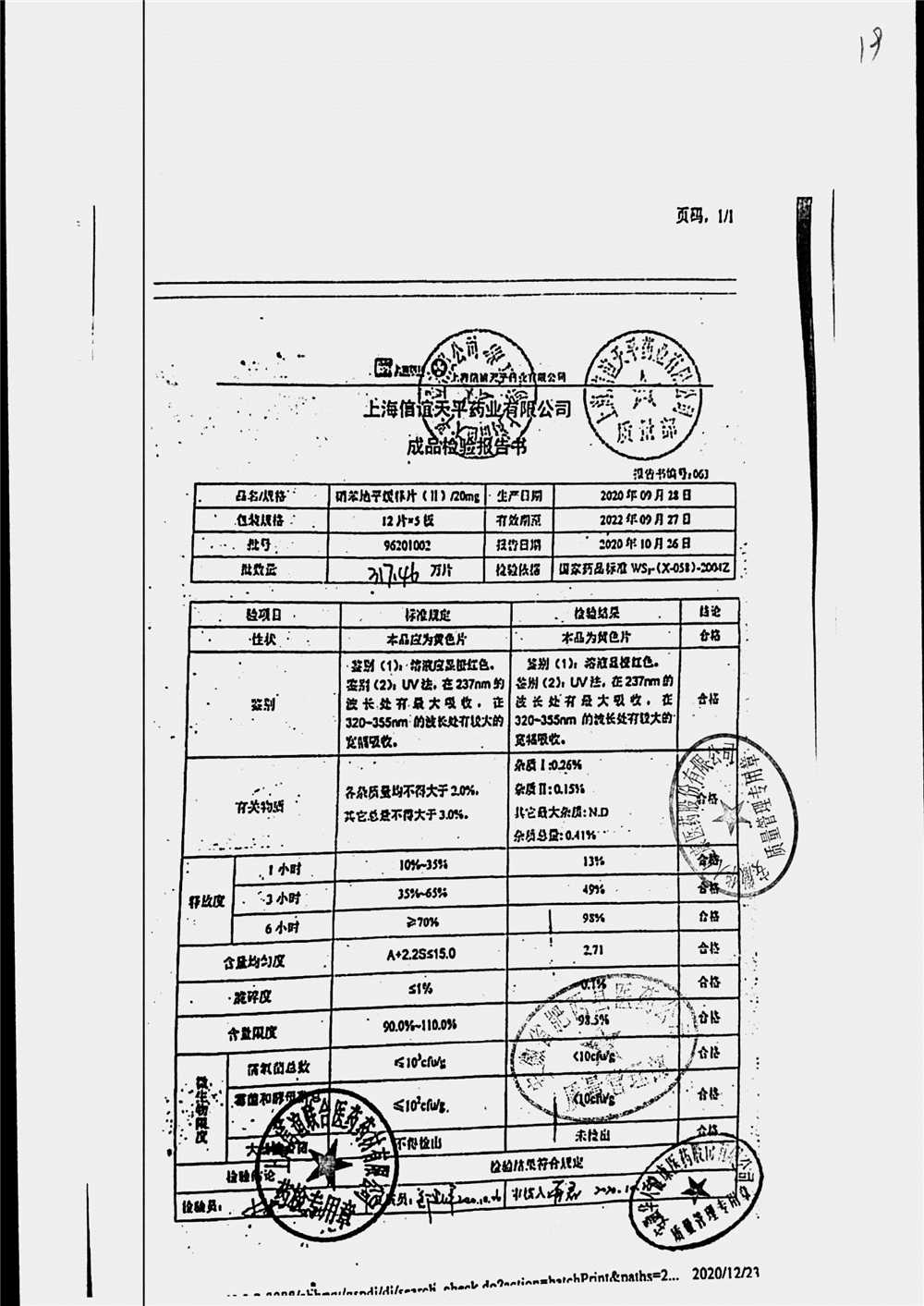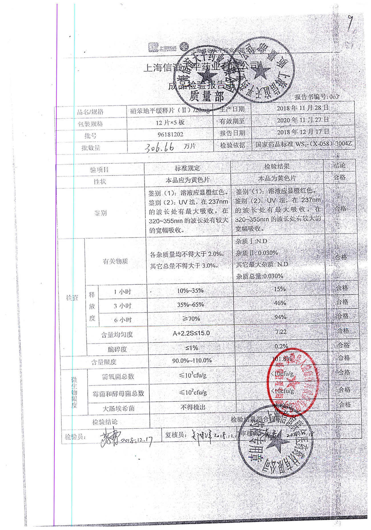 | 名稱 | 規(guī)格 | 批號 | 藥檢報告 |