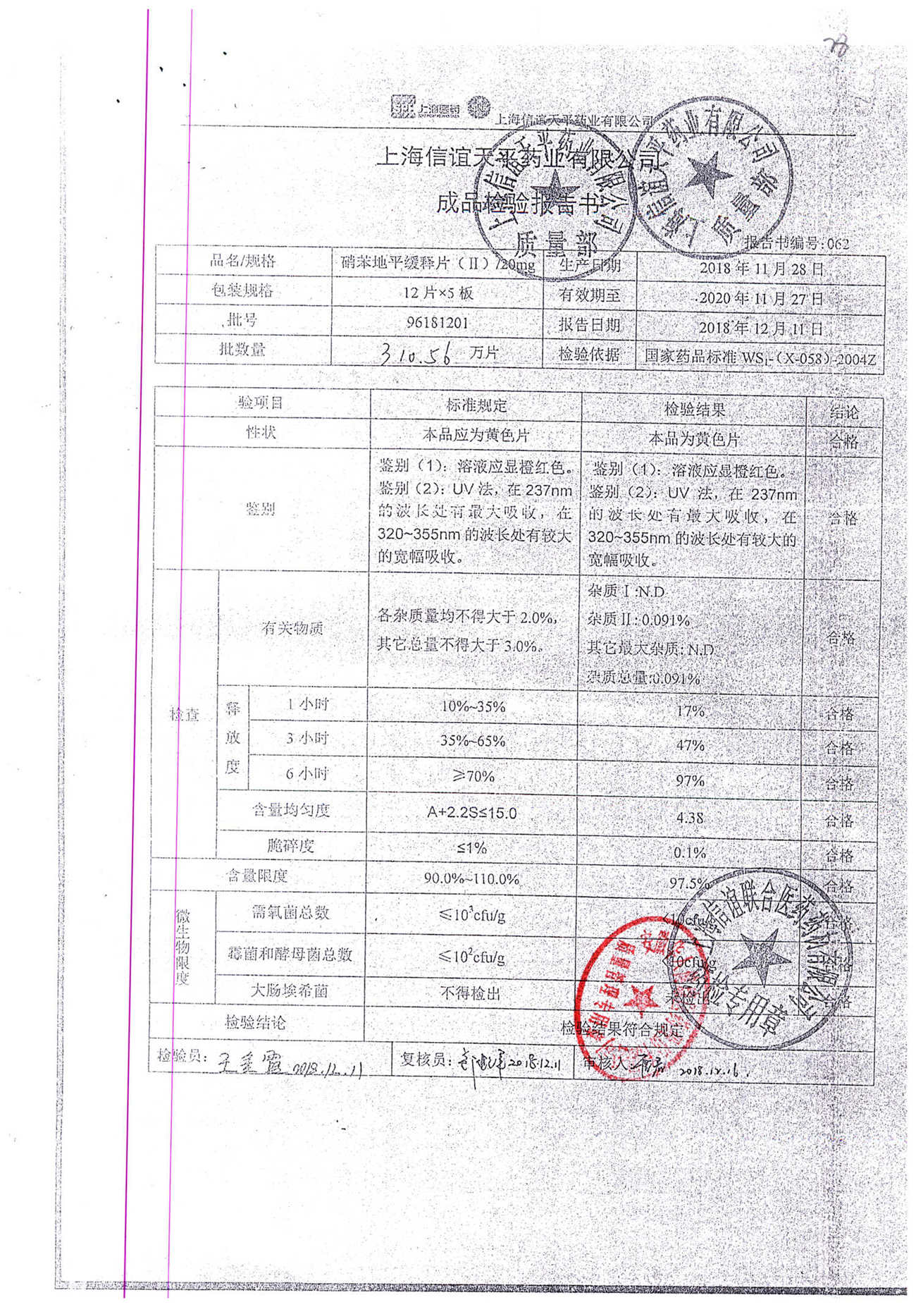 | 硝苯地平緩釋片 | 60s | 96200707 | 查看詳情 |