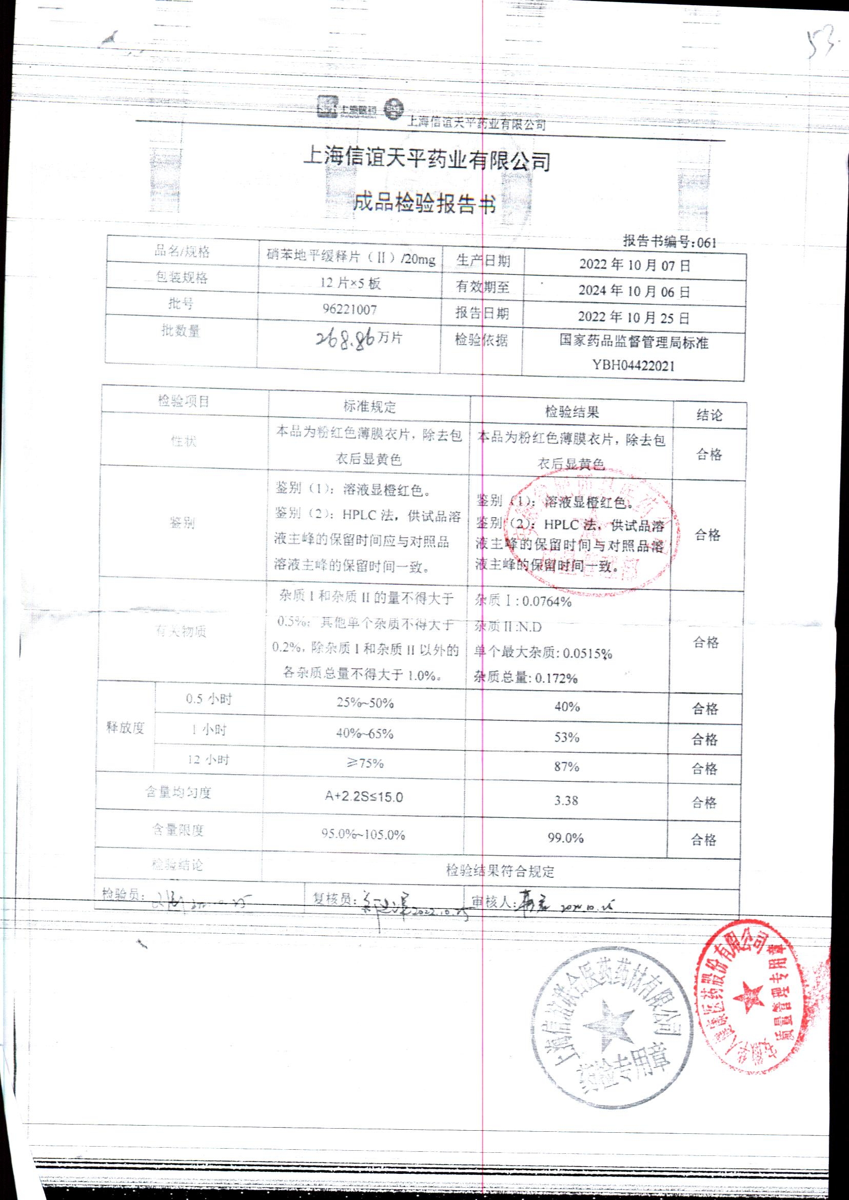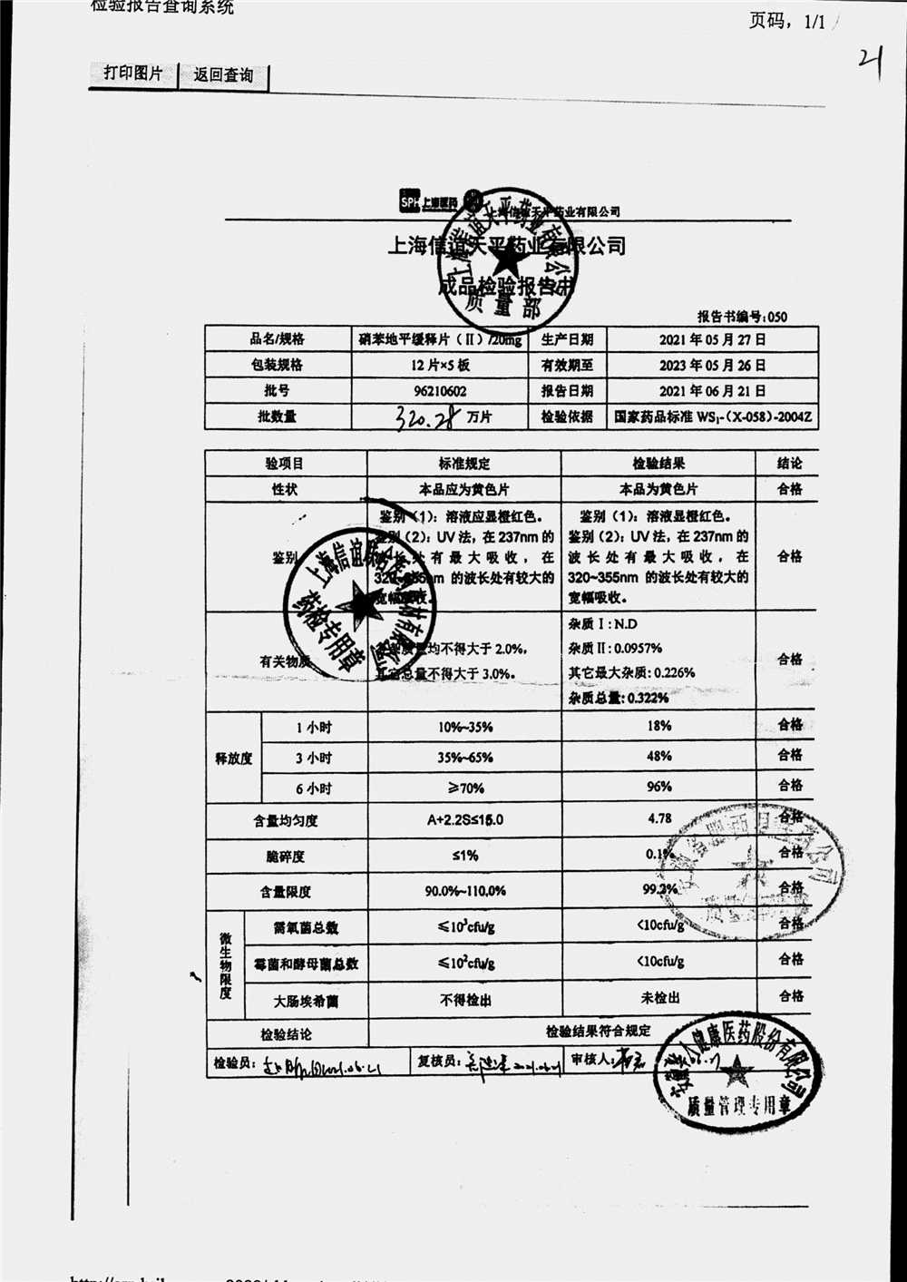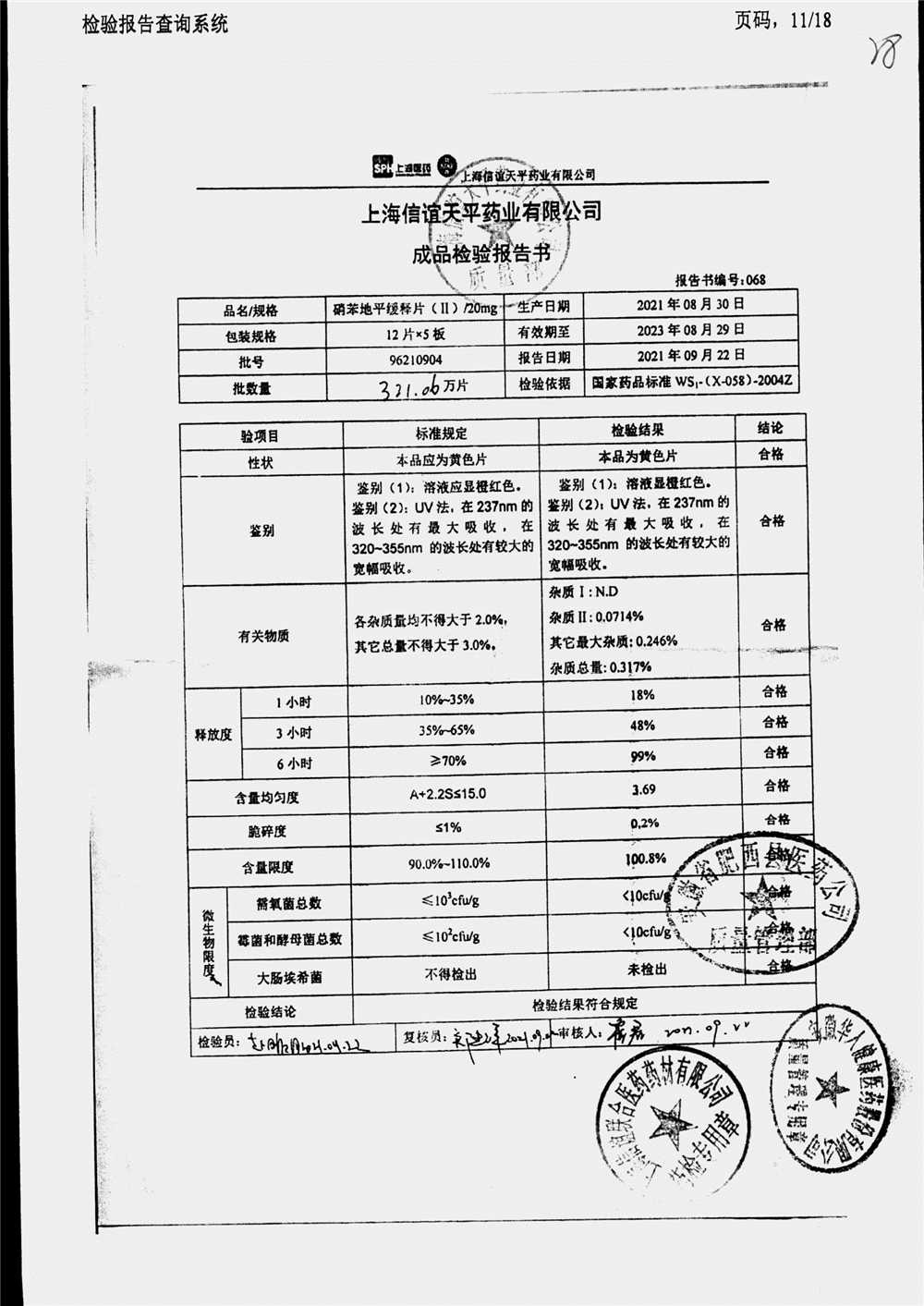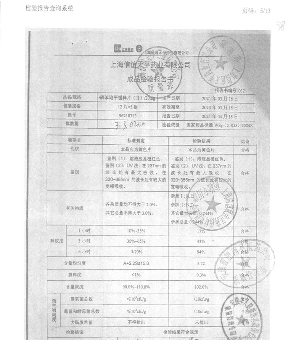 | 硝苯地平緩釋片 | 60s | 96210602 | 查看詳情 |