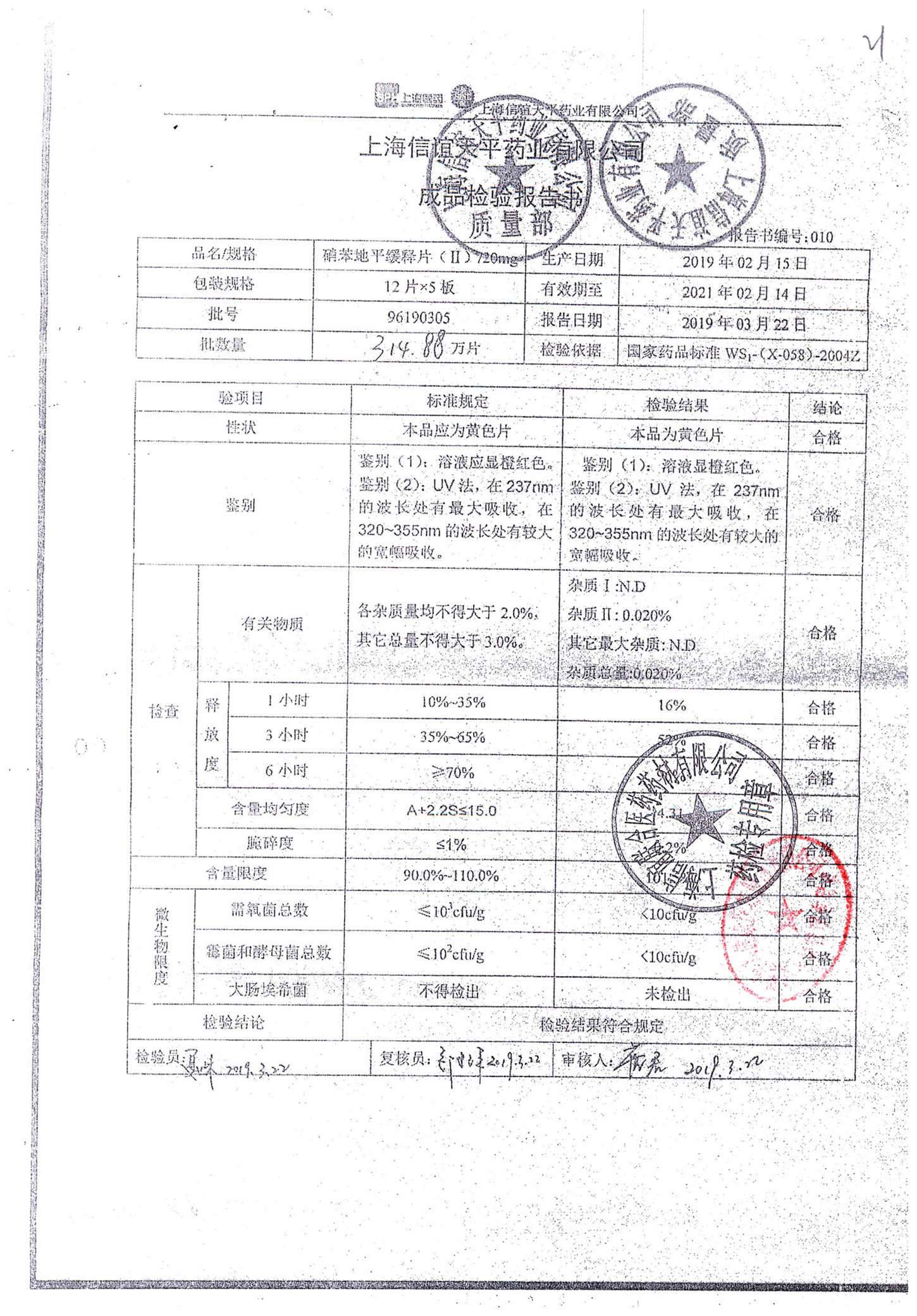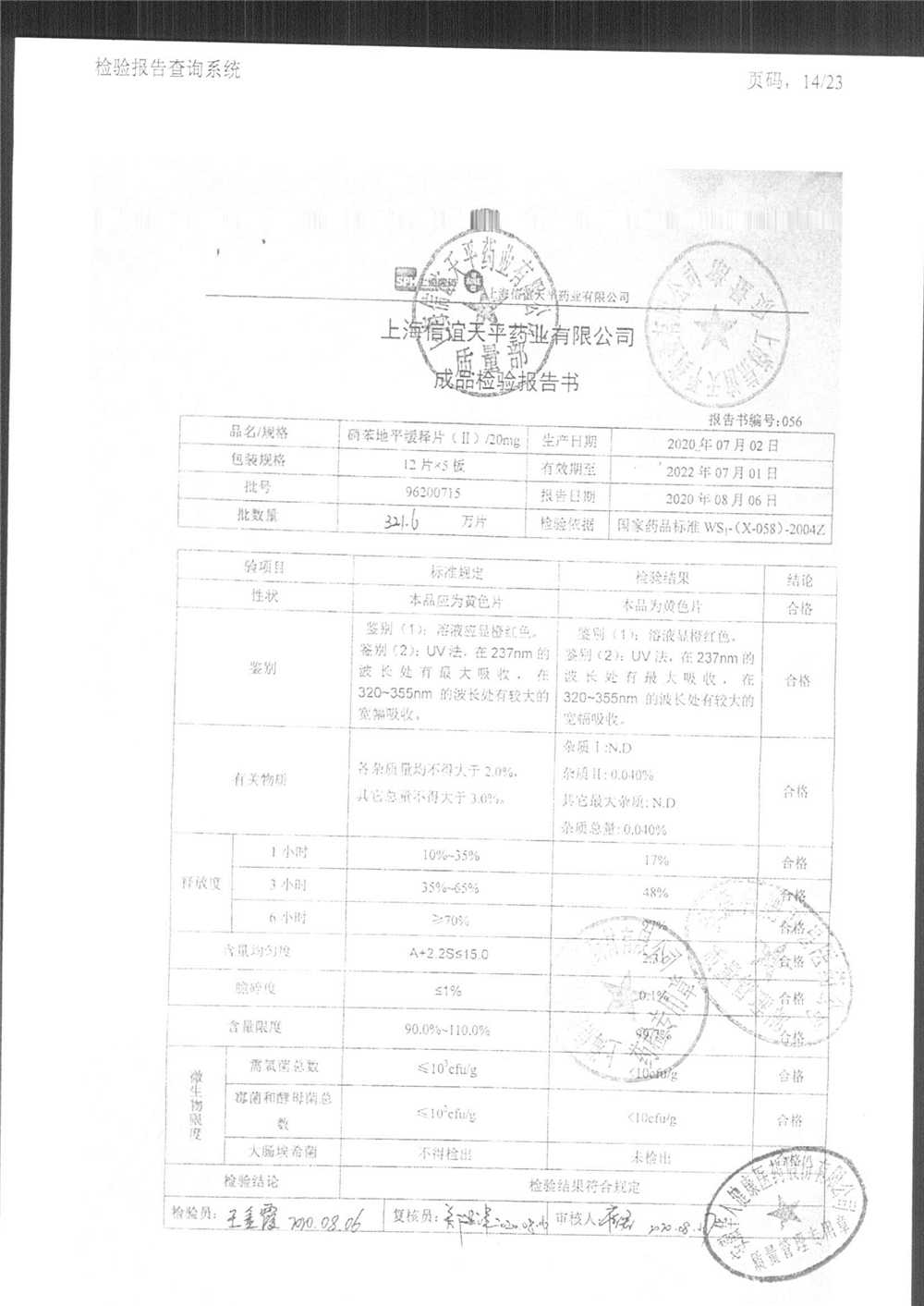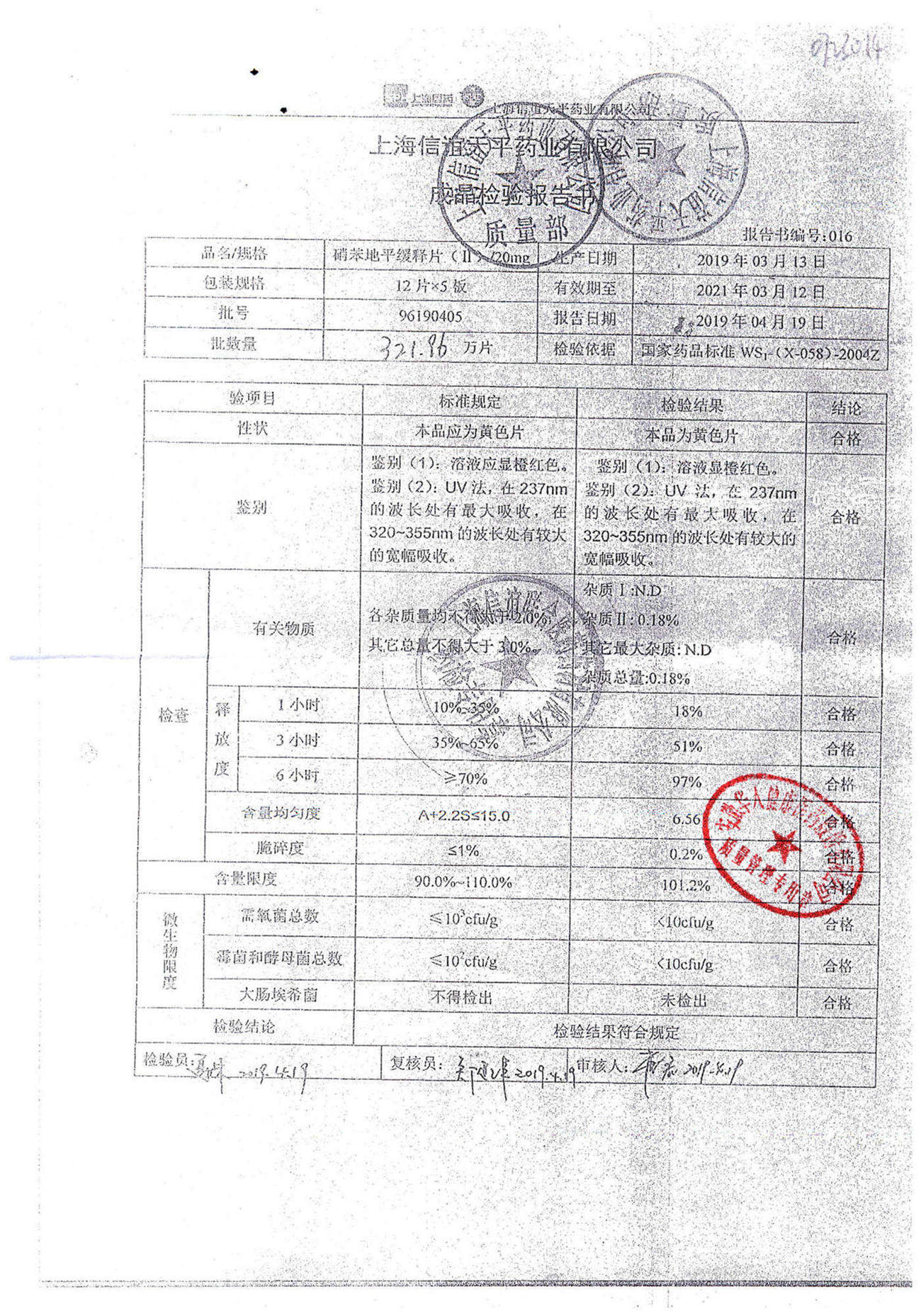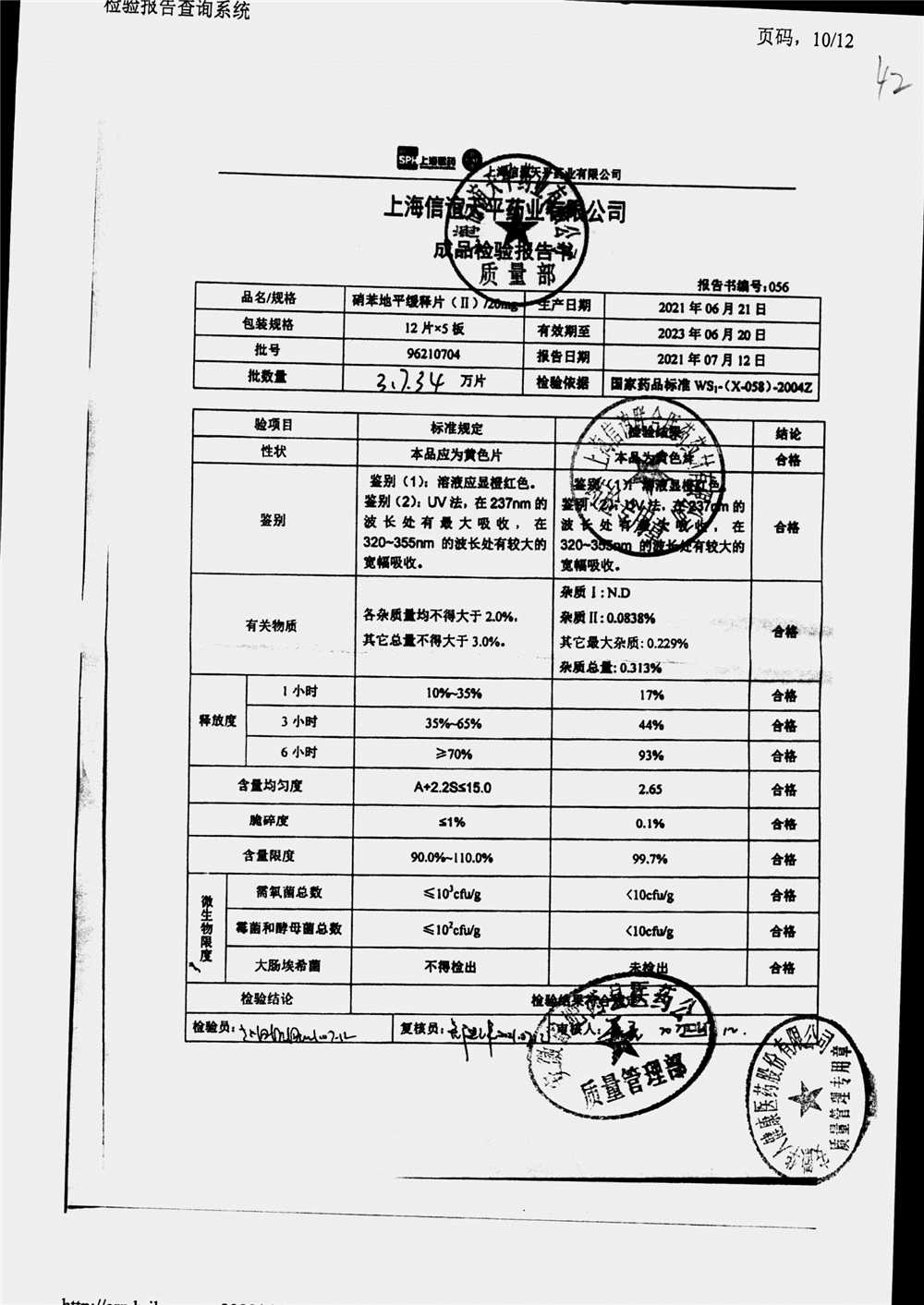 | 硝苯地平緩釋片 | 60s | 96210602 | 查看詳情 |