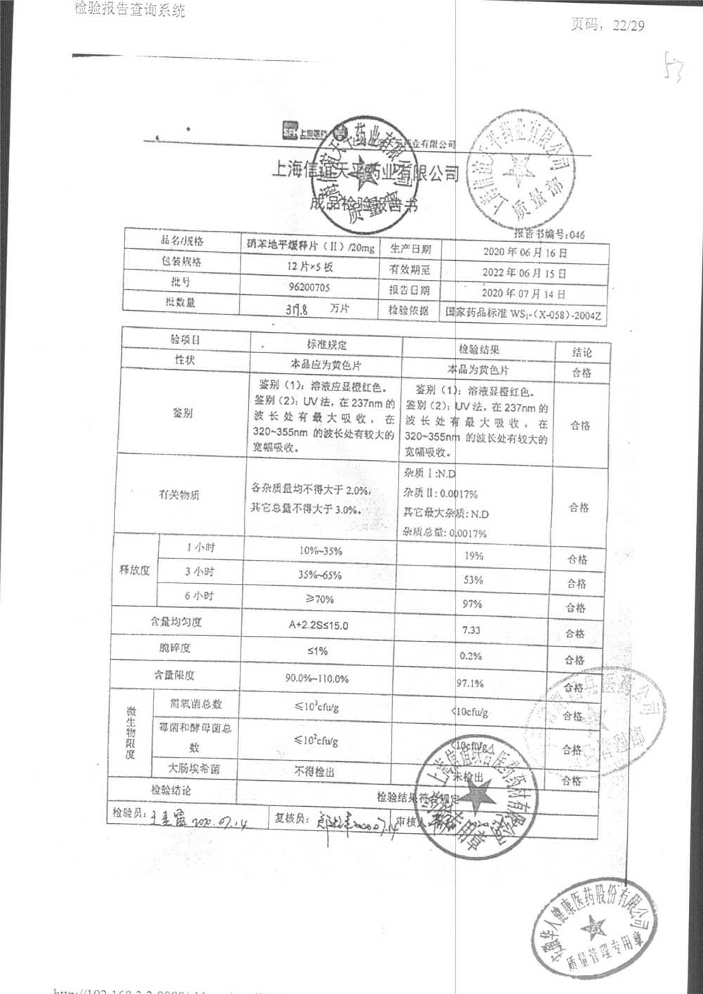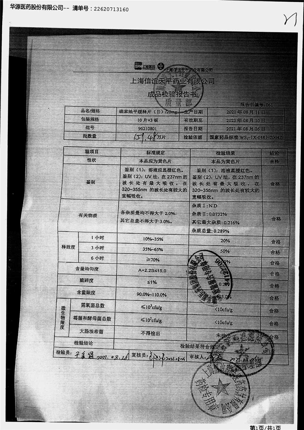 | 硝苯地平緩釋片 | 60s | 96220807 | 查看詳情 |