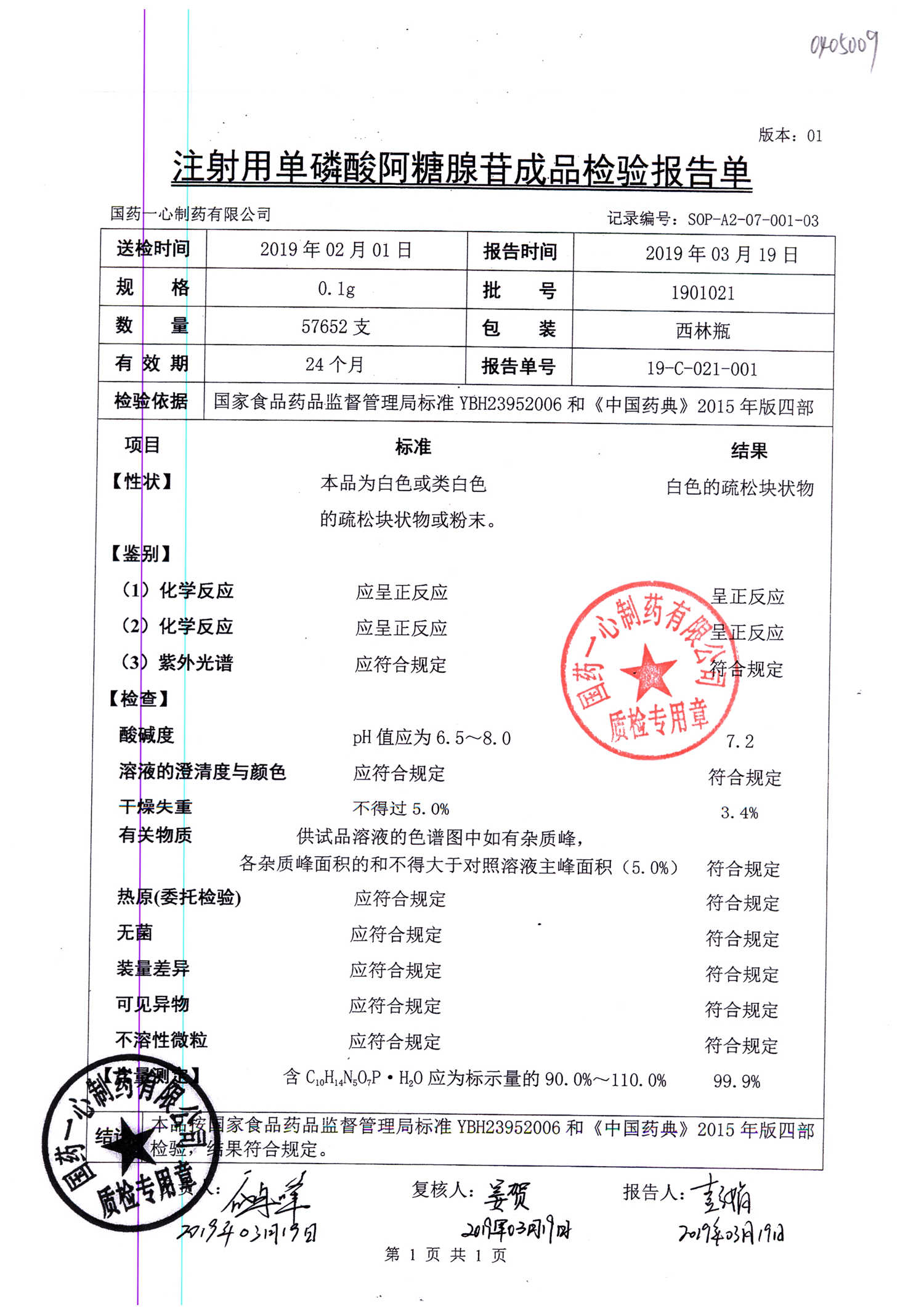 | 名稱 | 規(guī)格 | 批號(hào) | 藥檢報(bào)告 |
