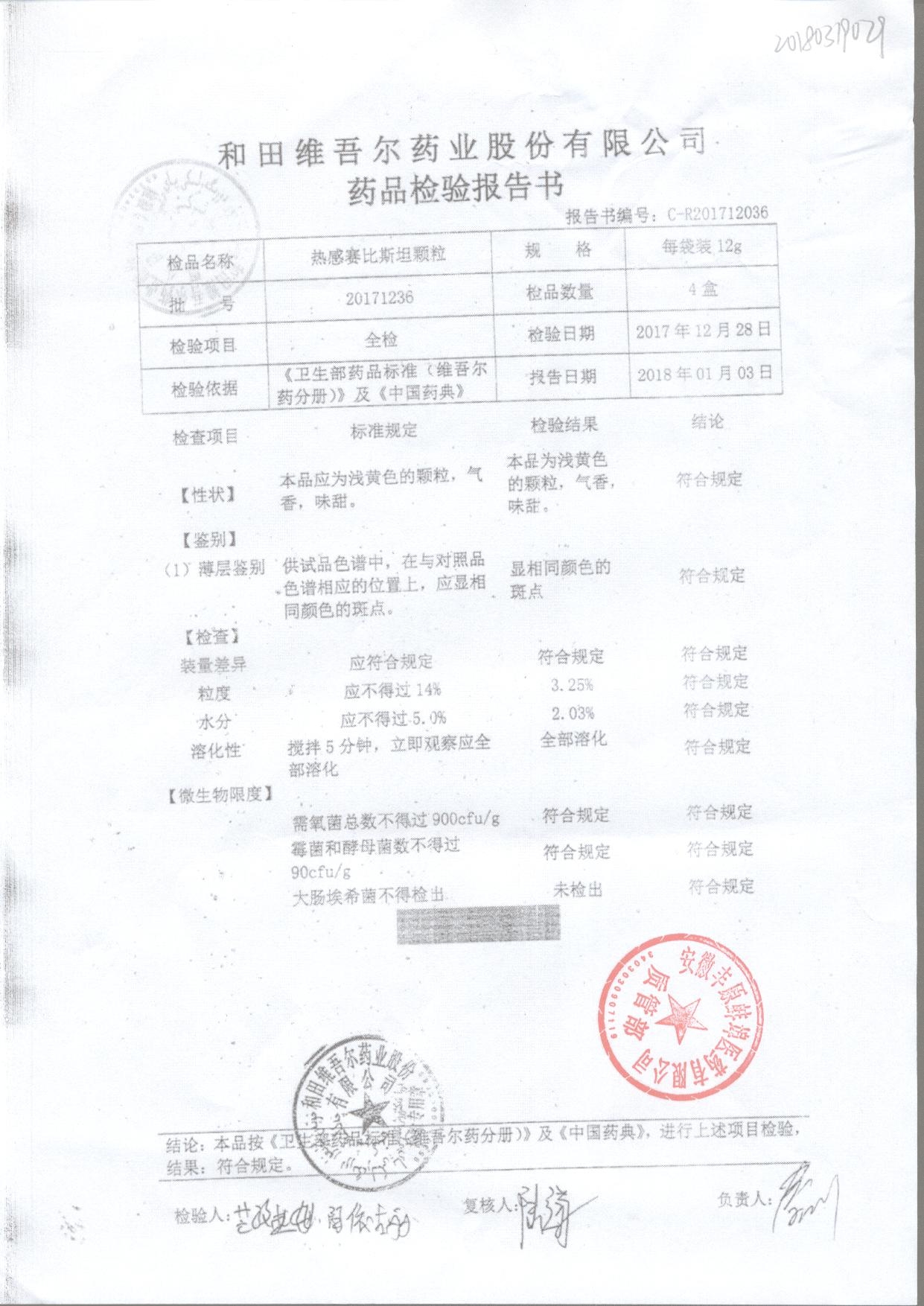 | 熱感賽比斯坦顆粒 | 12g | 20180111 | 查看詳情 |