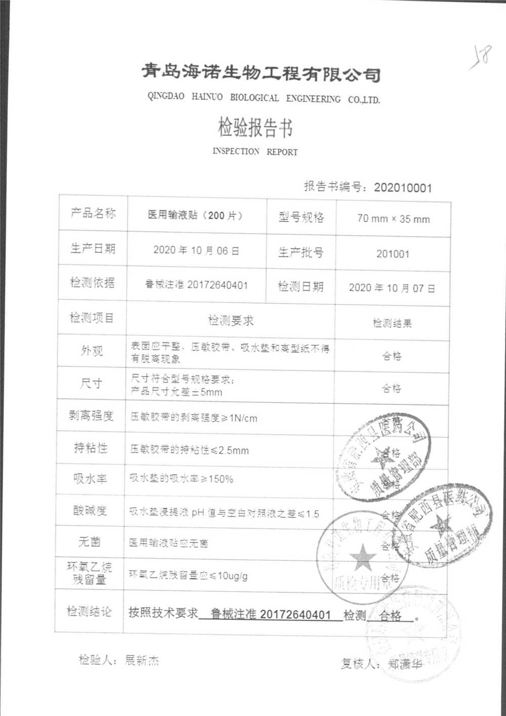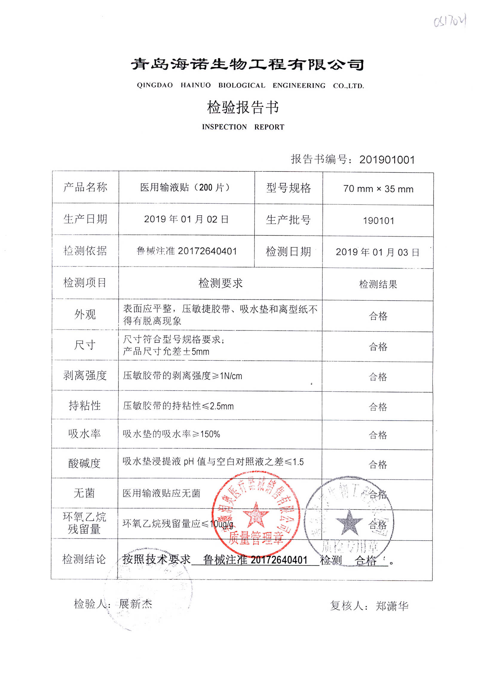 | 醫(yī)用輸液貼(200片) | 70mmx35mm | 180101 | 查看詳情 |