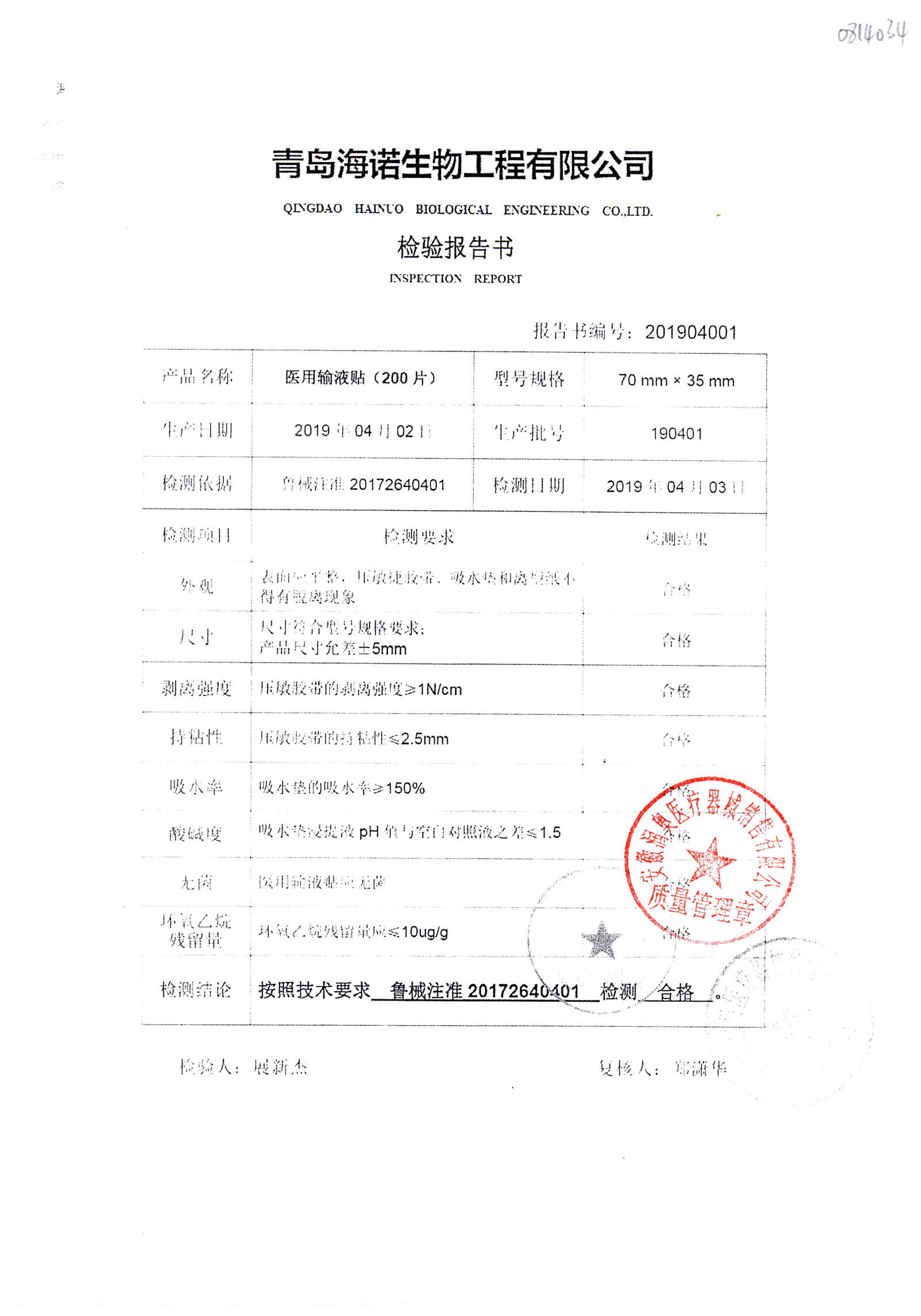 | 醫(yī)用輸液貼(200片) | 70mmx35mm | 190401 | 查看詳情 |