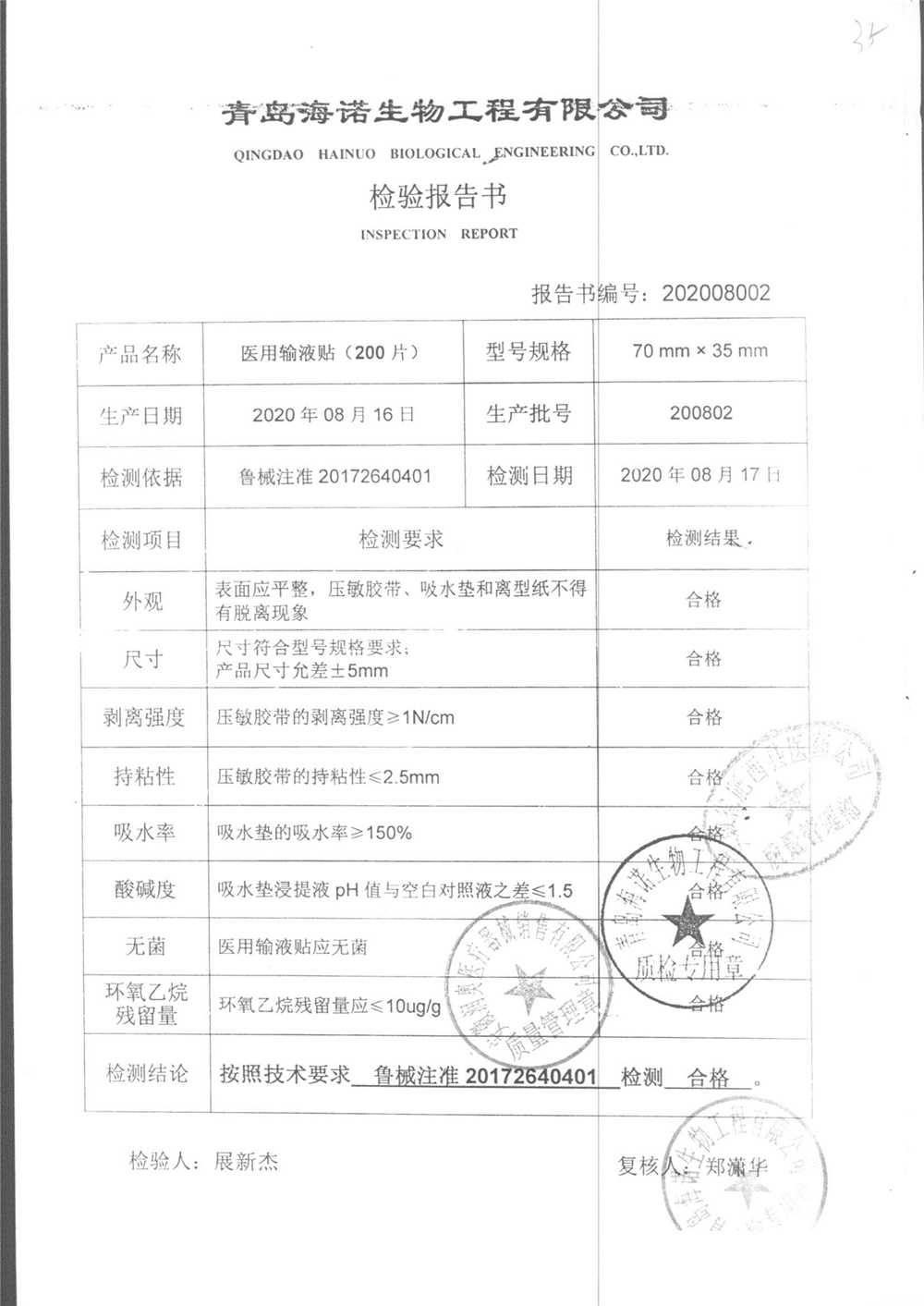 | 醫(yī)用輸液貼(200片) | 70mmx35mm | 191102 | 查看詳情 |