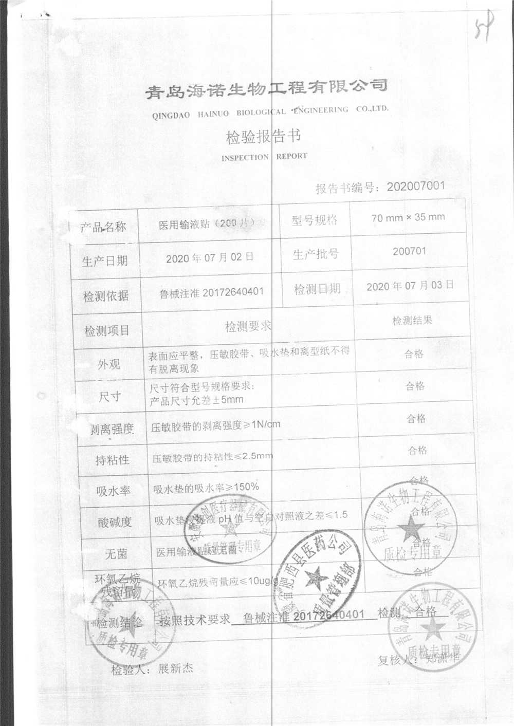 | 醫(yī)用輸液貼(200片) | 70mmx35mm | 200701 | 查看詳情 |