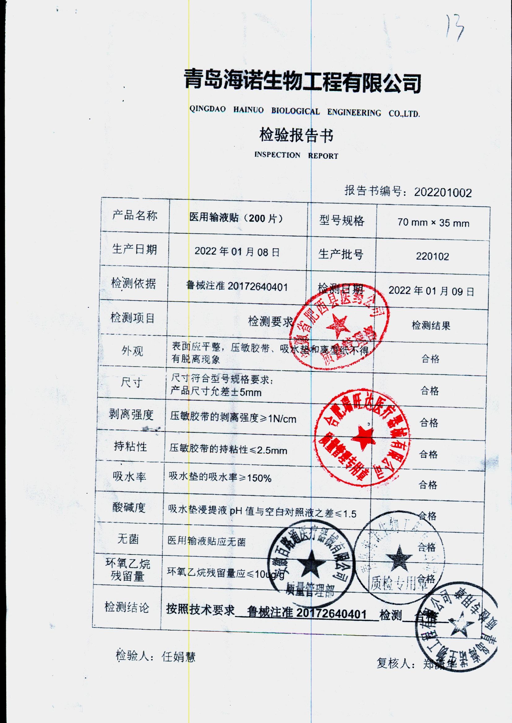 | 醫(yī)用輸液貼(200片) | 70mmx35mm | 220102 | 查看詳情 |