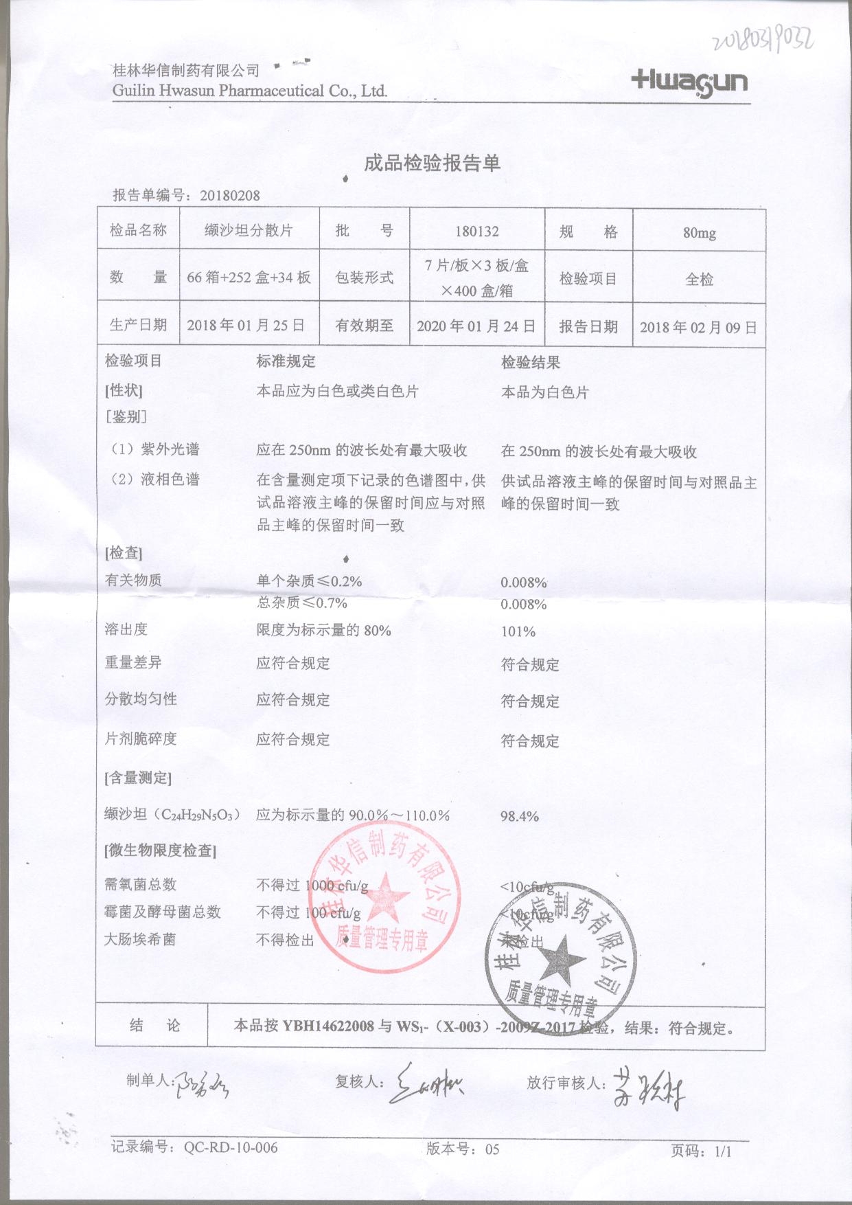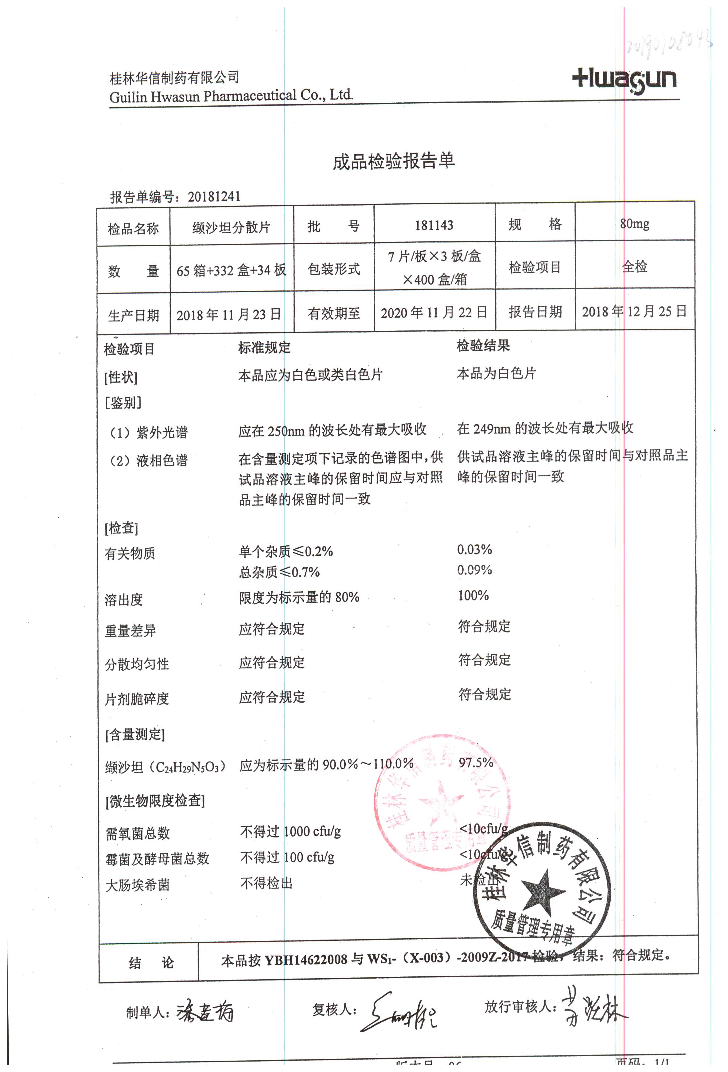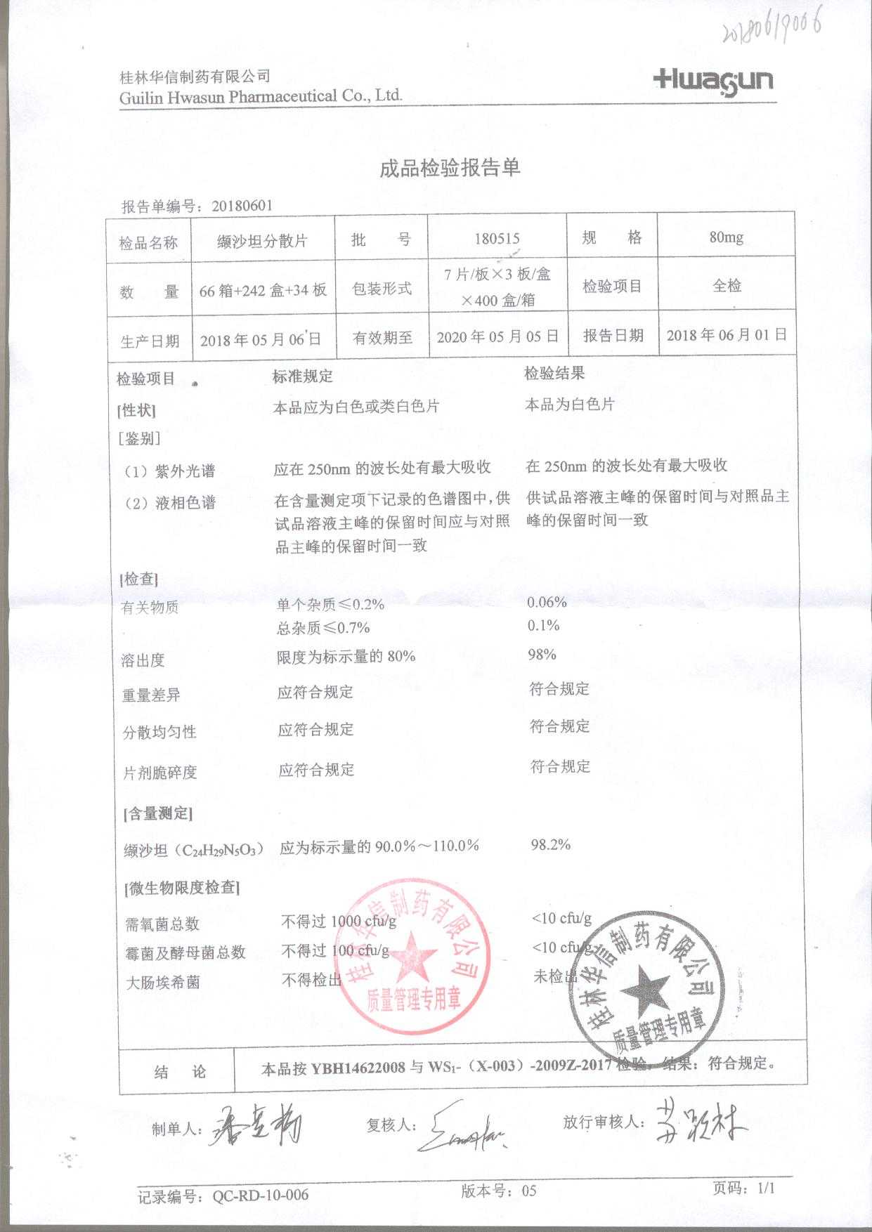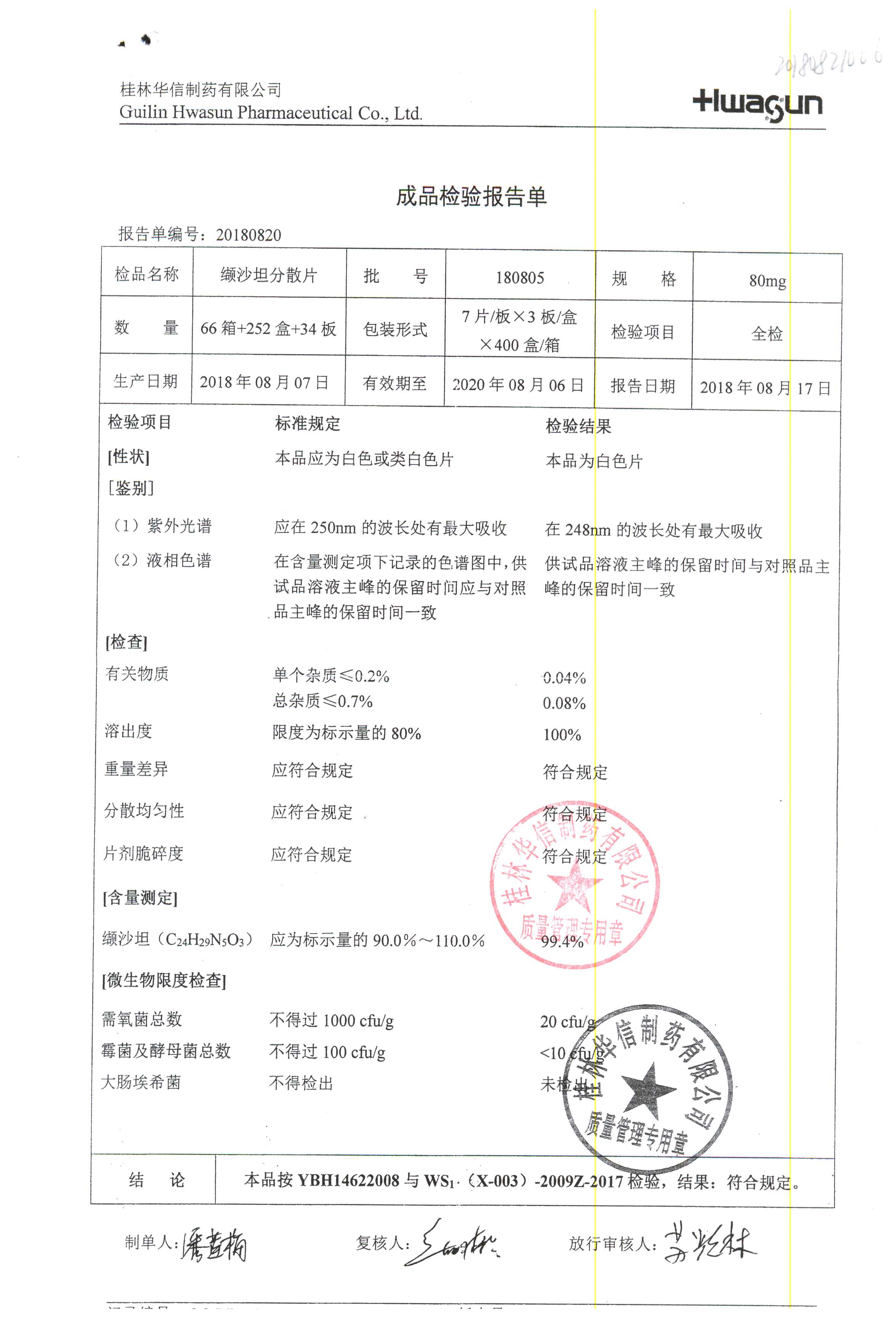 | 纈沙坦分散片 | 21s | 180805 | 查看詳情 |