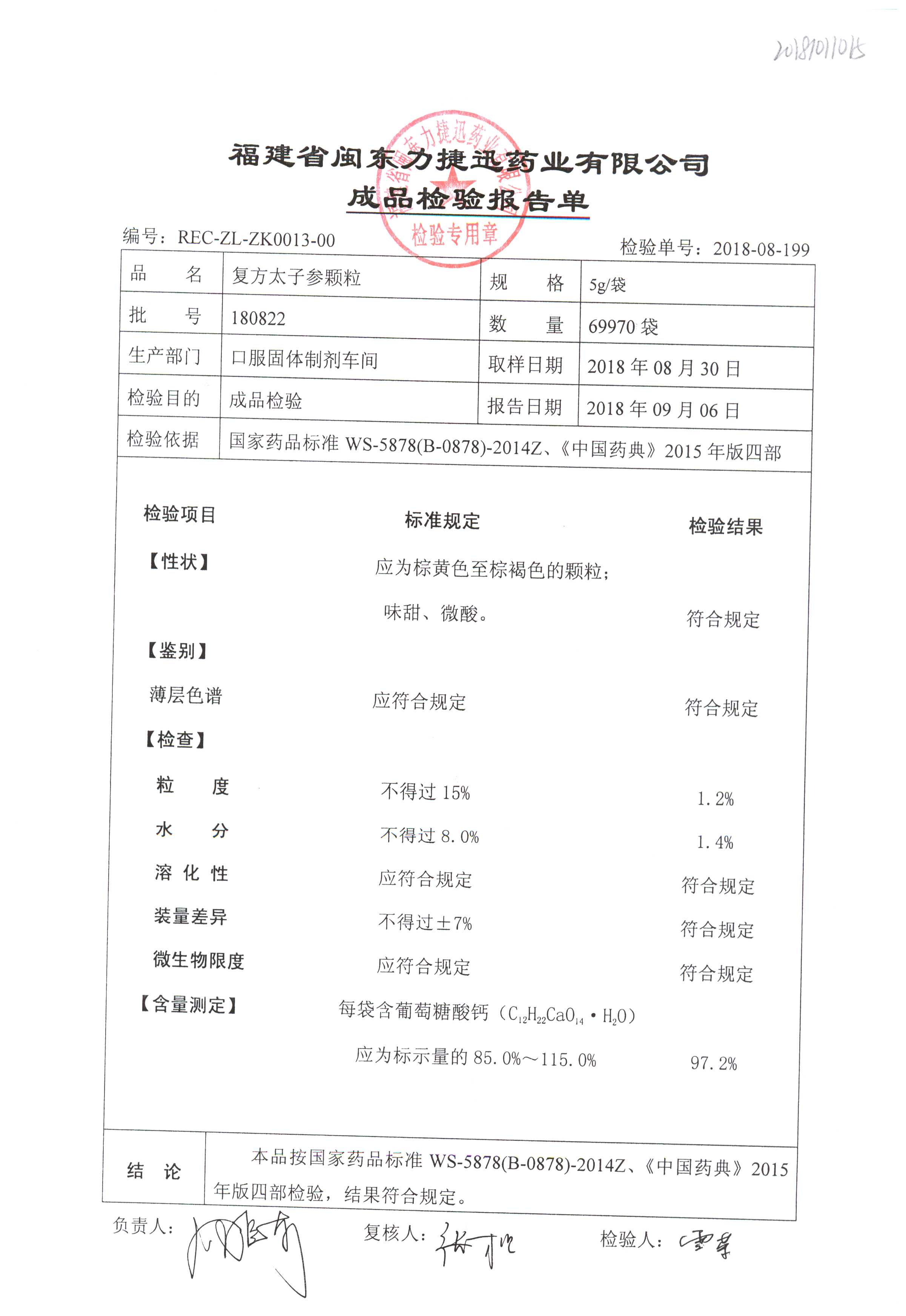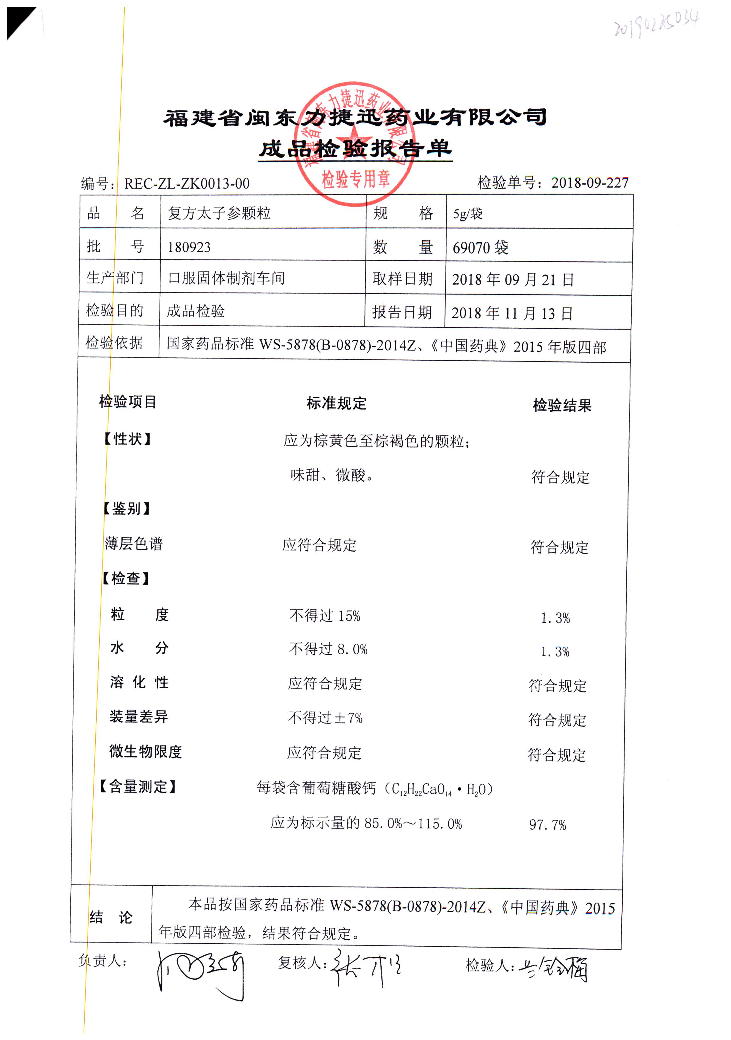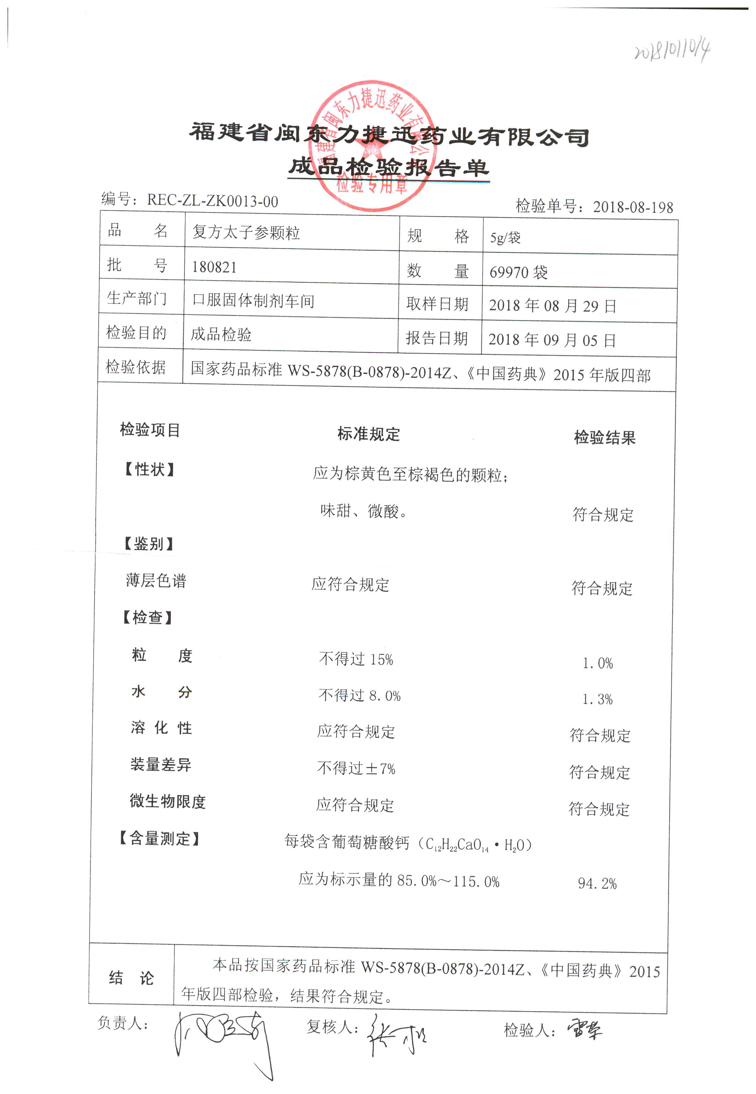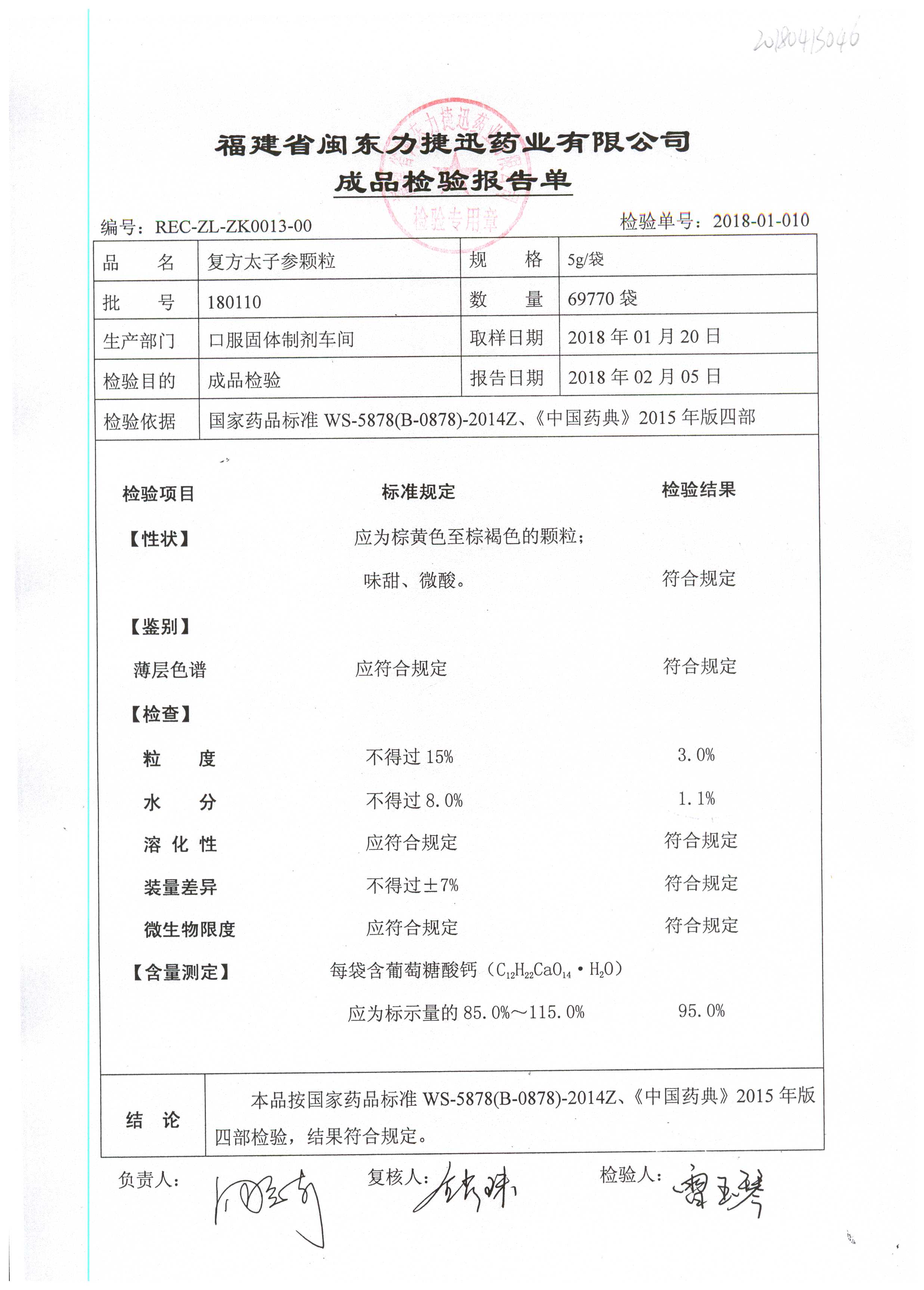| 復方太子參顆粒 | 5g | 180605 | 查看詳情 |
