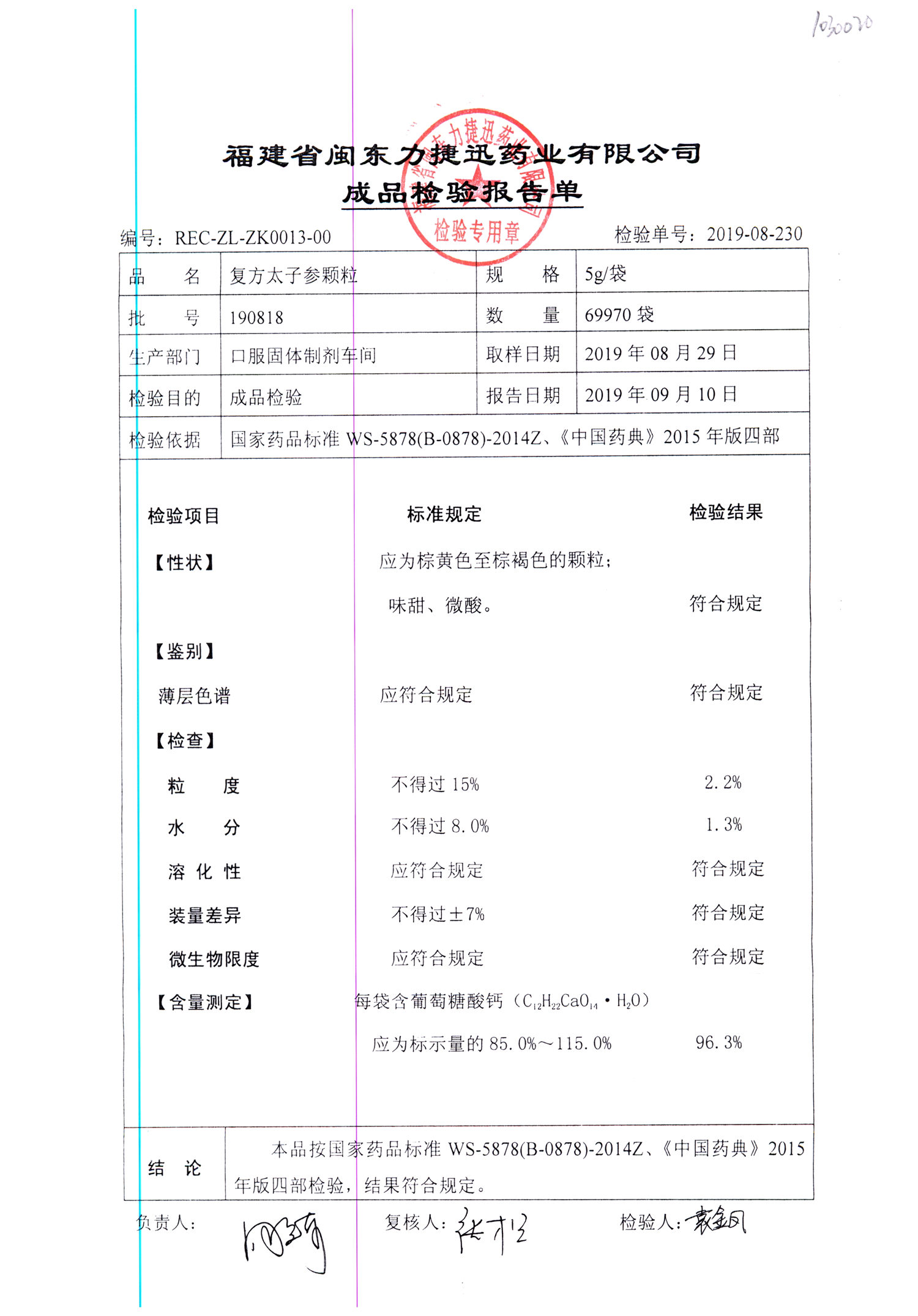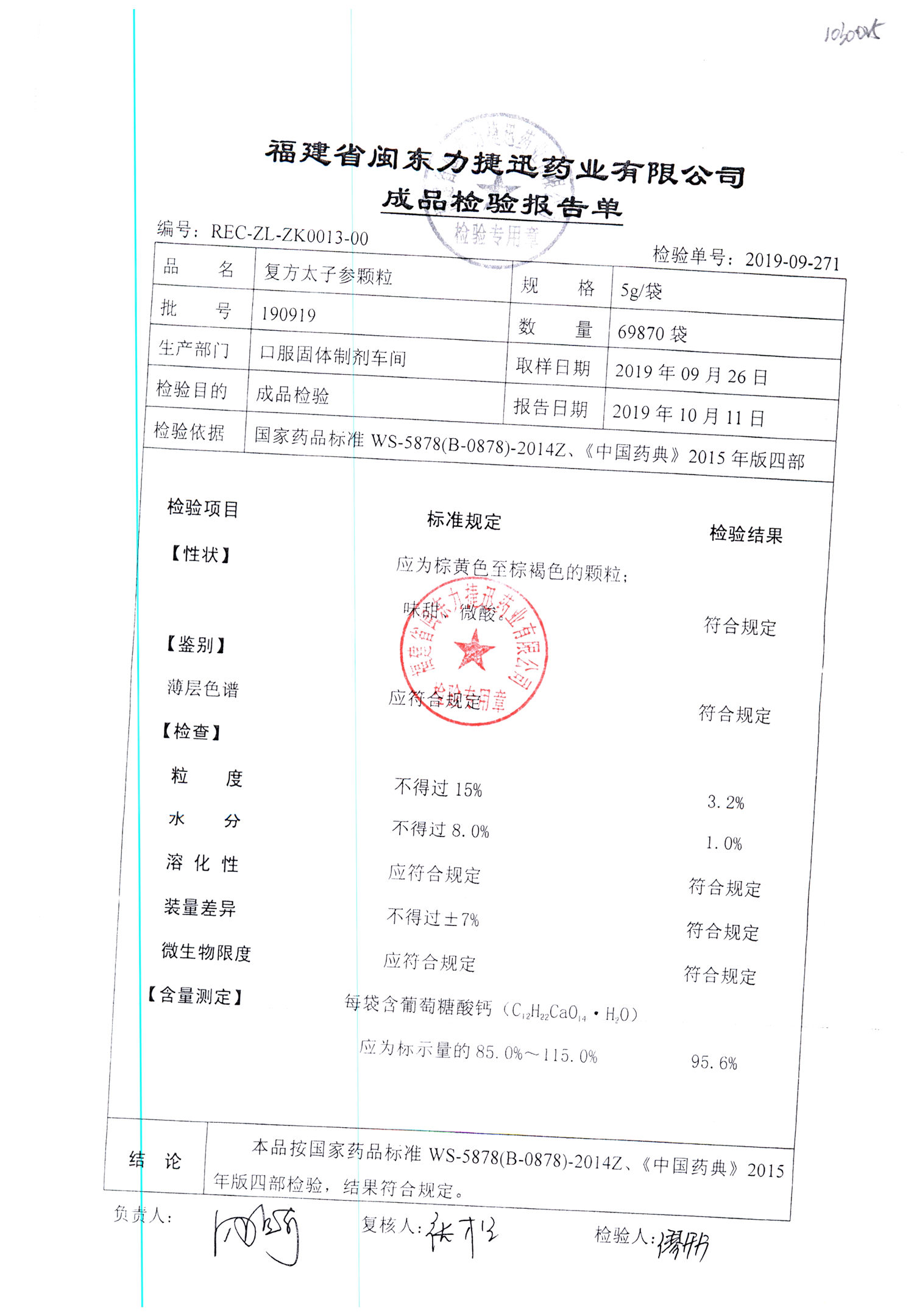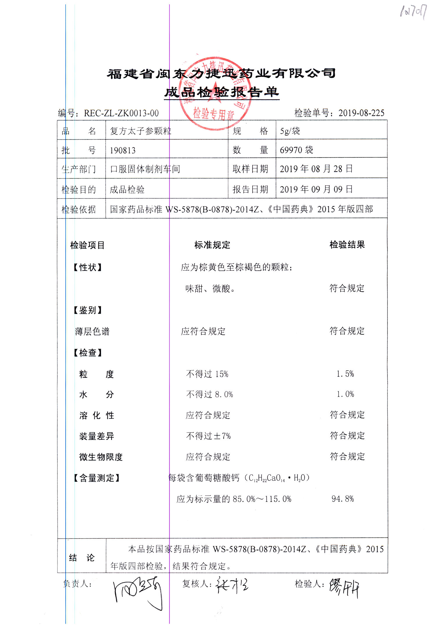 | 復方太子參顆粒 | 5g | 190813 | 查看詳情 |