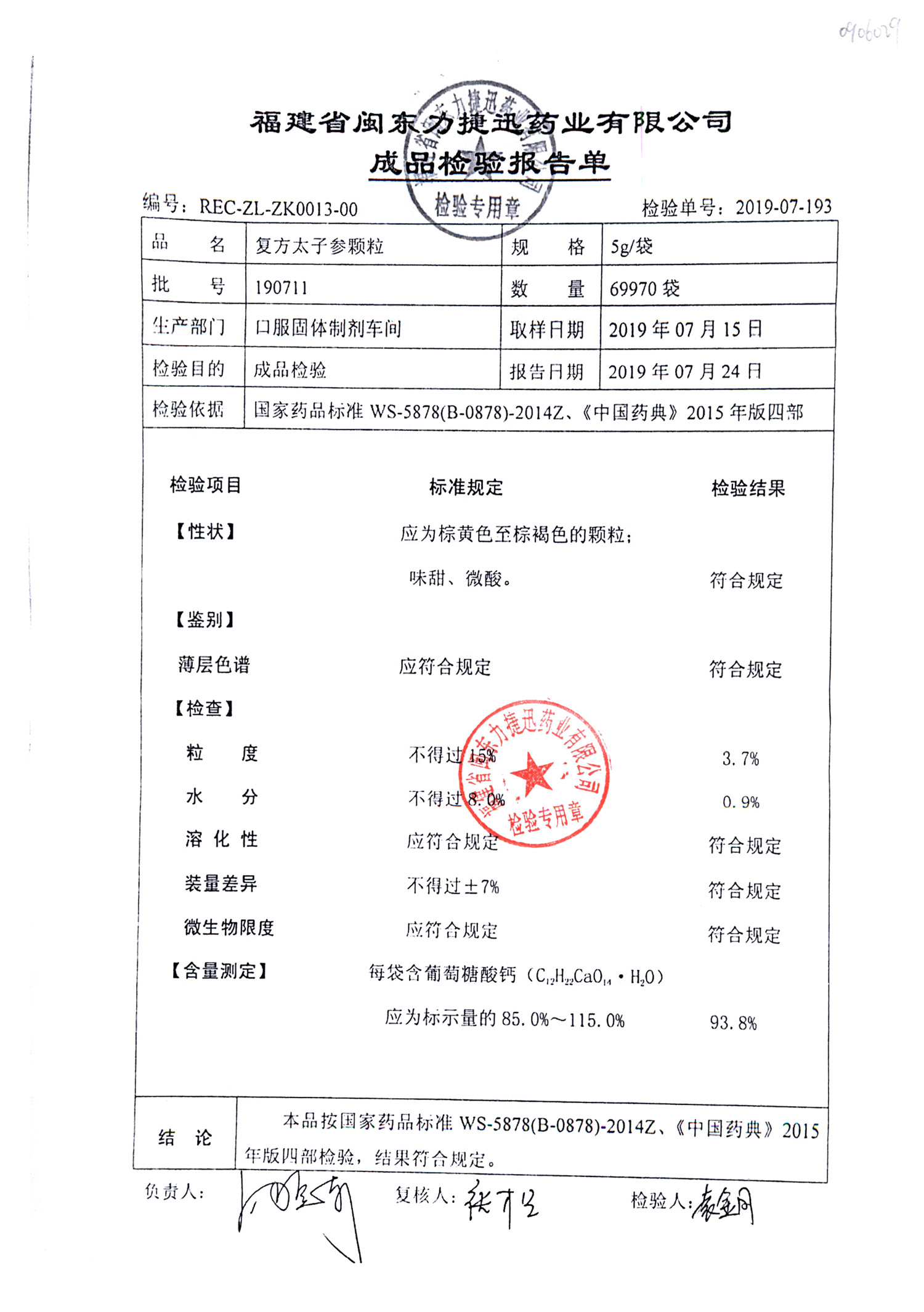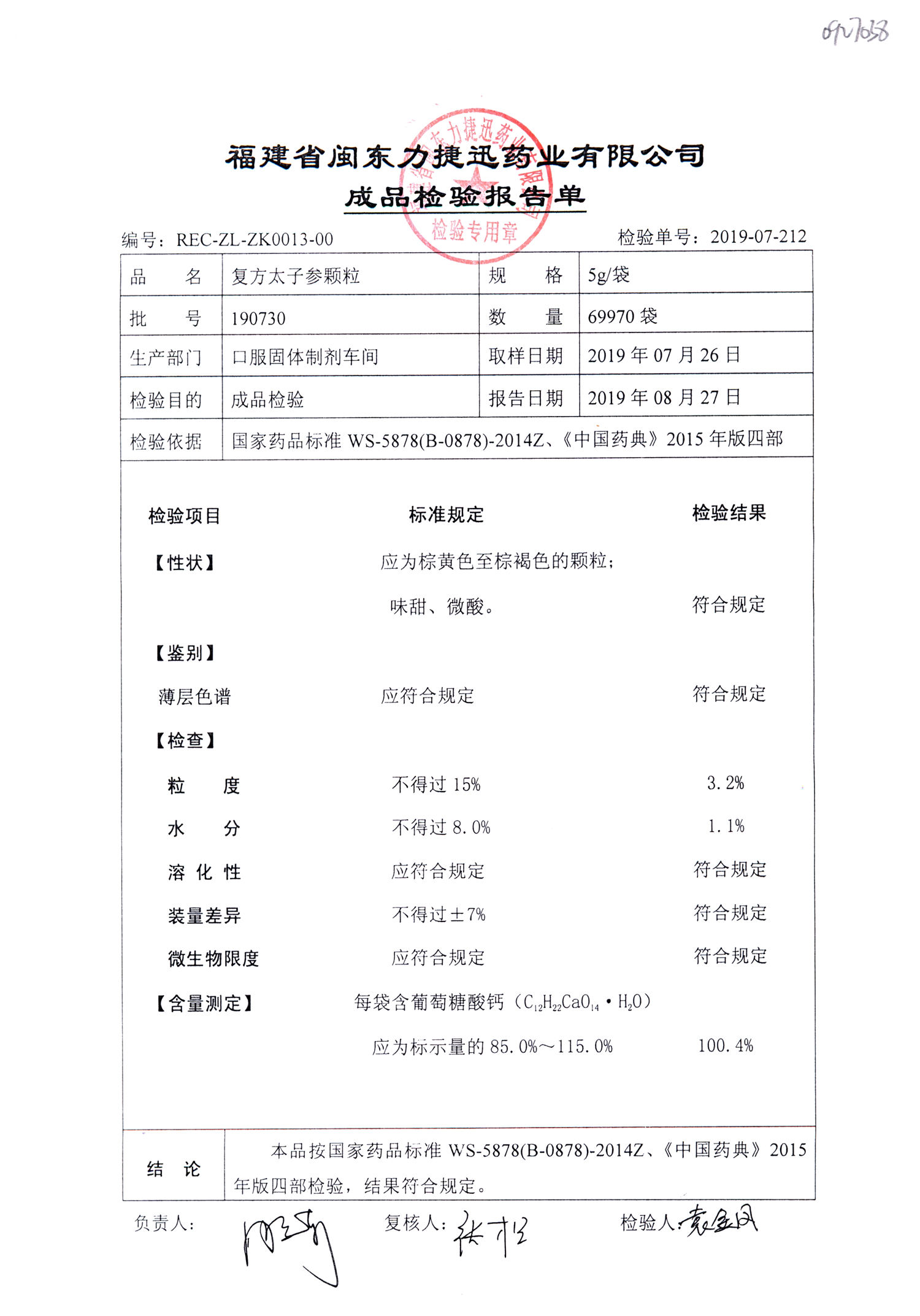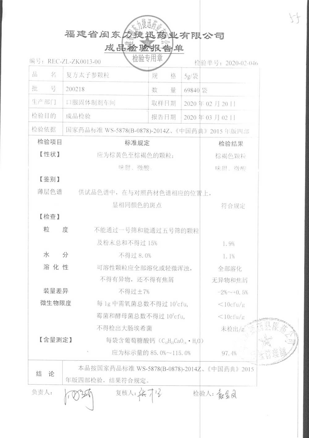 | 復方太子參顆粒 | 5g | 190813 | 查看詳情 |