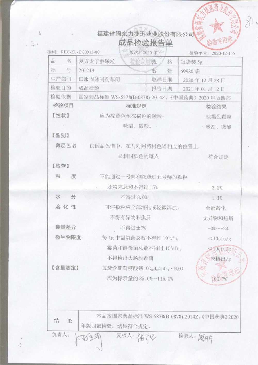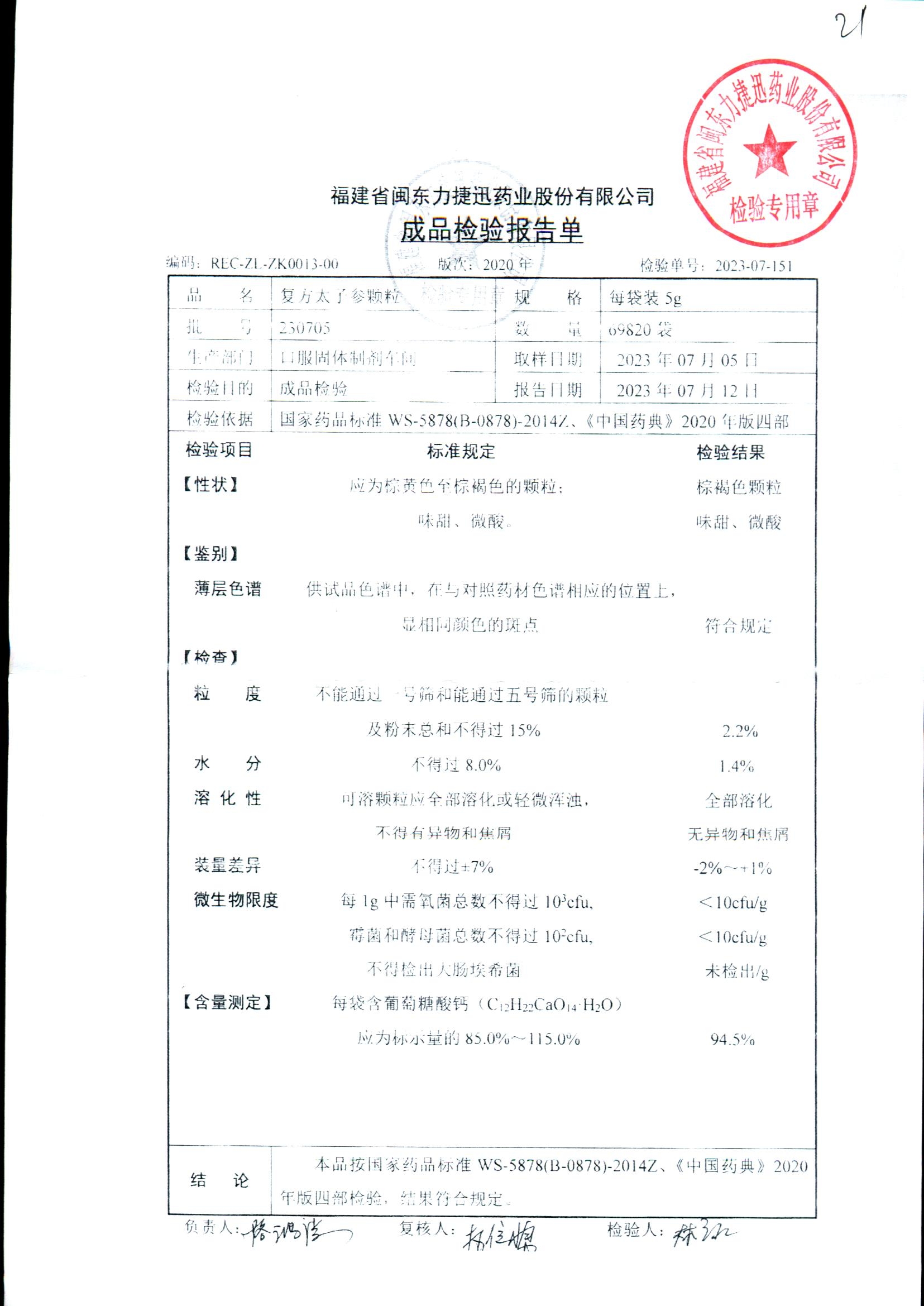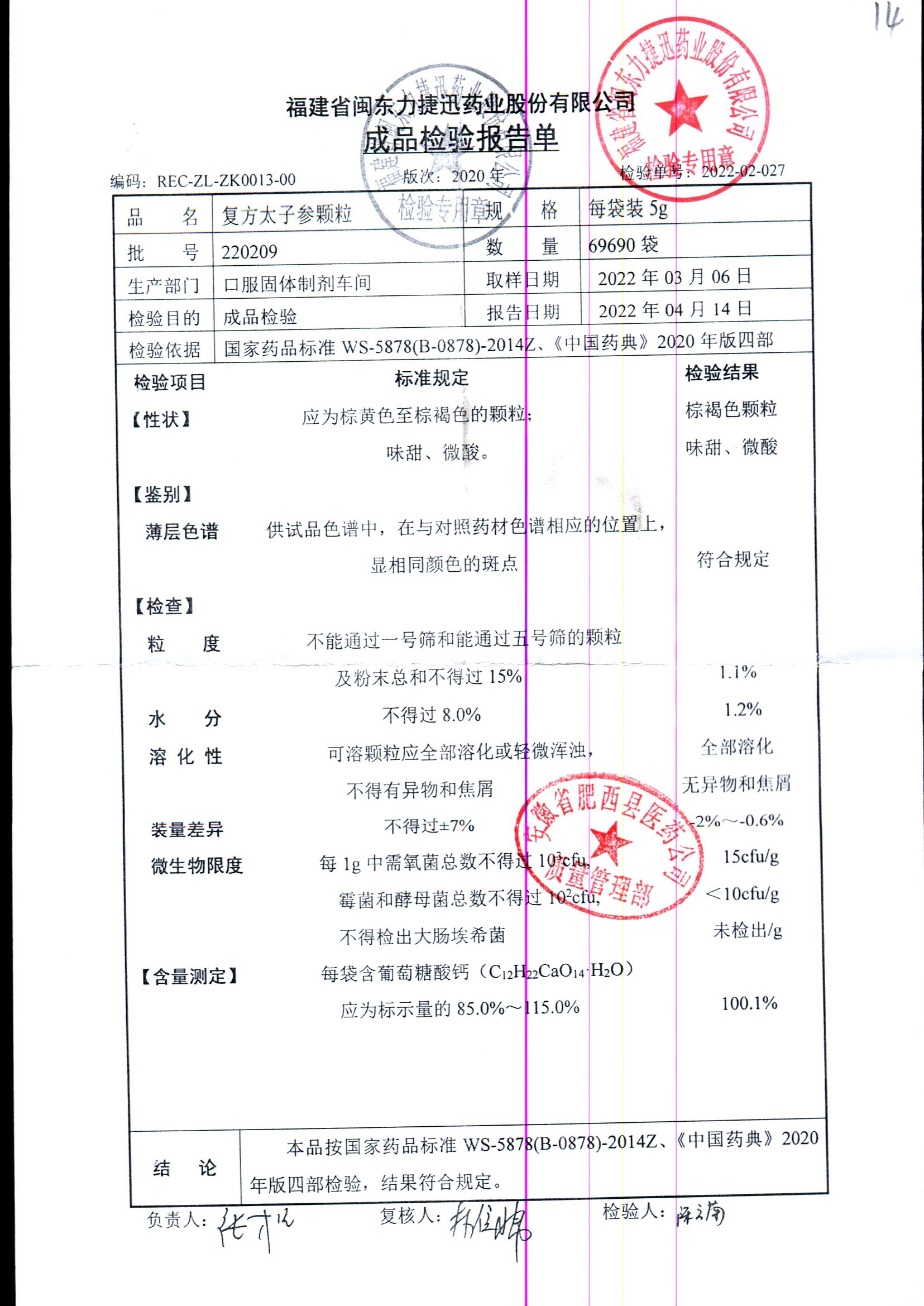 | 復方太子參顆粒 | 5g | 211113/1 | 查看詳情 |