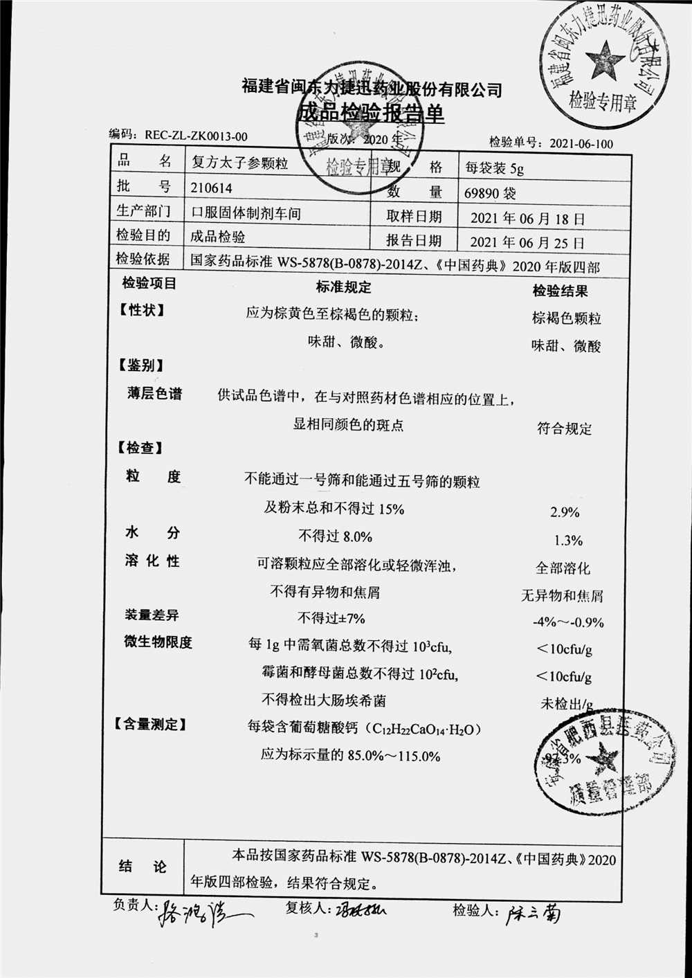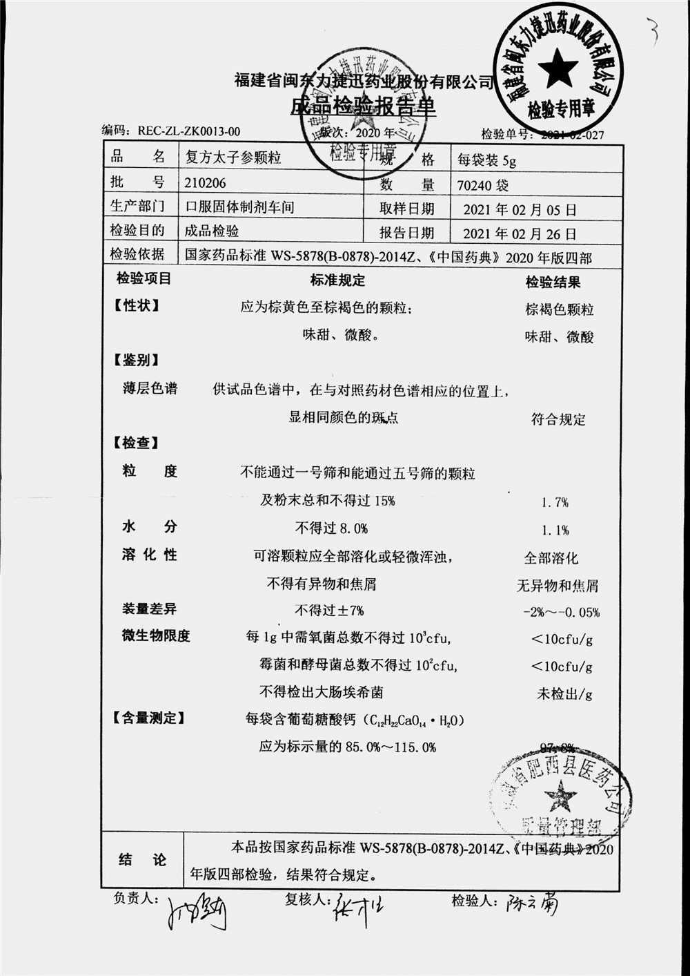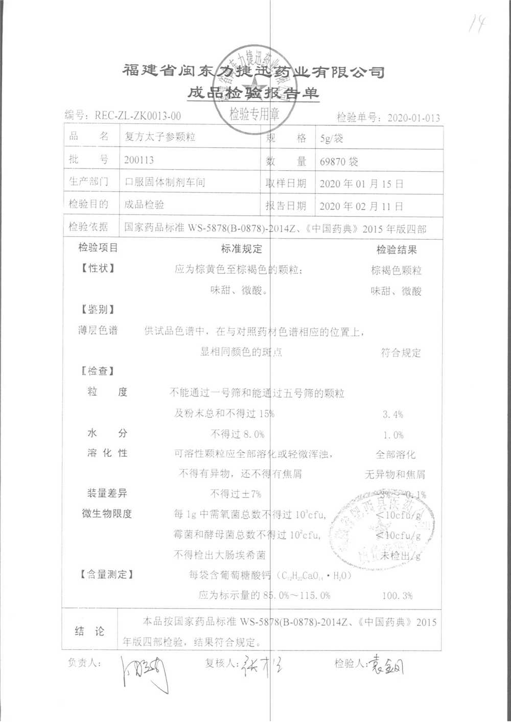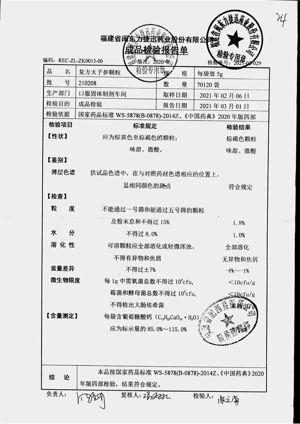 | 復方太子參顆粒 | 5g | 211113/1 | 查看詳情 |