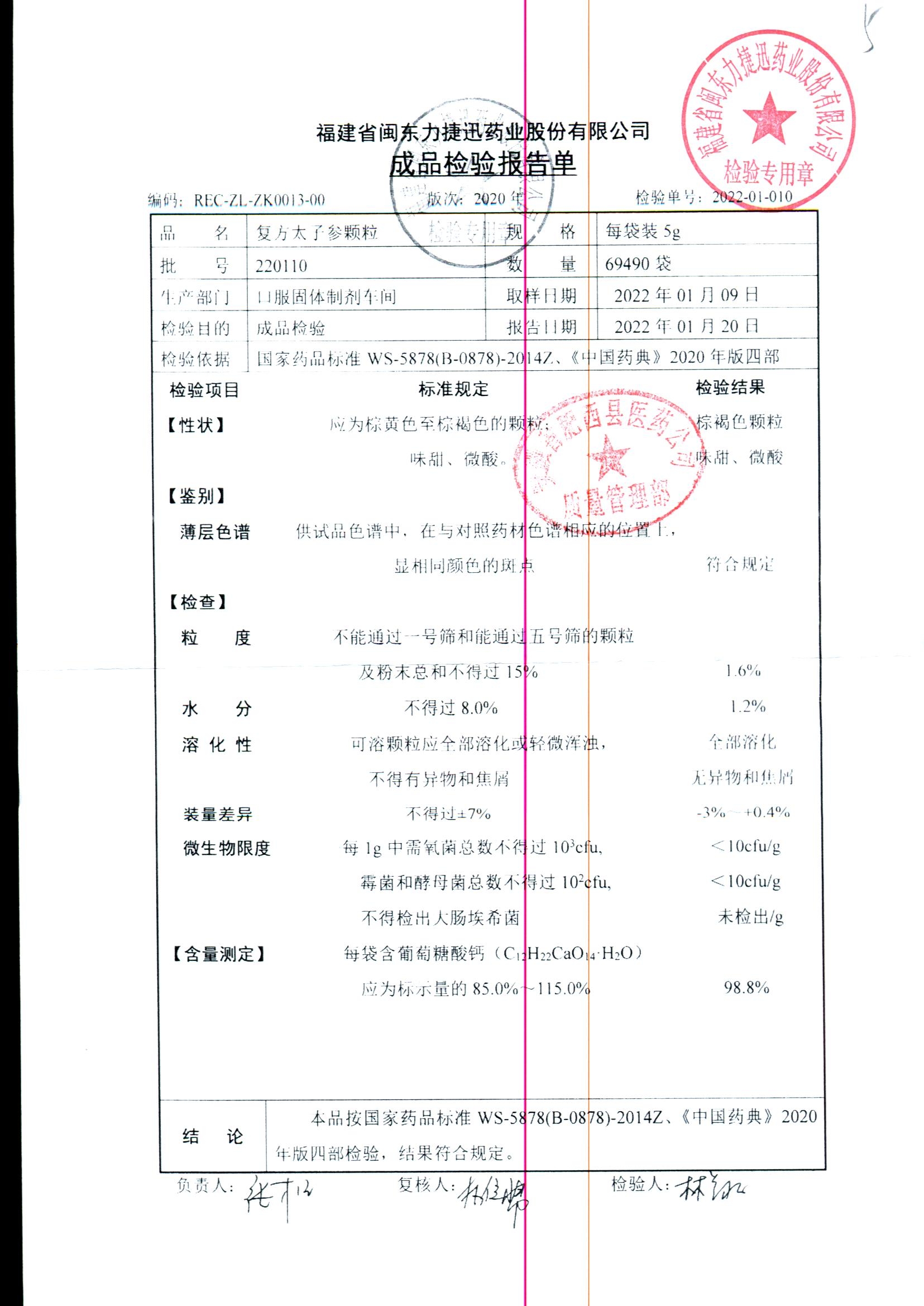 | 復方太子參顆粒 | 5g | 220109 | 查看詳情 |