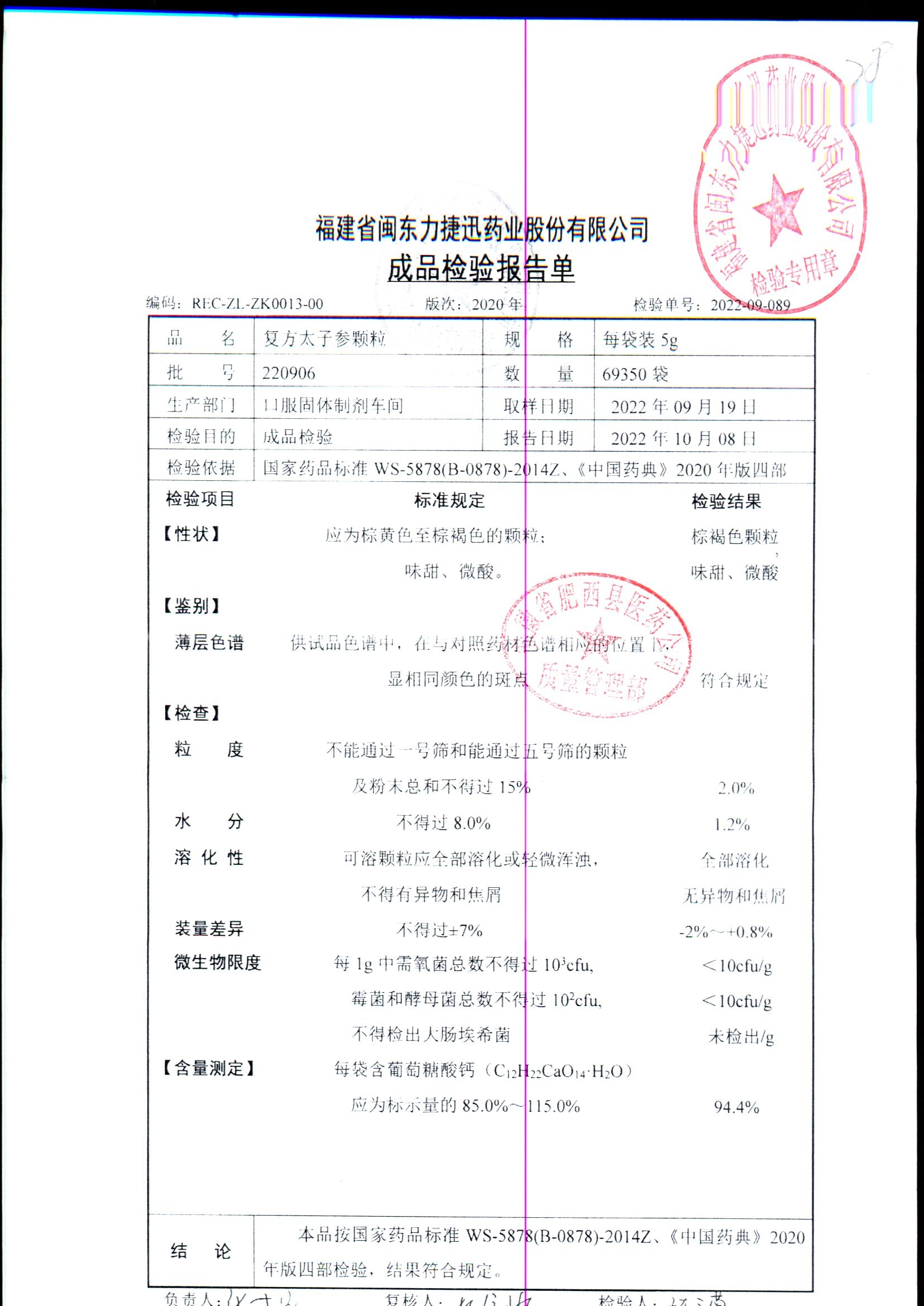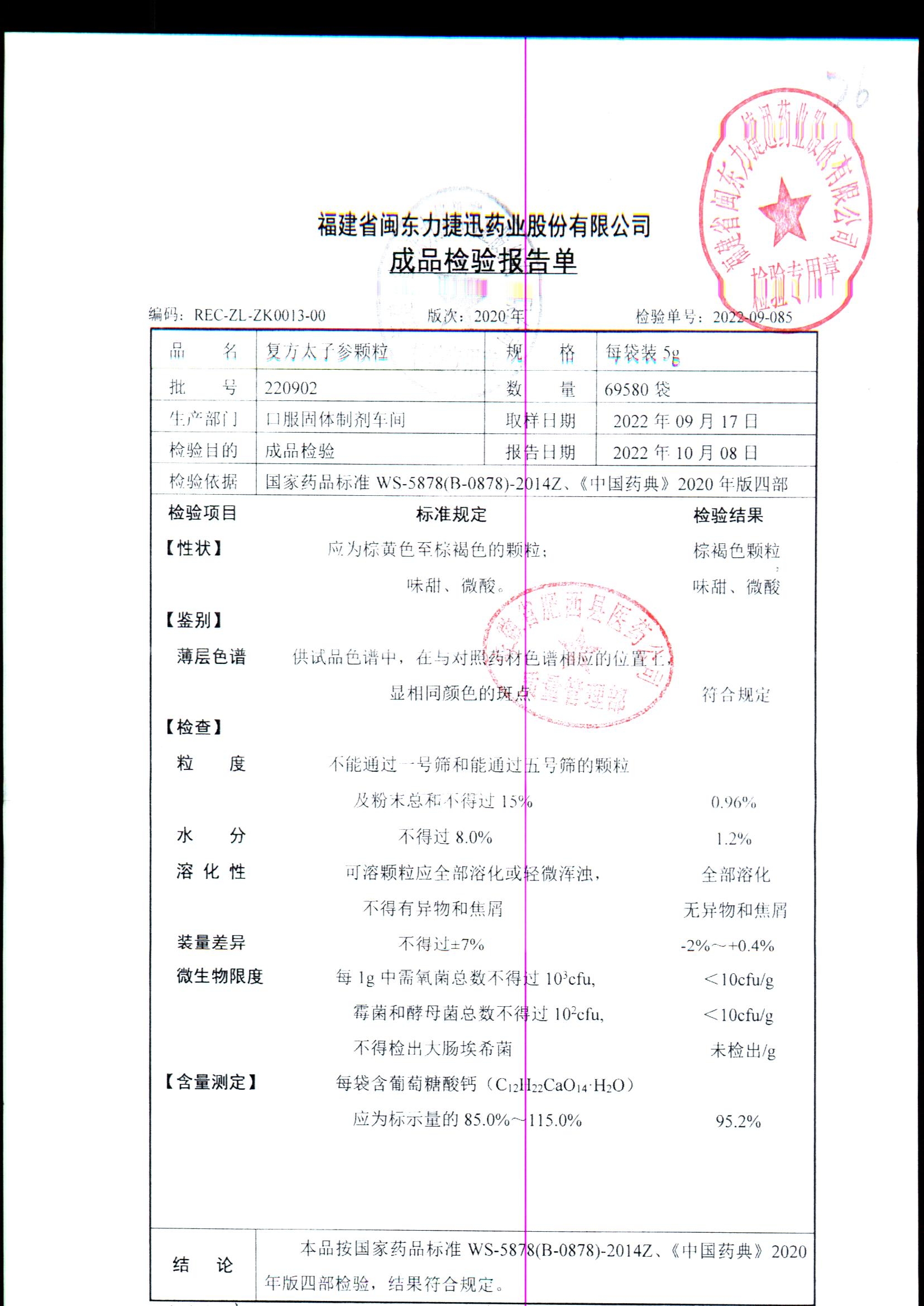 | 復方太子參顆粒 | 5g | 220902 | 查看詳情 |