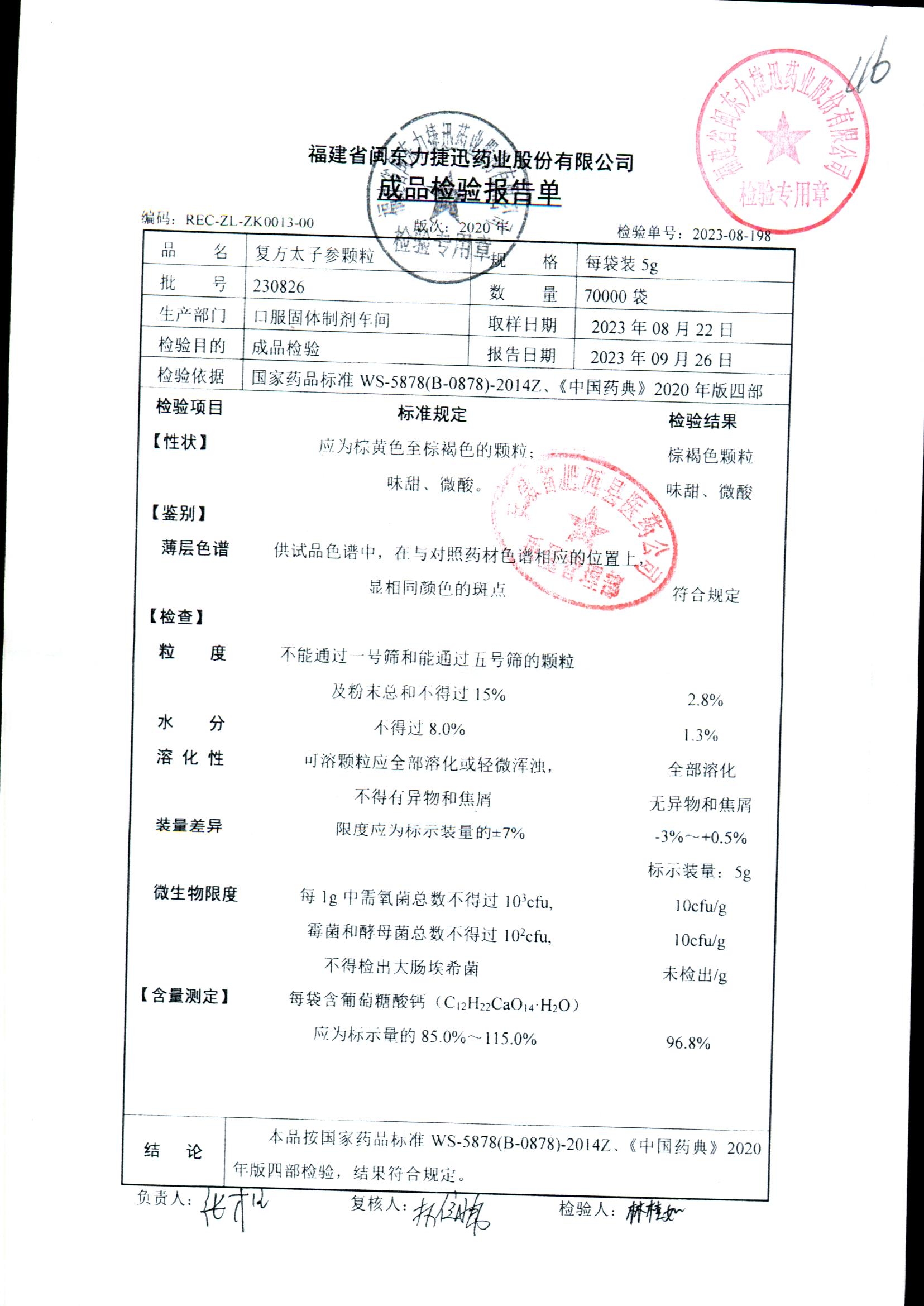 | 復方太子參顆粒 | 5g | 230828 | 查看詳情 |