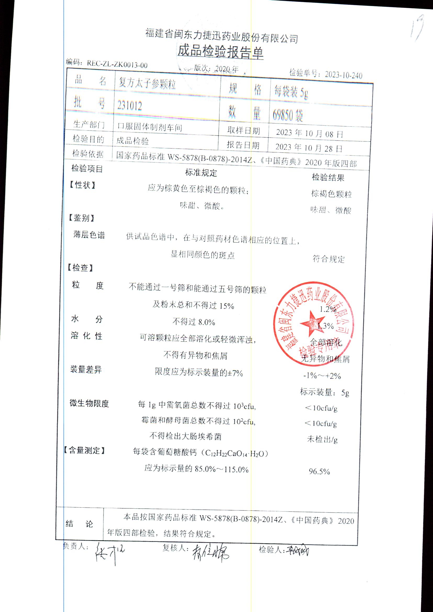 | 復方太子參顆粒 | 5g | 231018 | 查看詳情 |