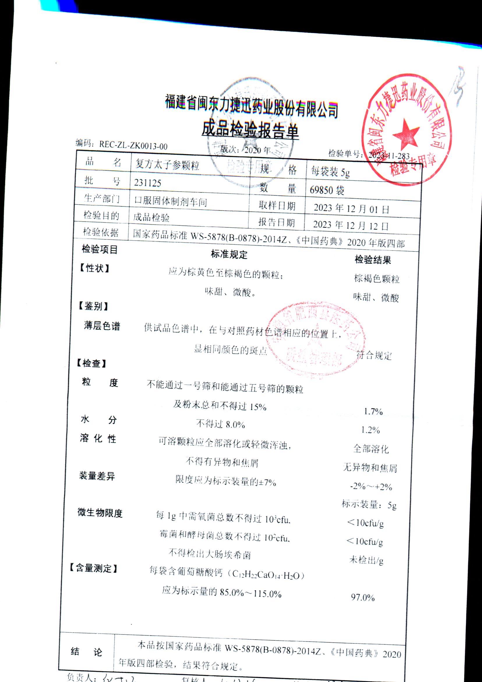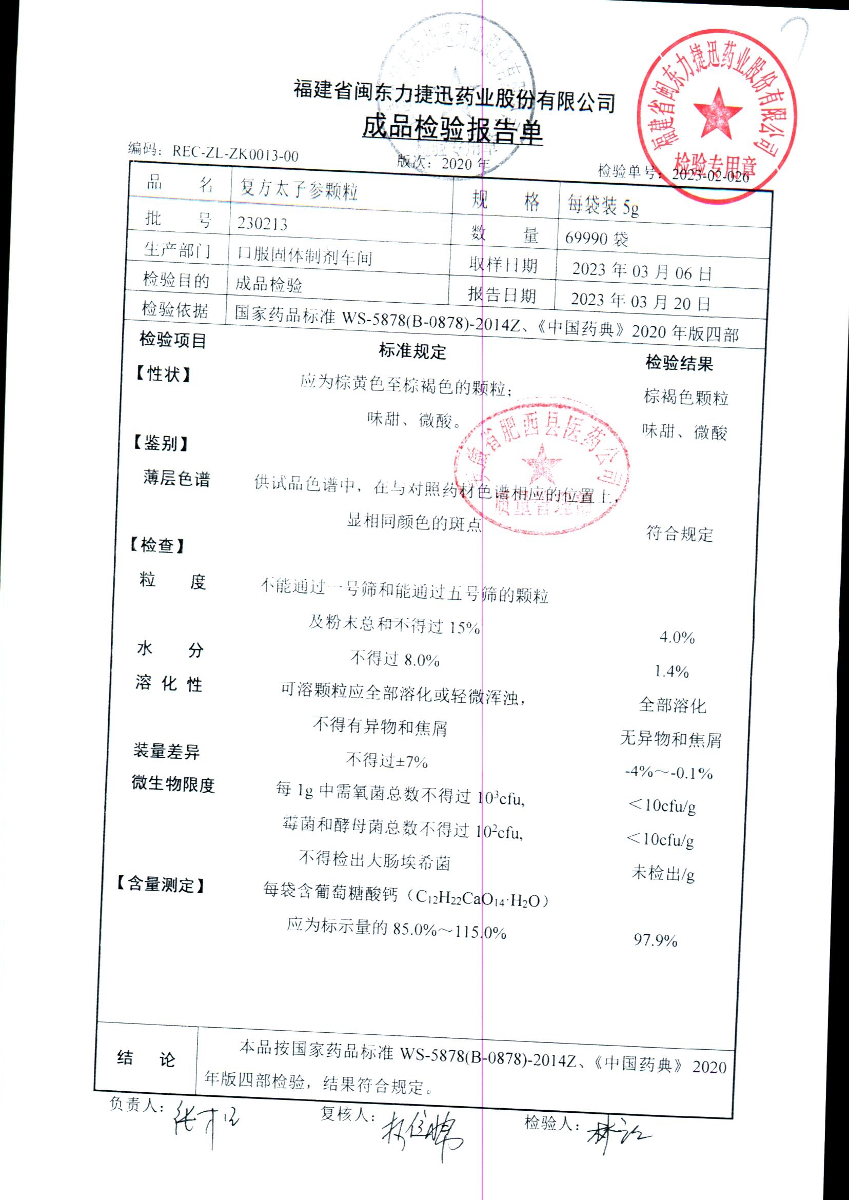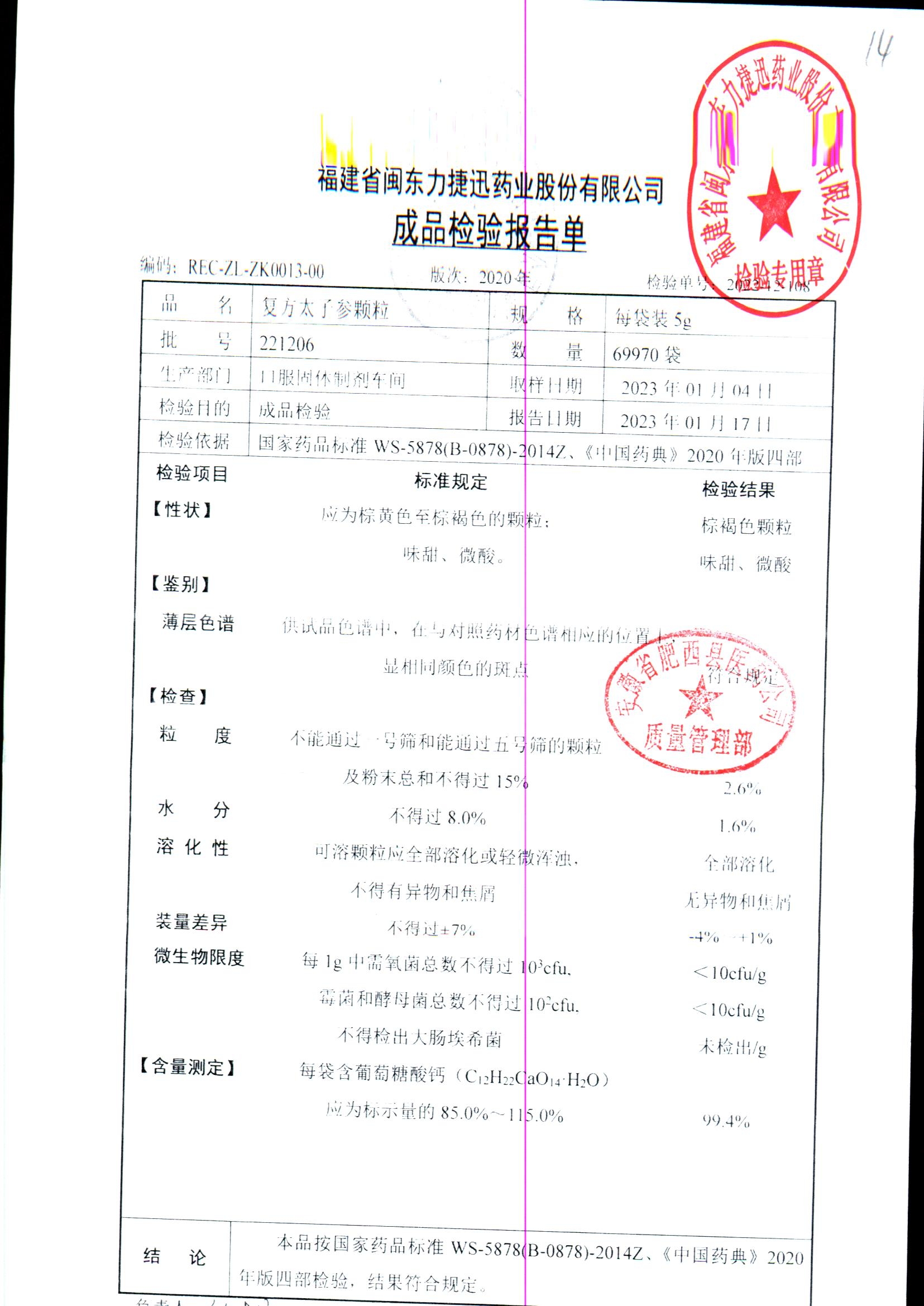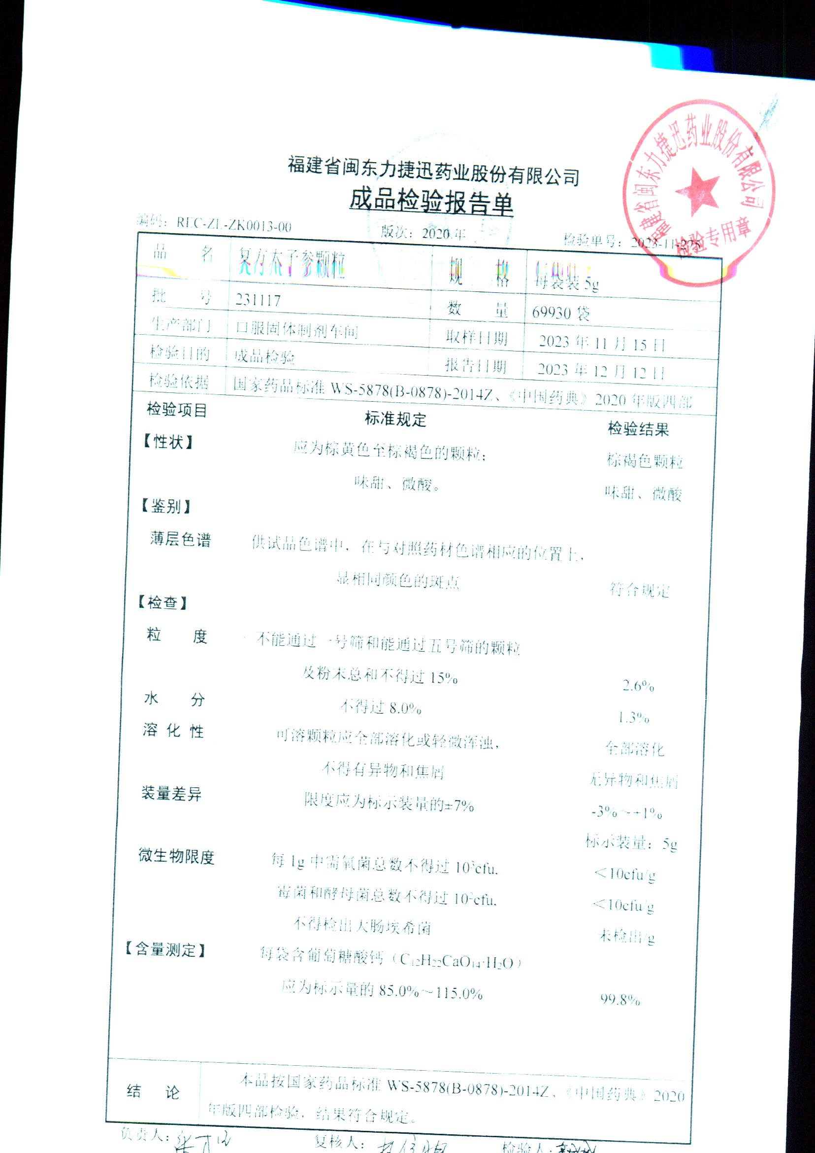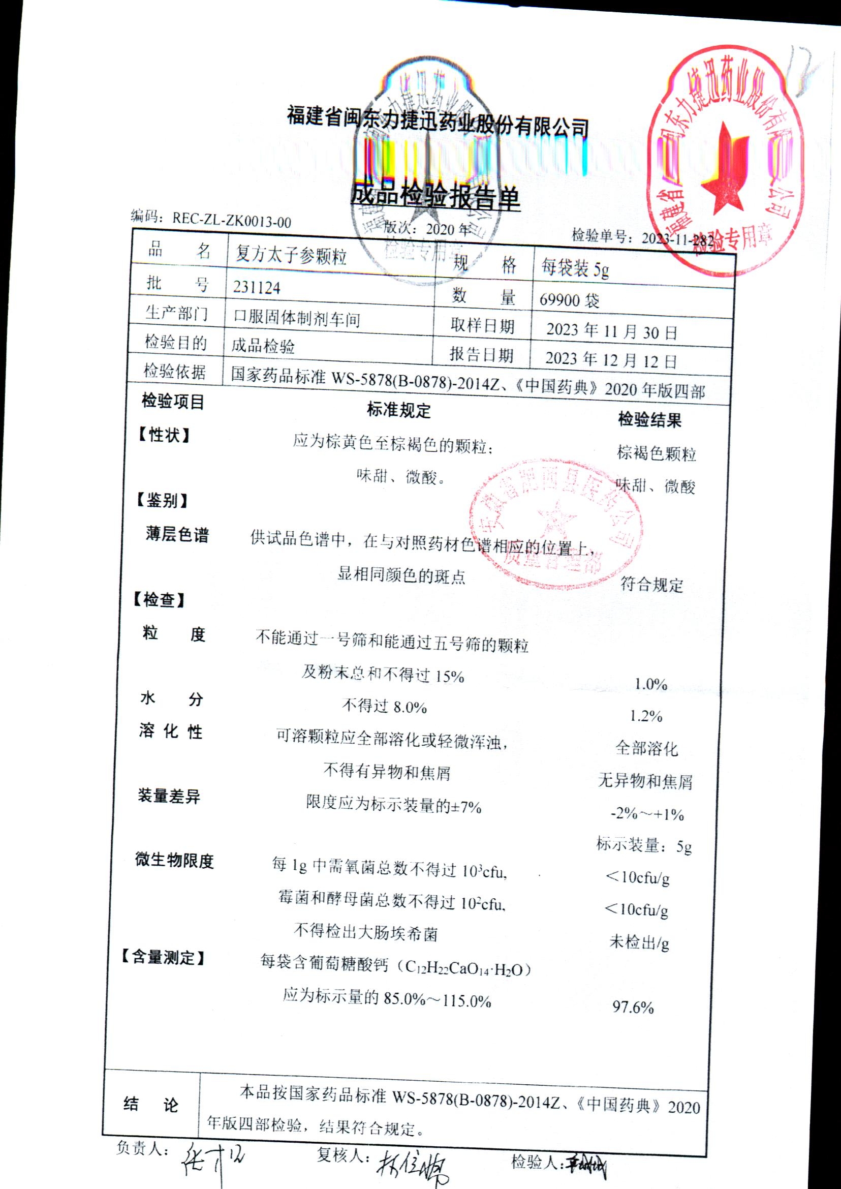 | 復方太子參顆粒 | 5g | 231221 | 查看詳情 |
