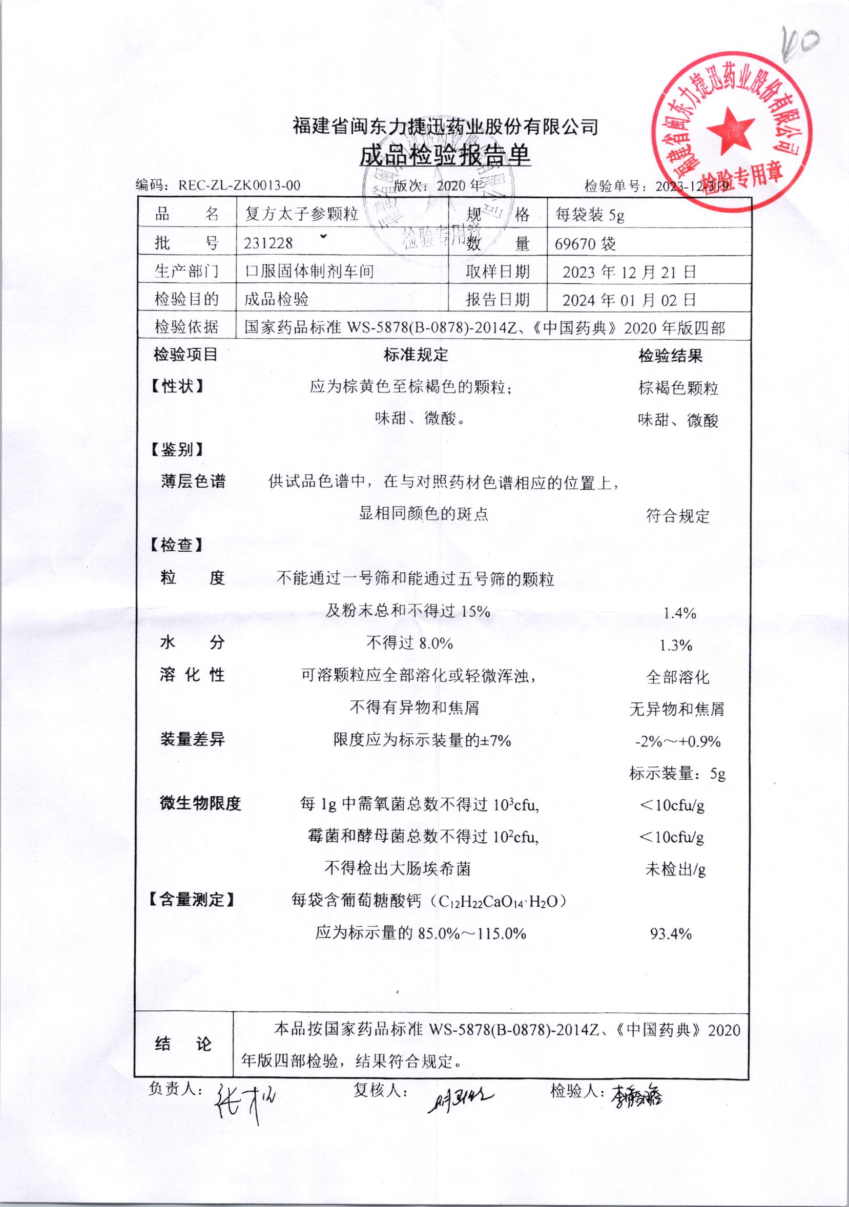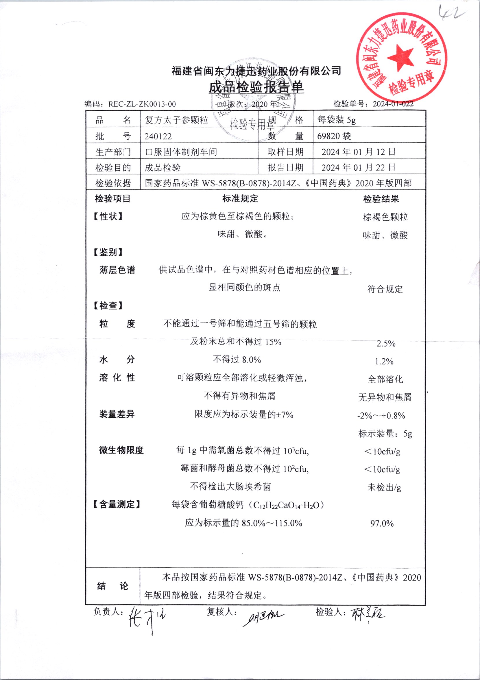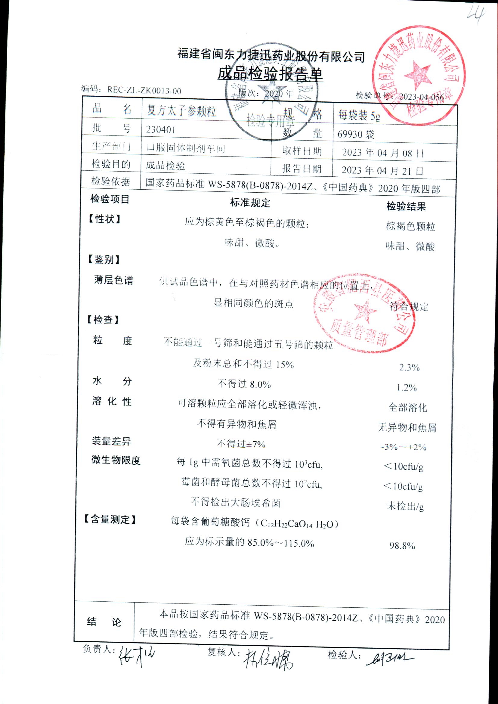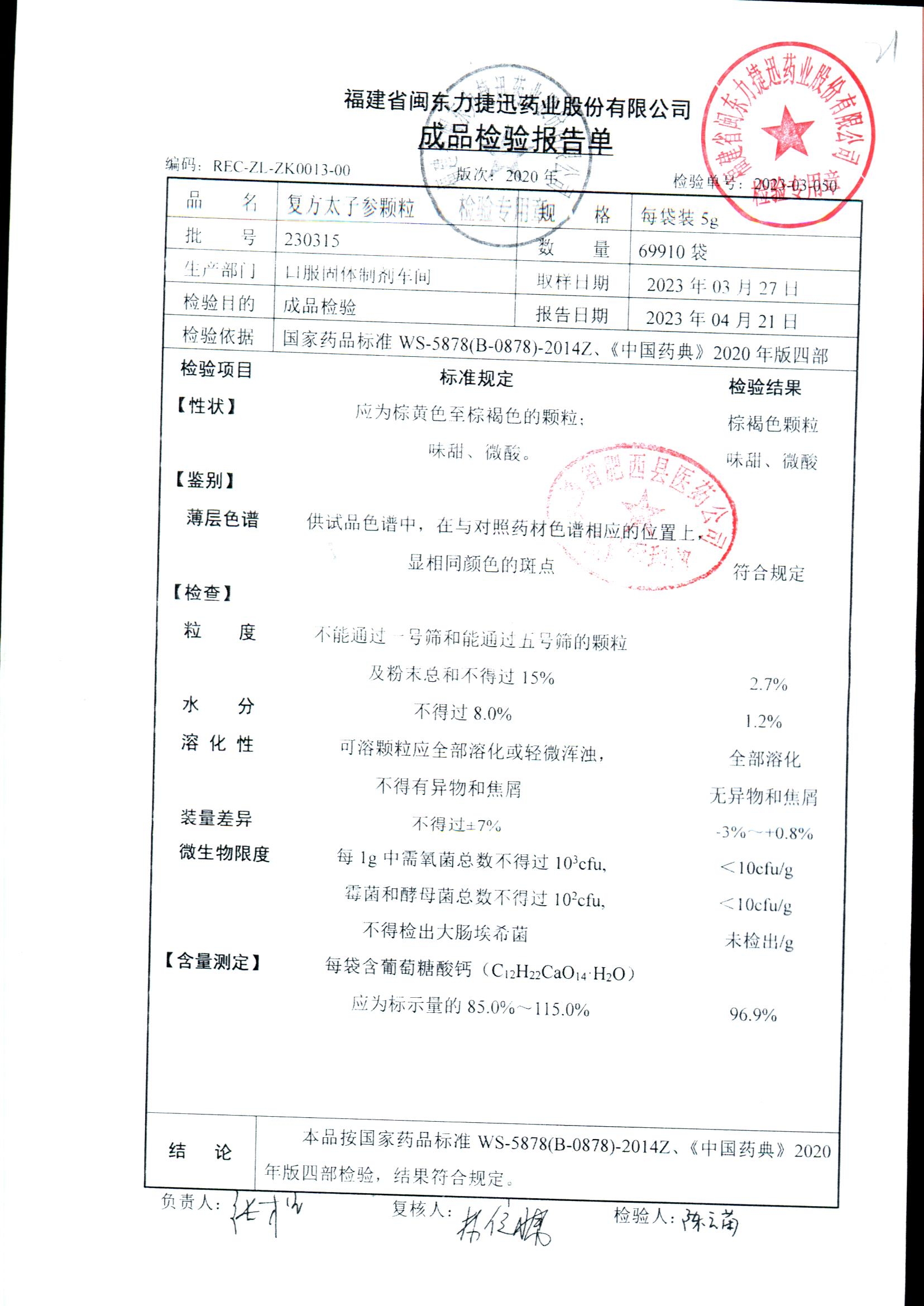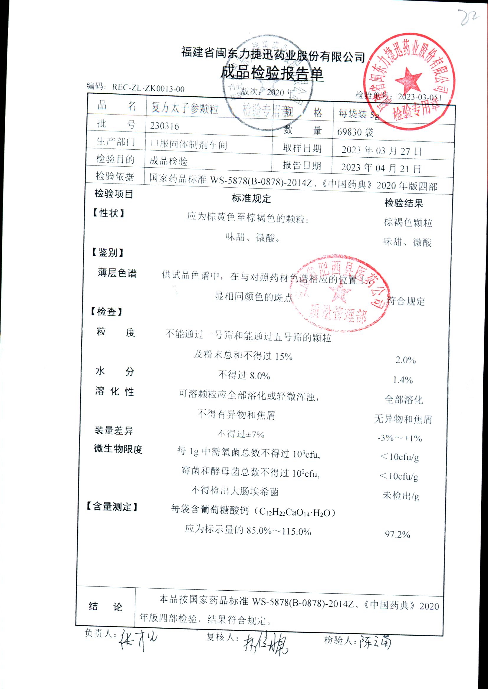 | 復方太子參顆粒 | 5g | 231221 | 查看詳情 |