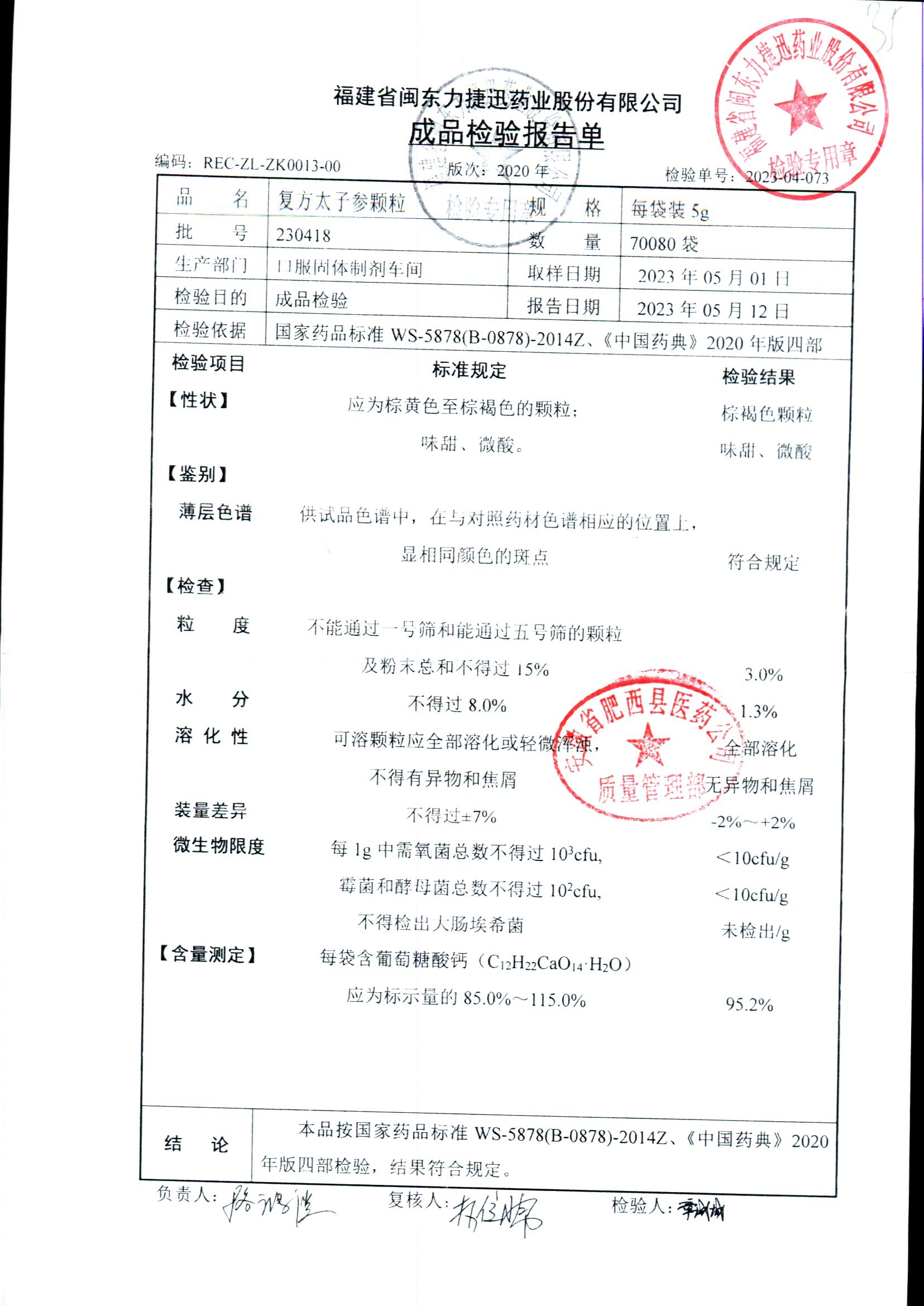 | 復方太子參顆粒 | 5g | 230418 | 查看詳情 |