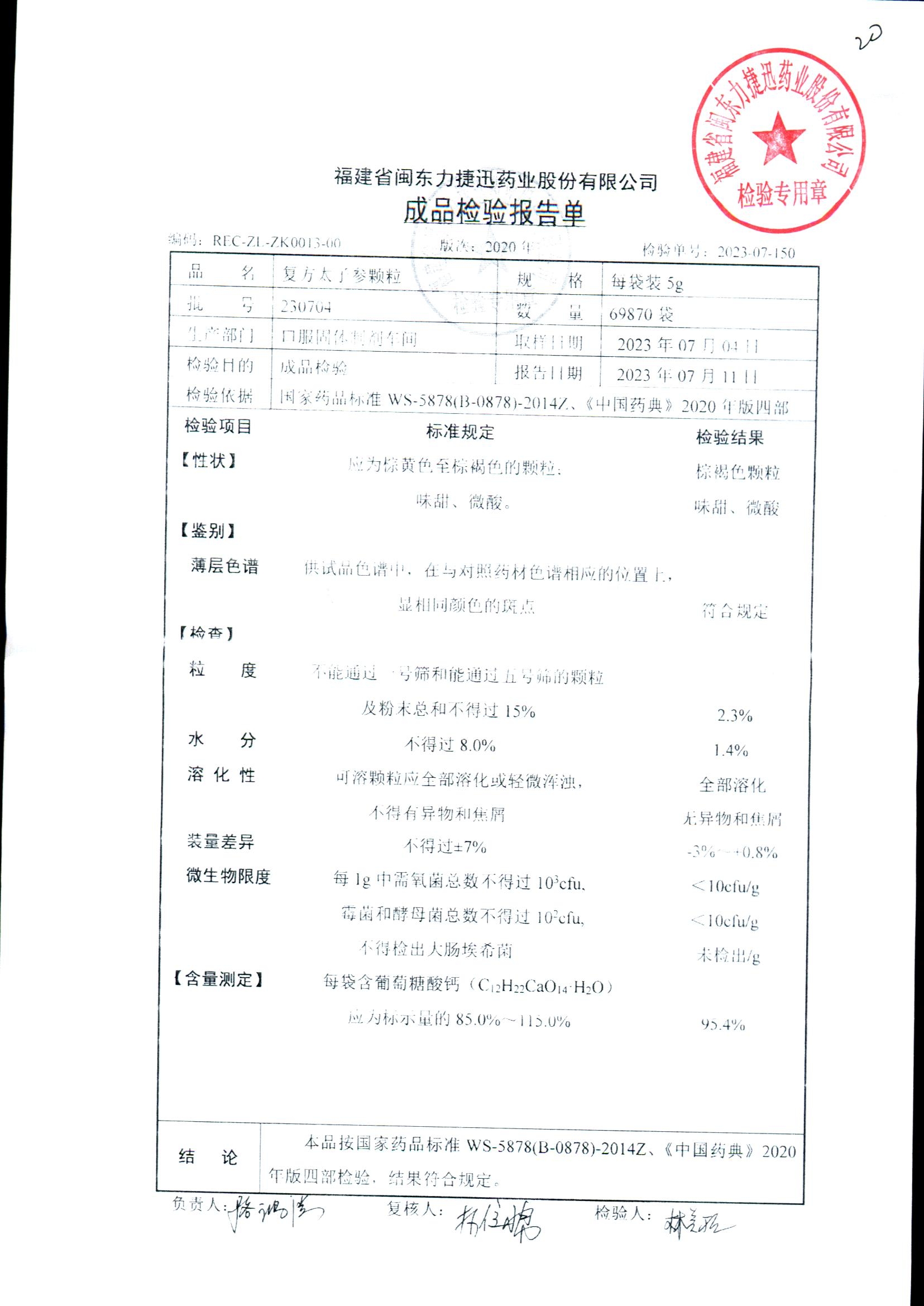 | 復方太子參顆粒 | 5g | 230704 | 查看詳情 |