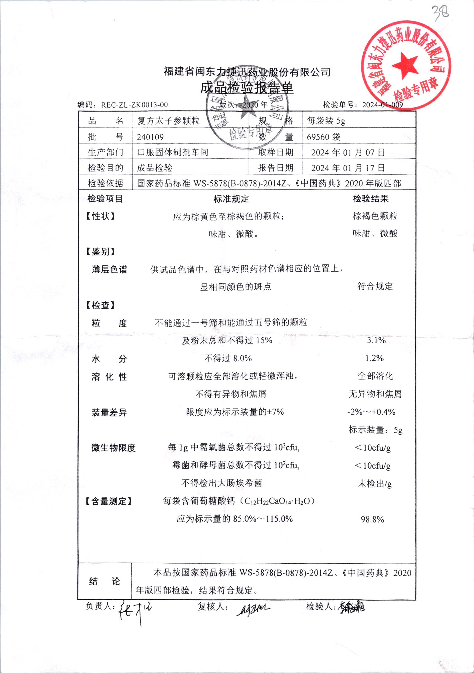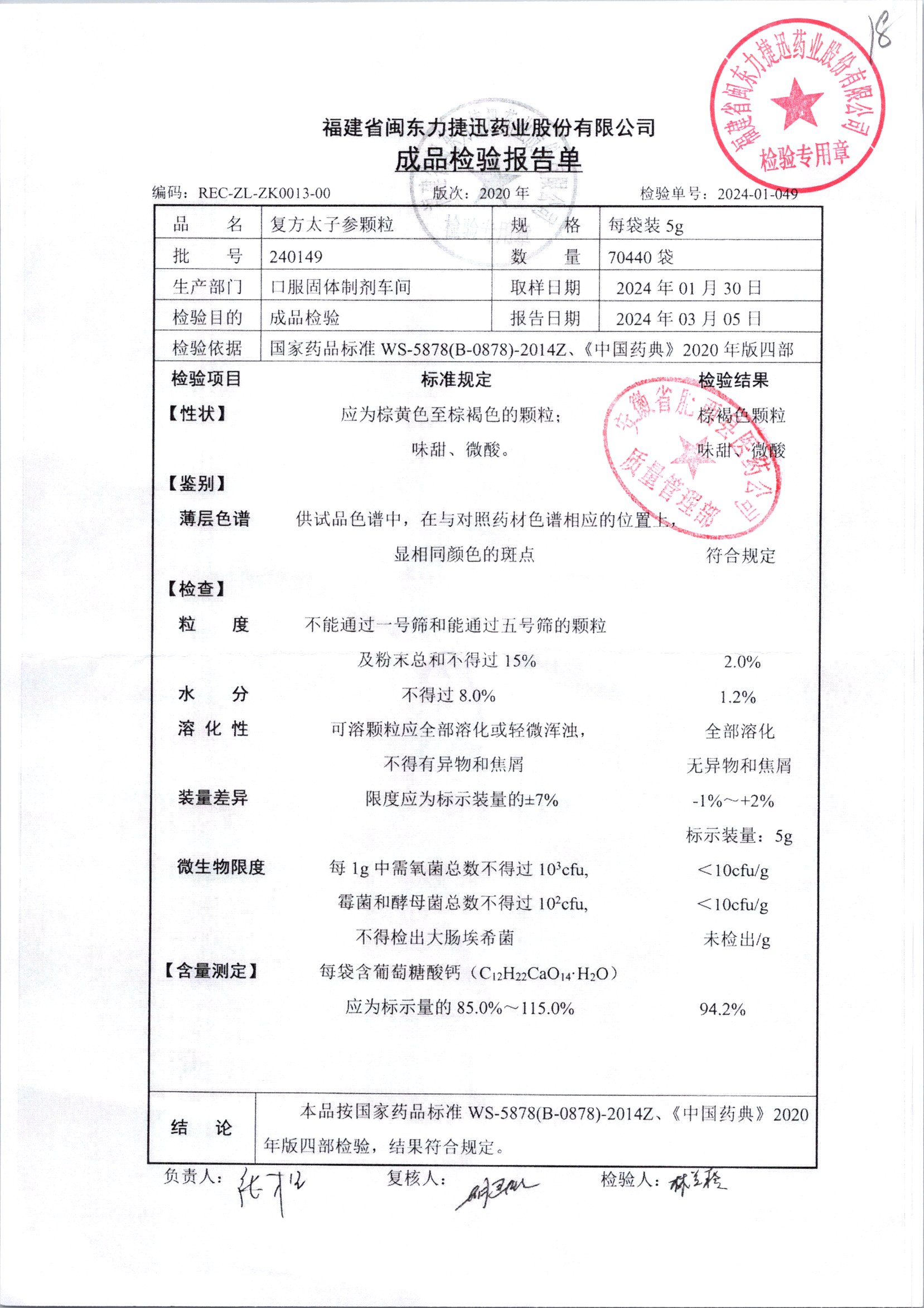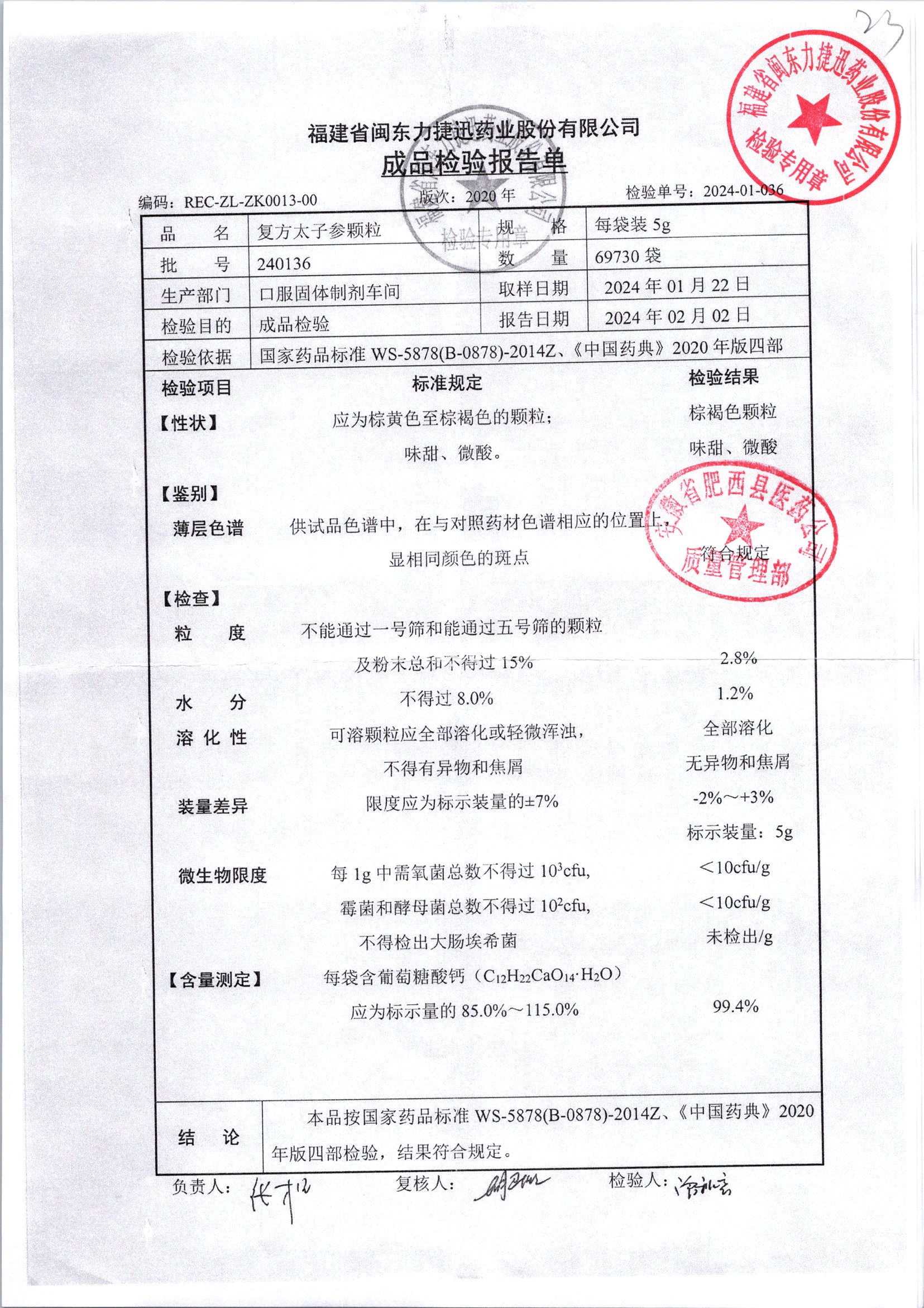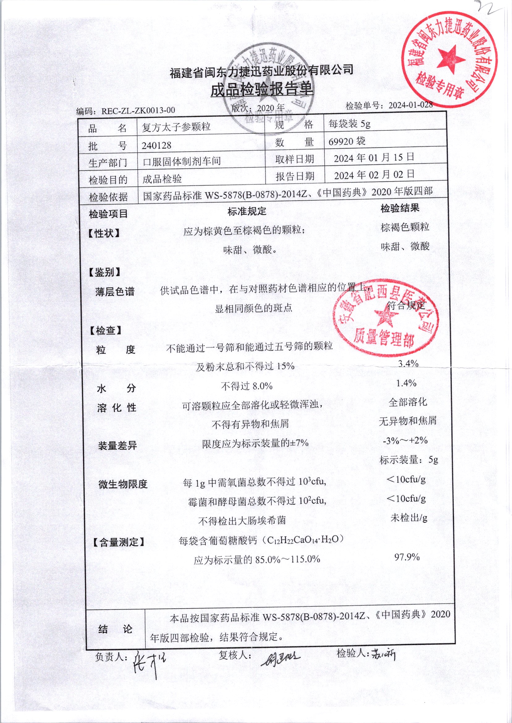 | 復方太子參顆粒 | 5g | 231228 | 查看詳情 |