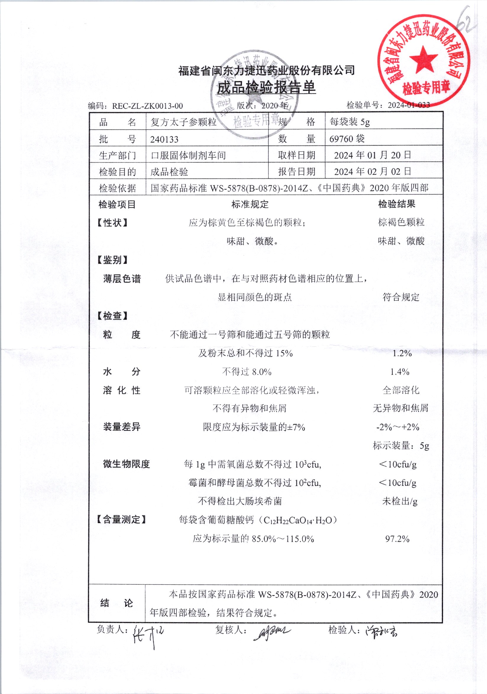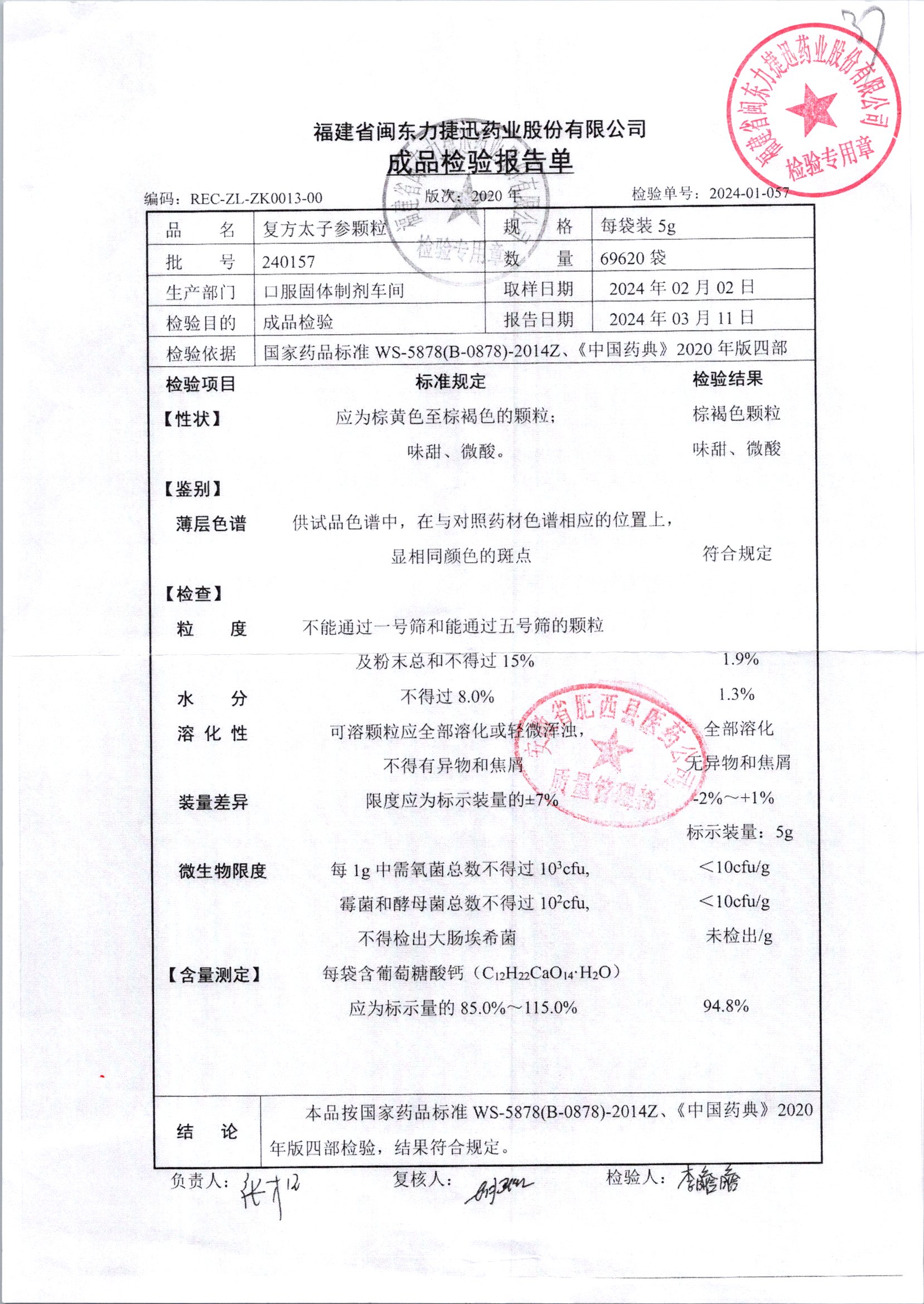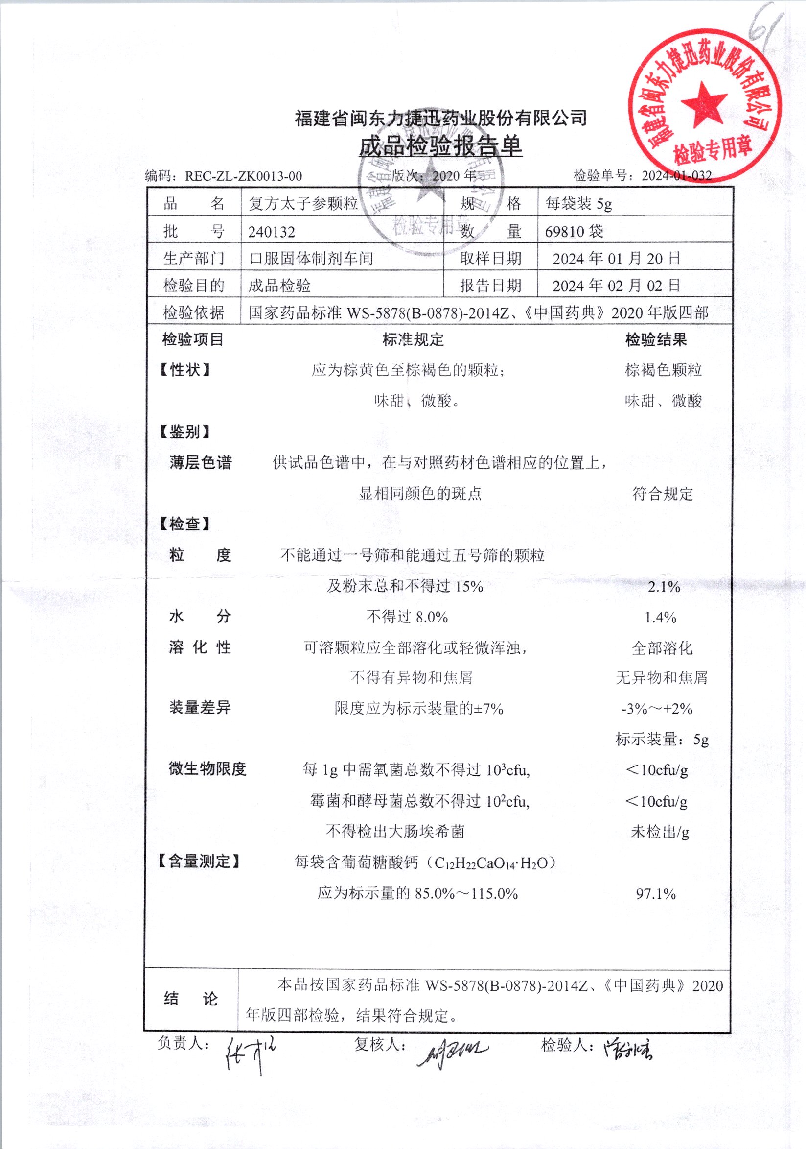| 復方太子參顆粒 | 5g | 231227 | 查看詳情 |