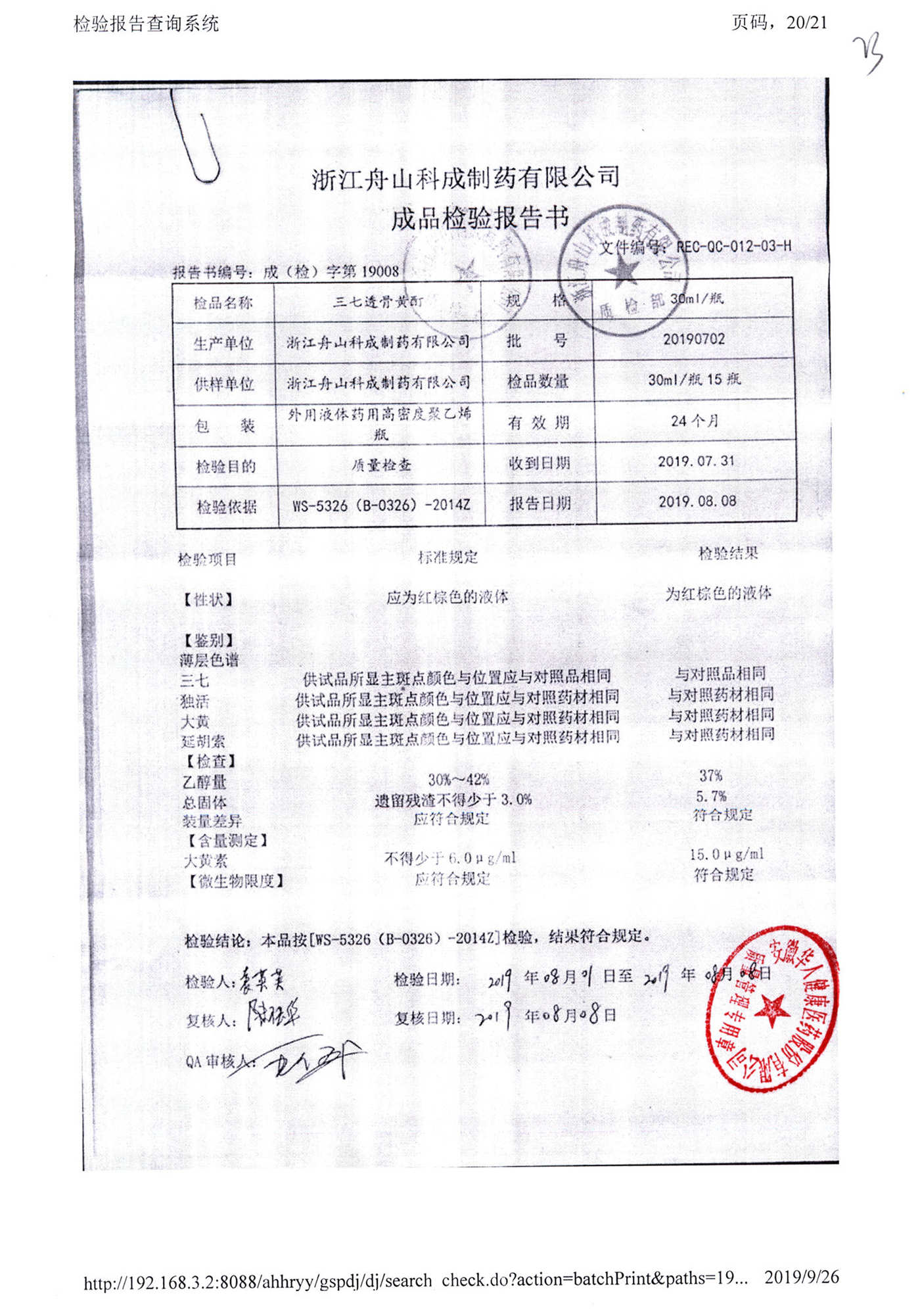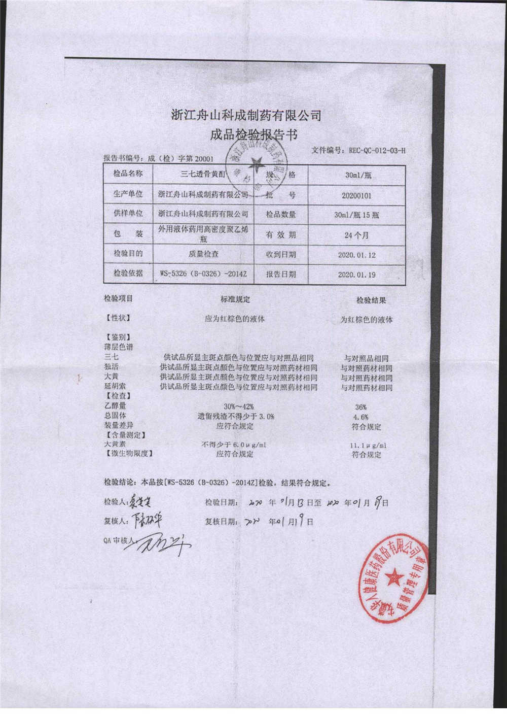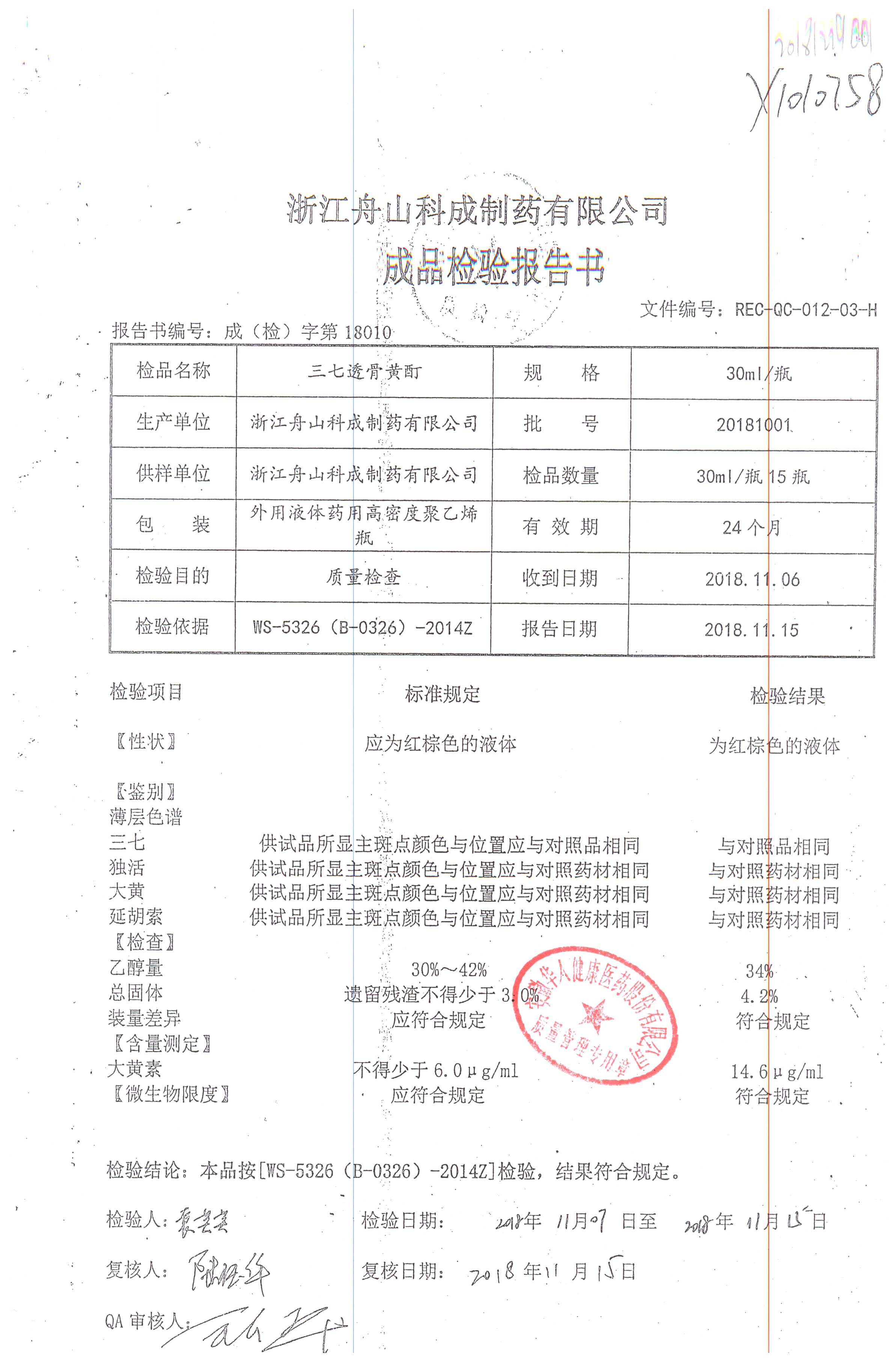 | 三七透骨黃酊 | 30ml | 20190702 | 查看詳情 |