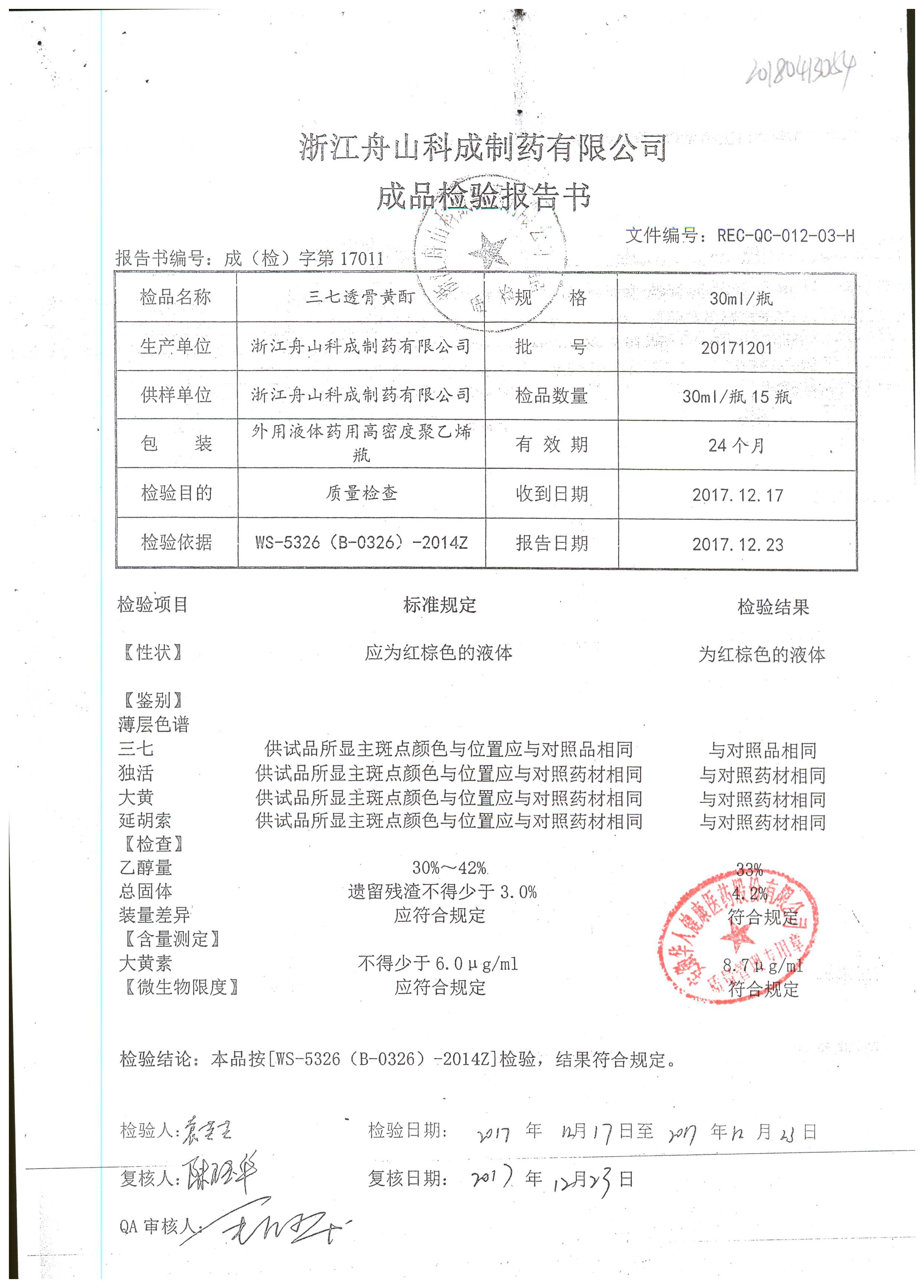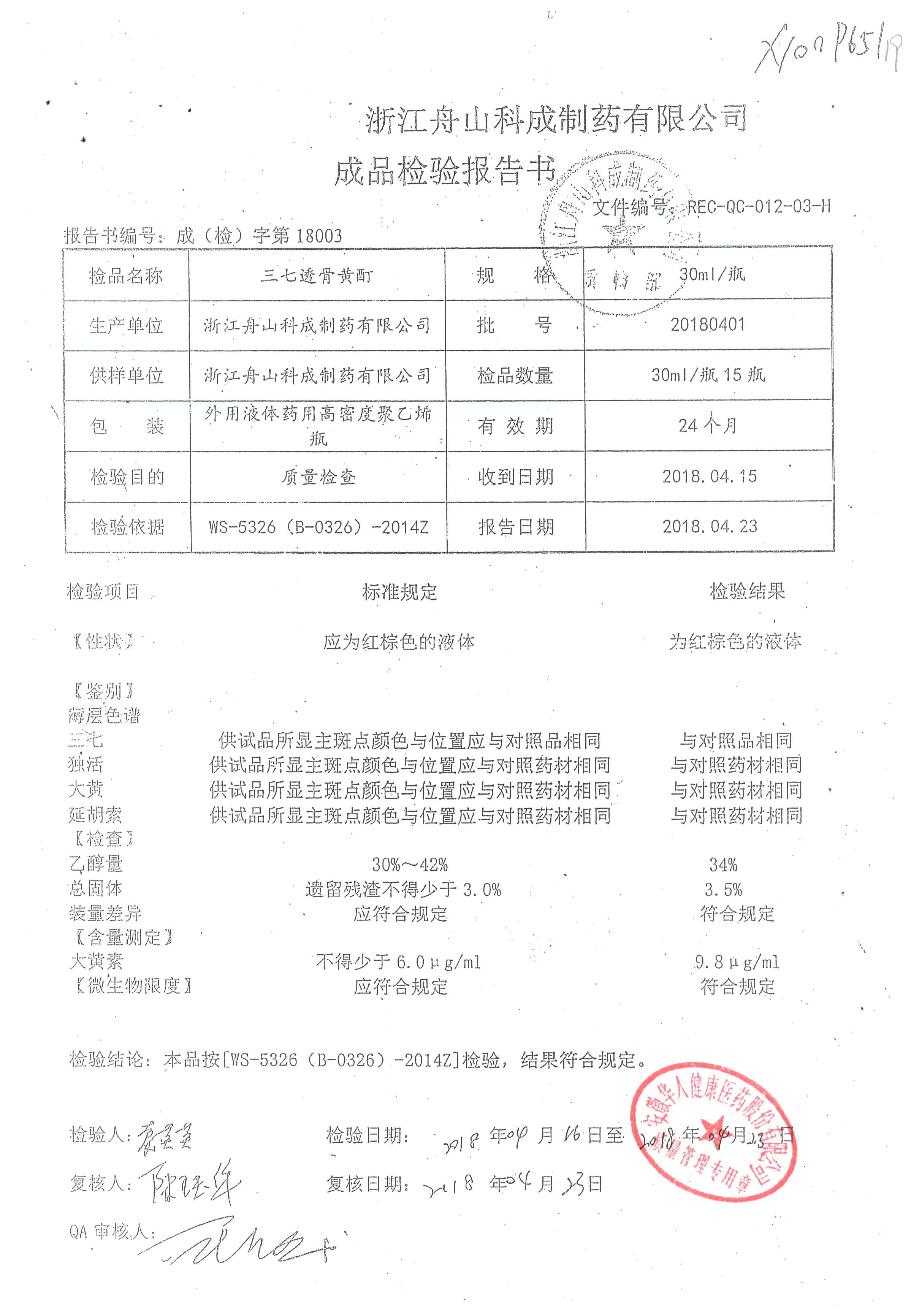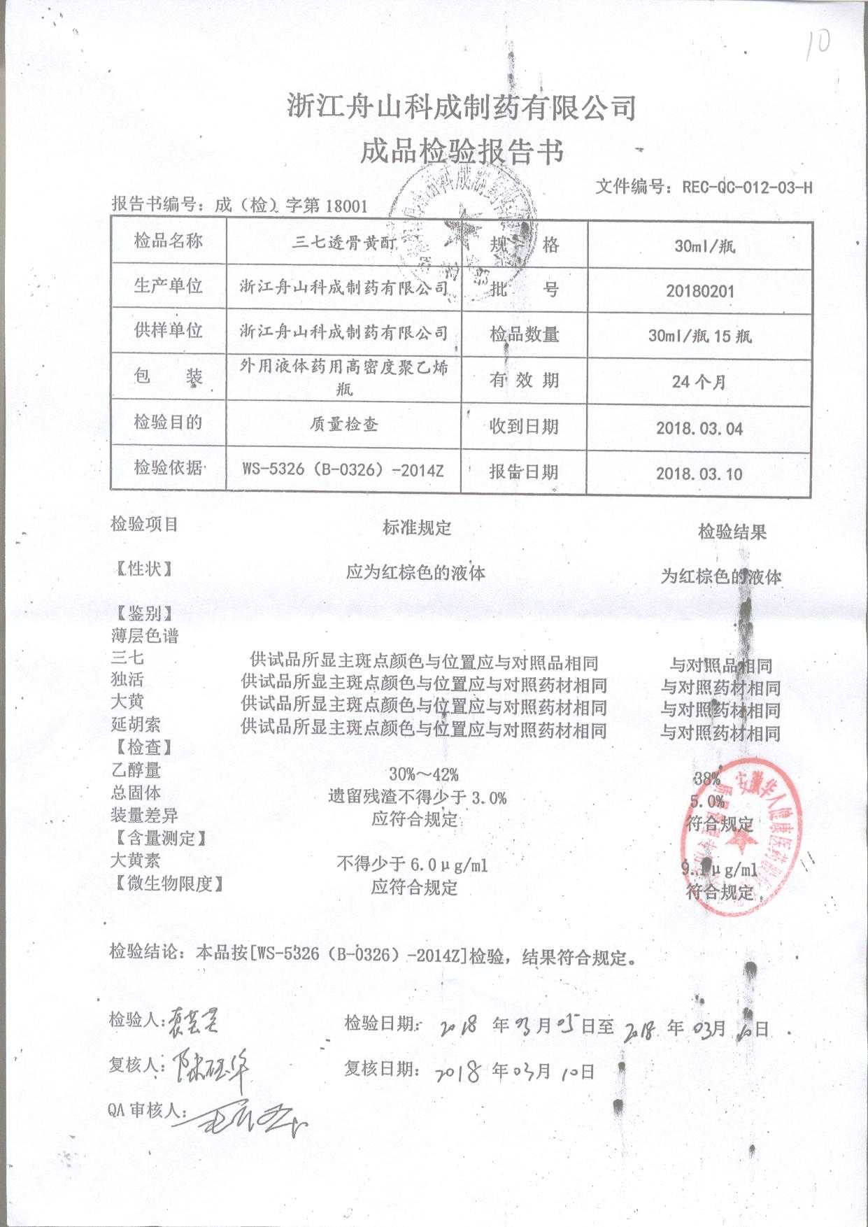 | 三七透骨黃酊 | 30ml | 20180401 | 查看詳情 |