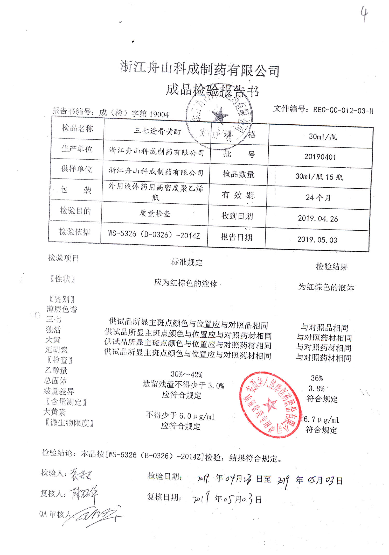 | 三七透骨黃酊 | 30ml | 20190401 | 查看詳情 |