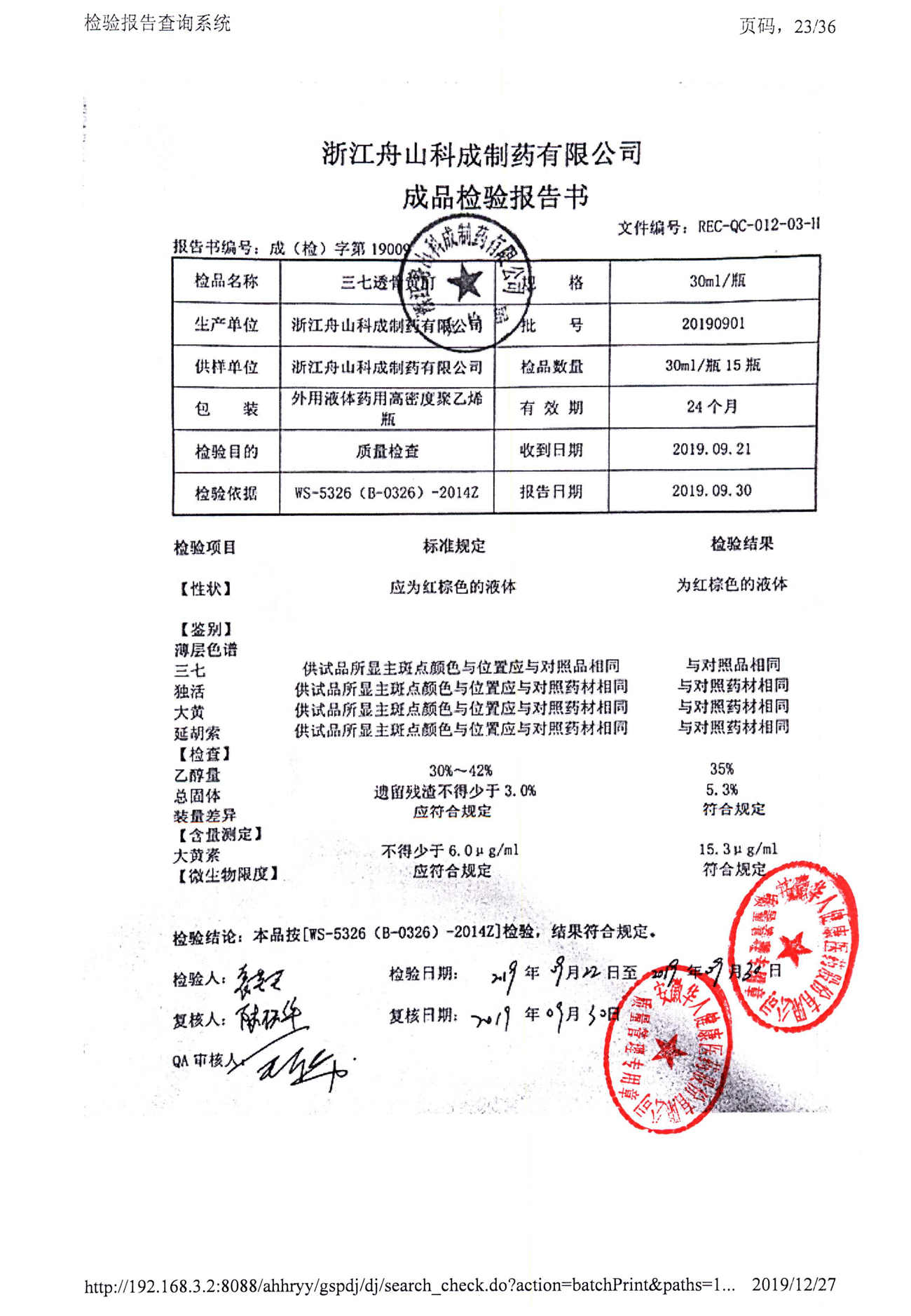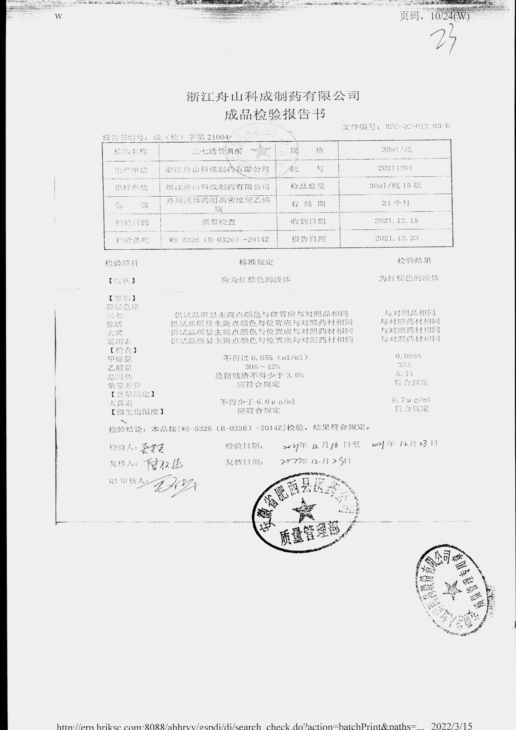 | 三七透骨黃酊 | 30ml | 20211201 | 查看詳情 |