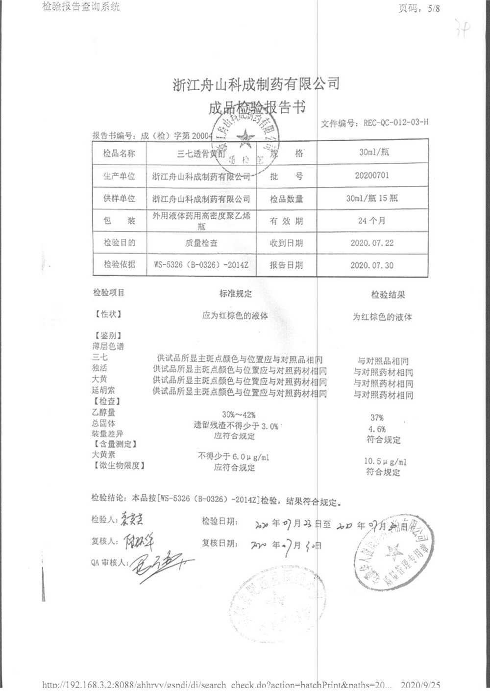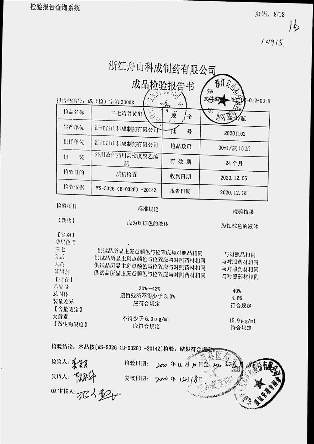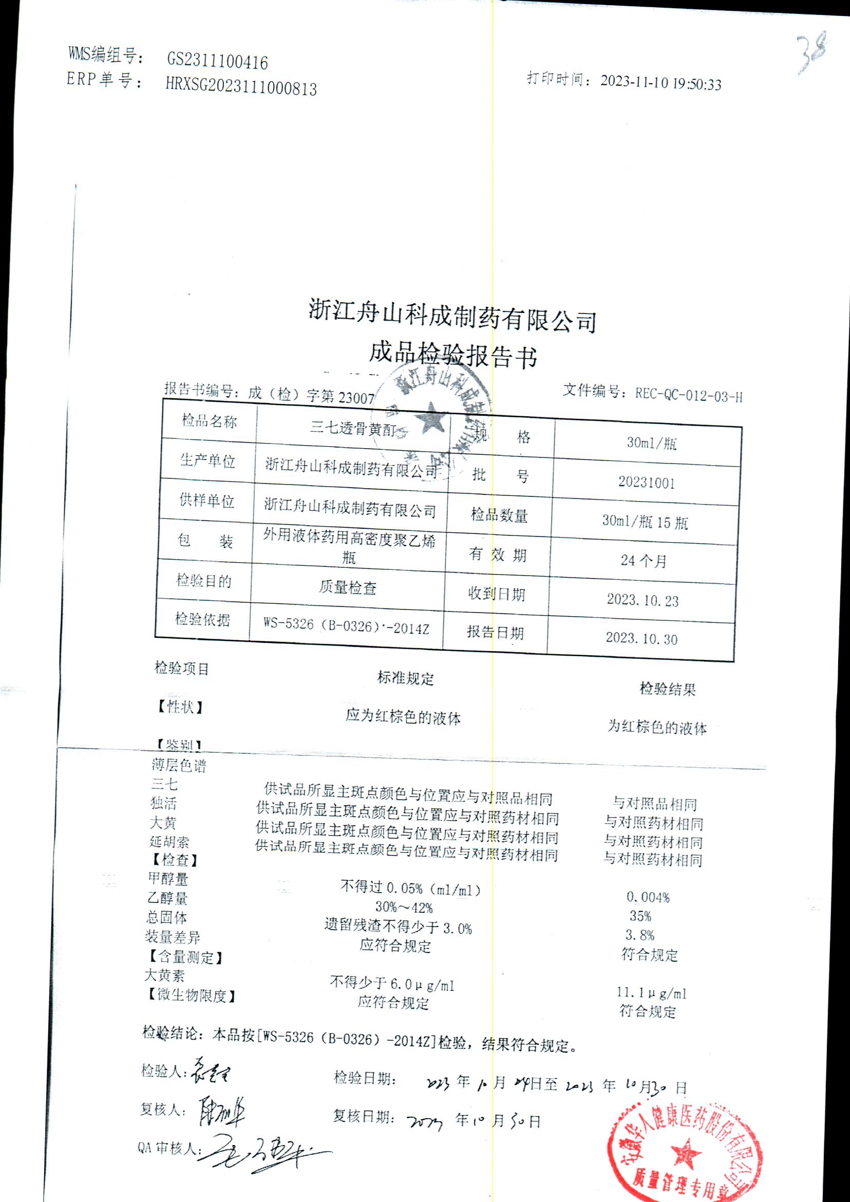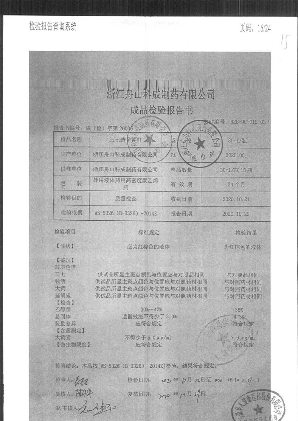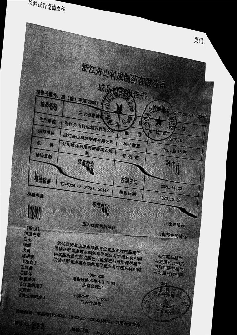 | 三七透骨黃酊 | 30ml | 20201102 | 查看詳情 |