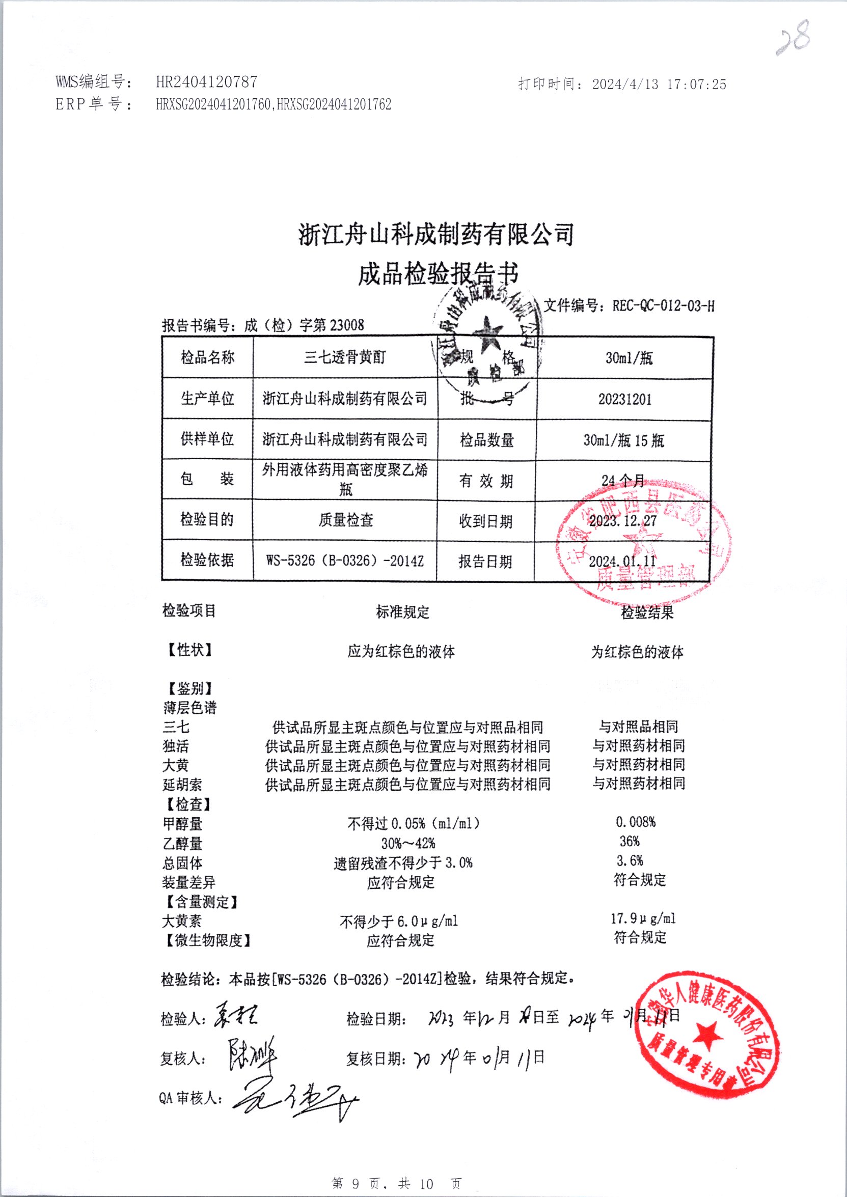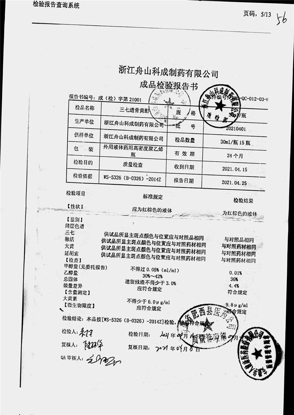 | 三七透骨黃酊 | 30ml | 20210401 | 查看詳情 |