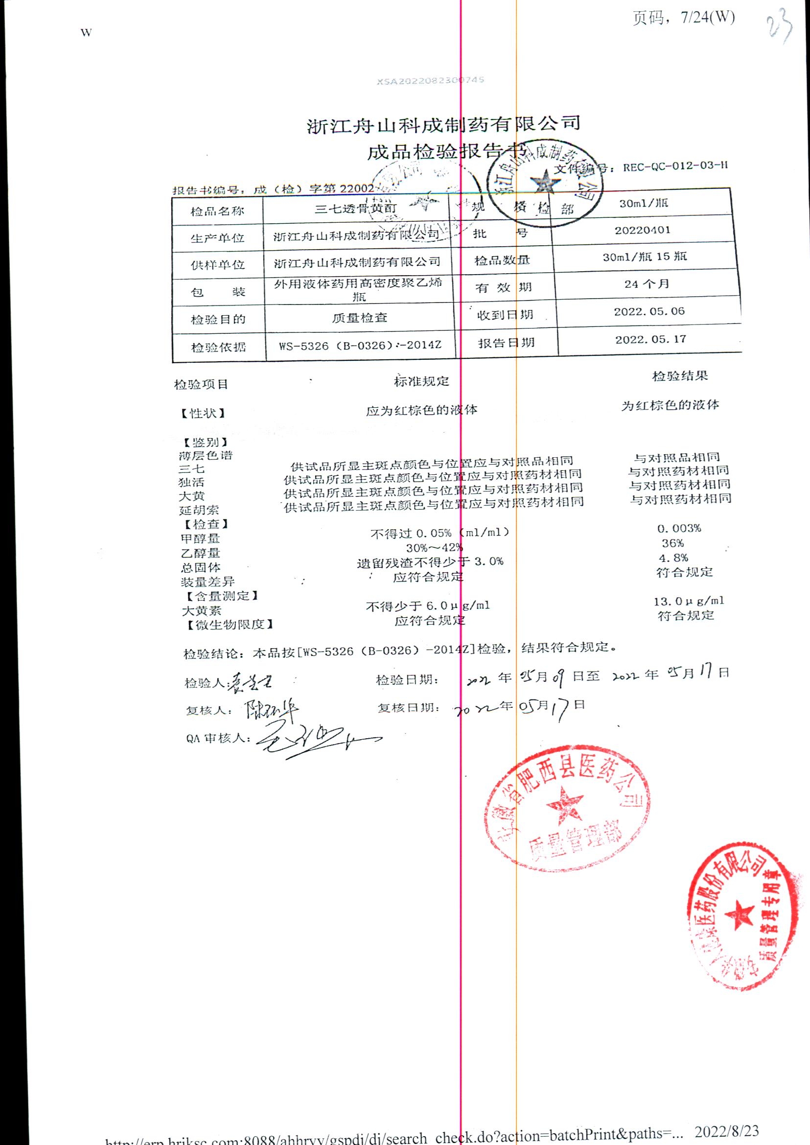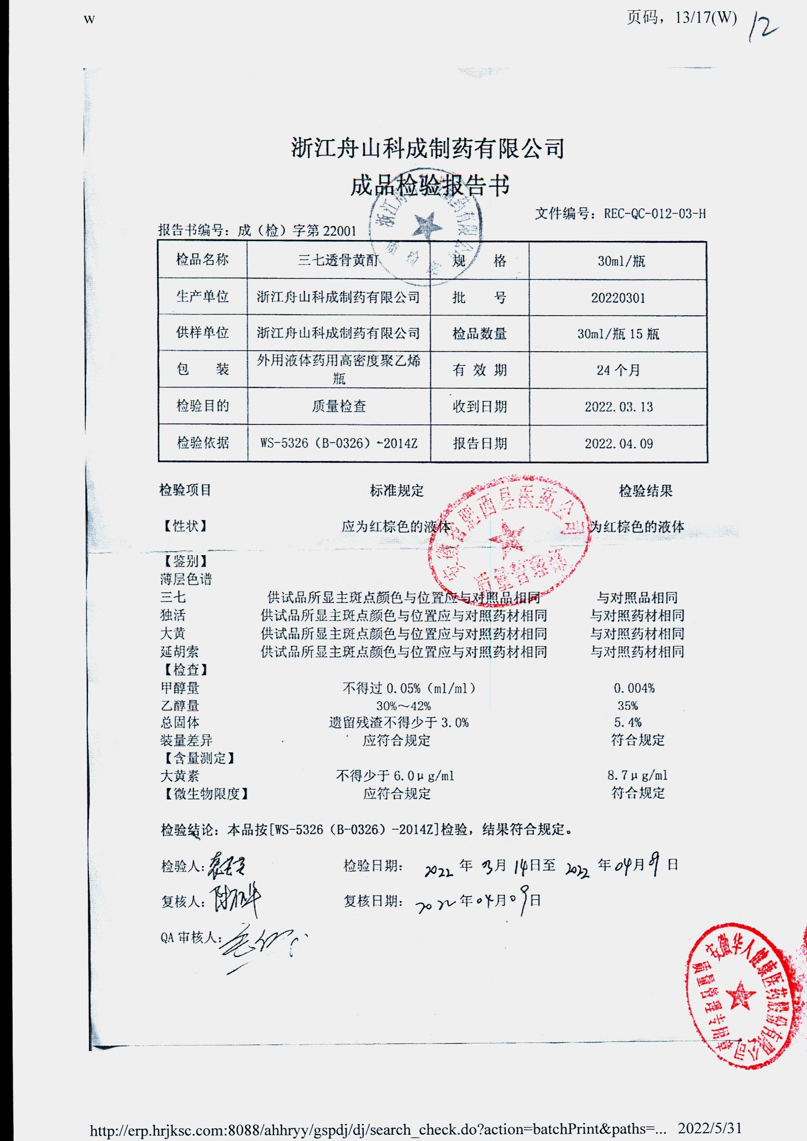 | 三七透骨黃酊 | 30ml | 20220401 | 查看詳情 |
