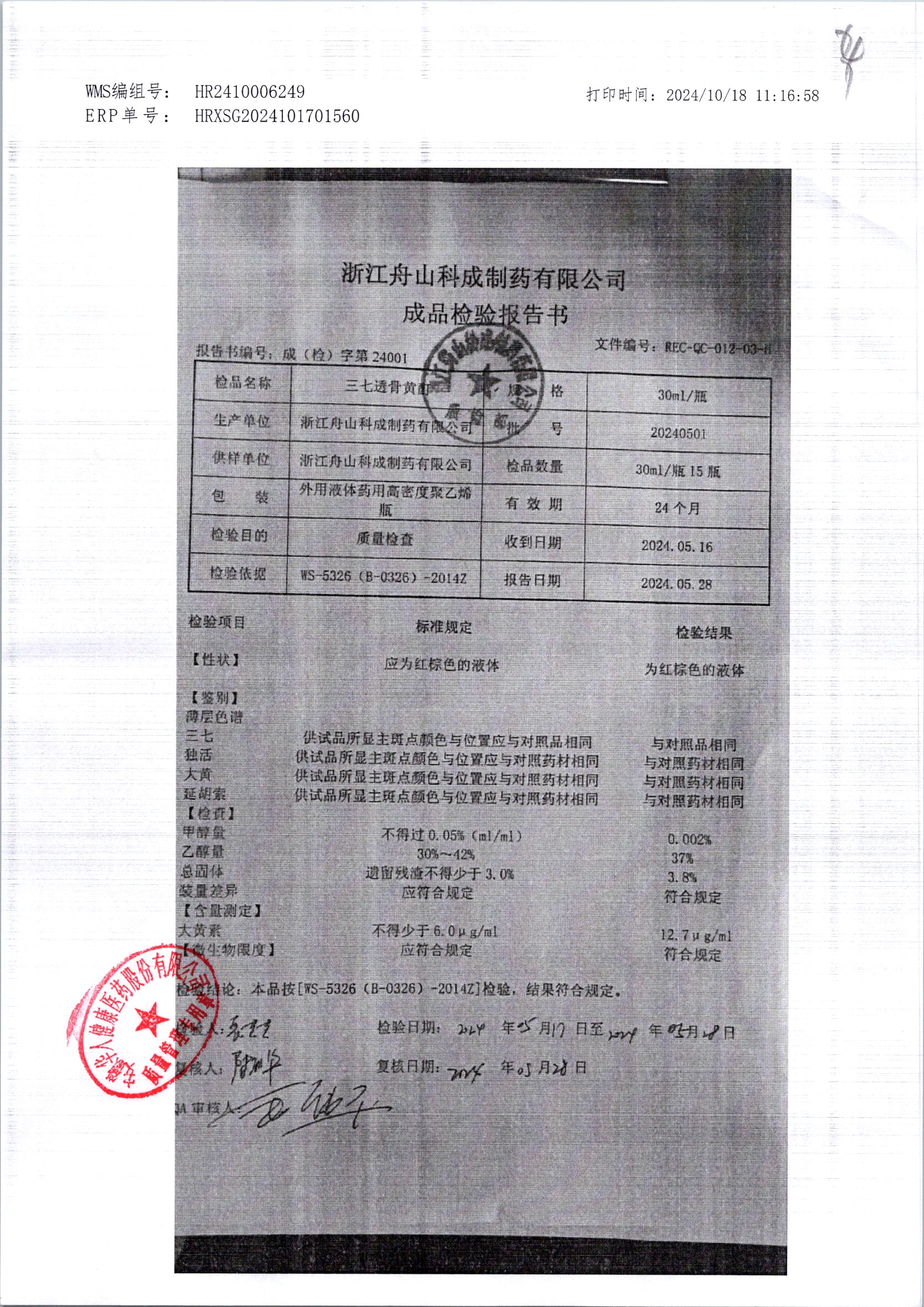 | 三七透骨黃酊 | 30ml | 20241201 | 查看詳情 |