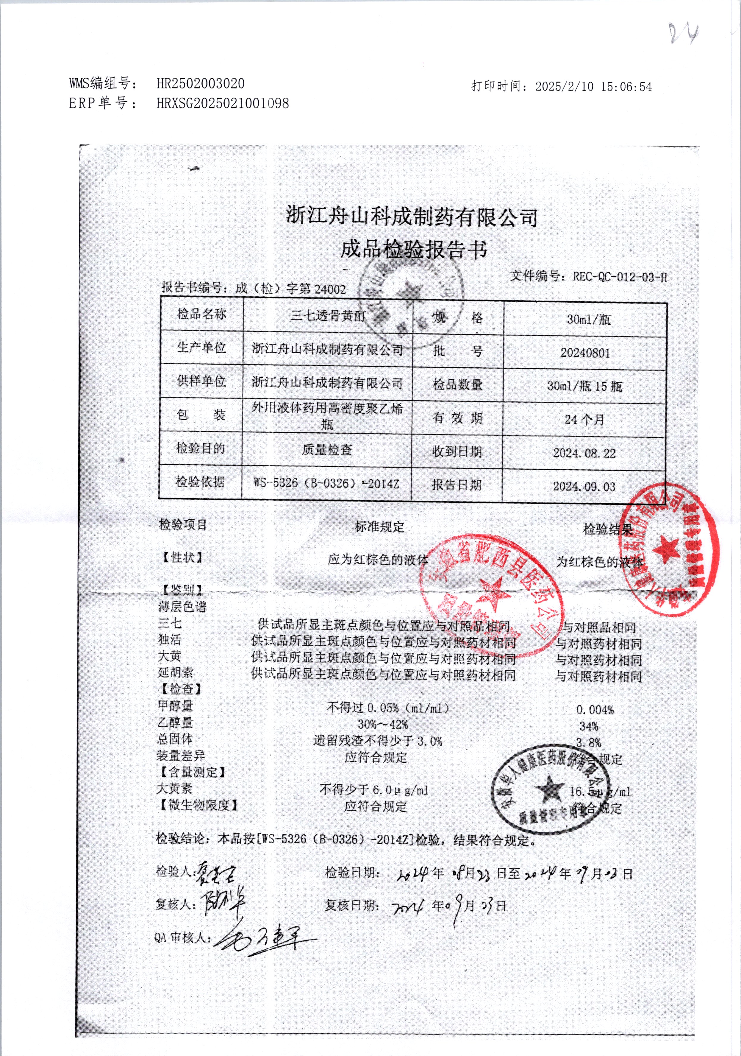 | 三七透骨黃酊 | 30ml | 20240801 | 查看詳情 |