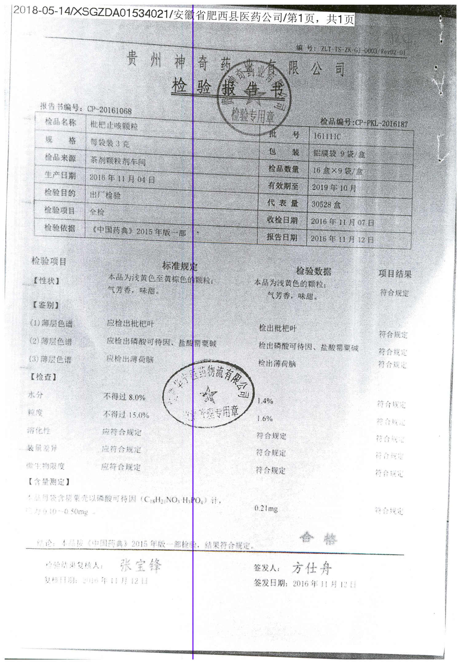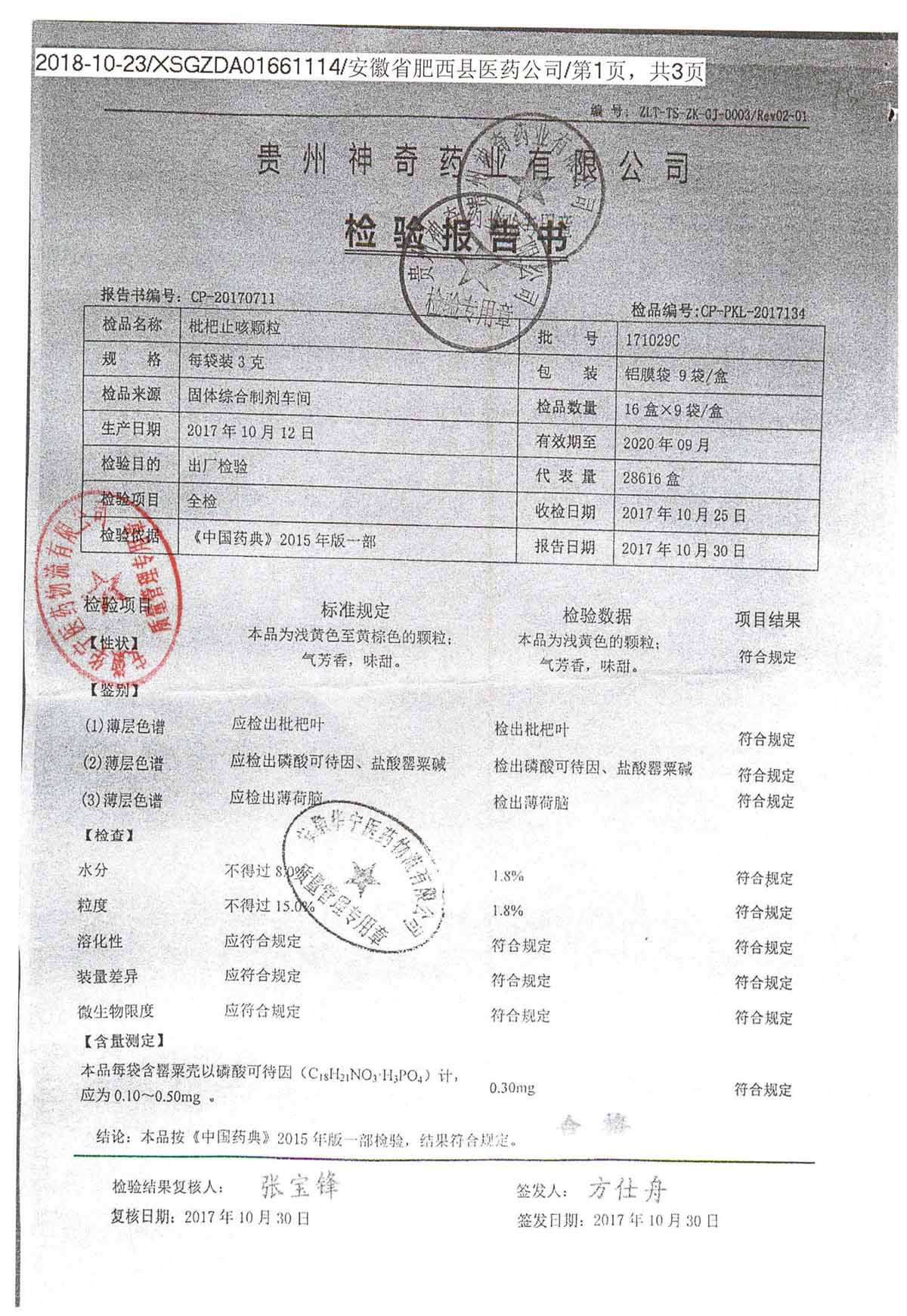 | 枇杷止咳顆粒 | 3g | 170730C | 查看詳情 |