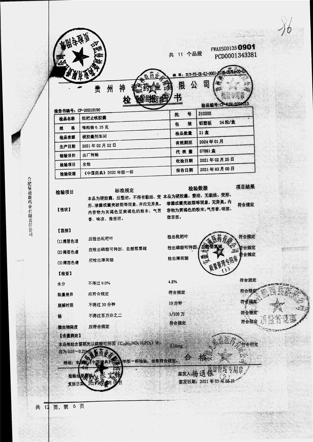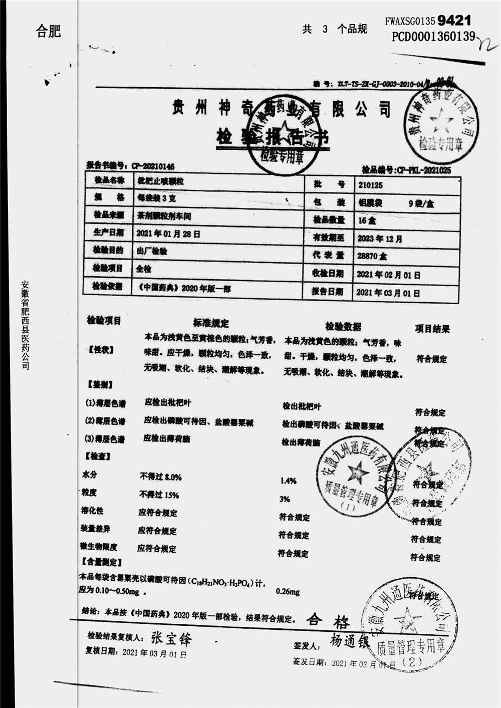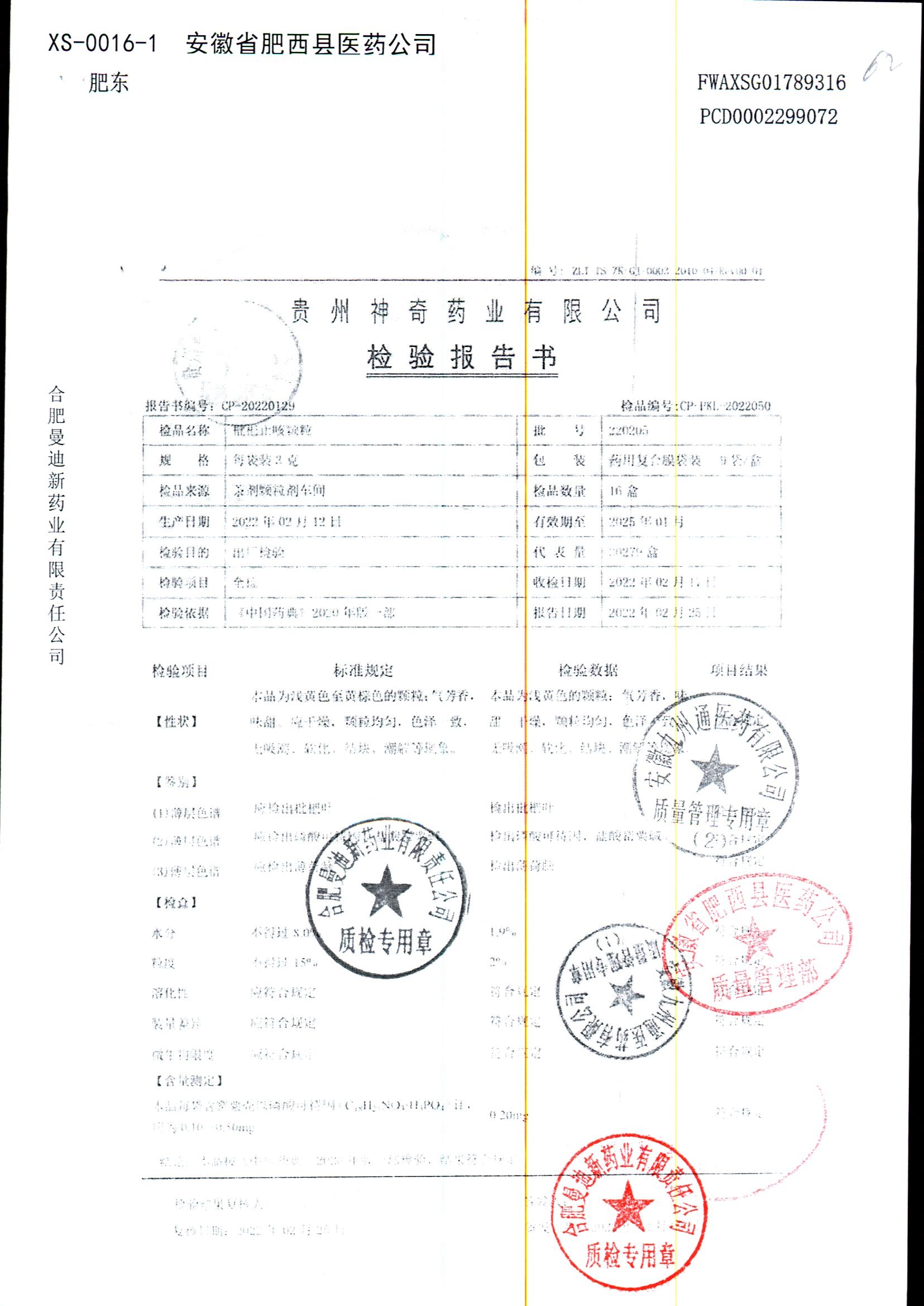 | 名稱 | 規(guī)格 | 批號(hào) | 藥檢報(bào)告 |