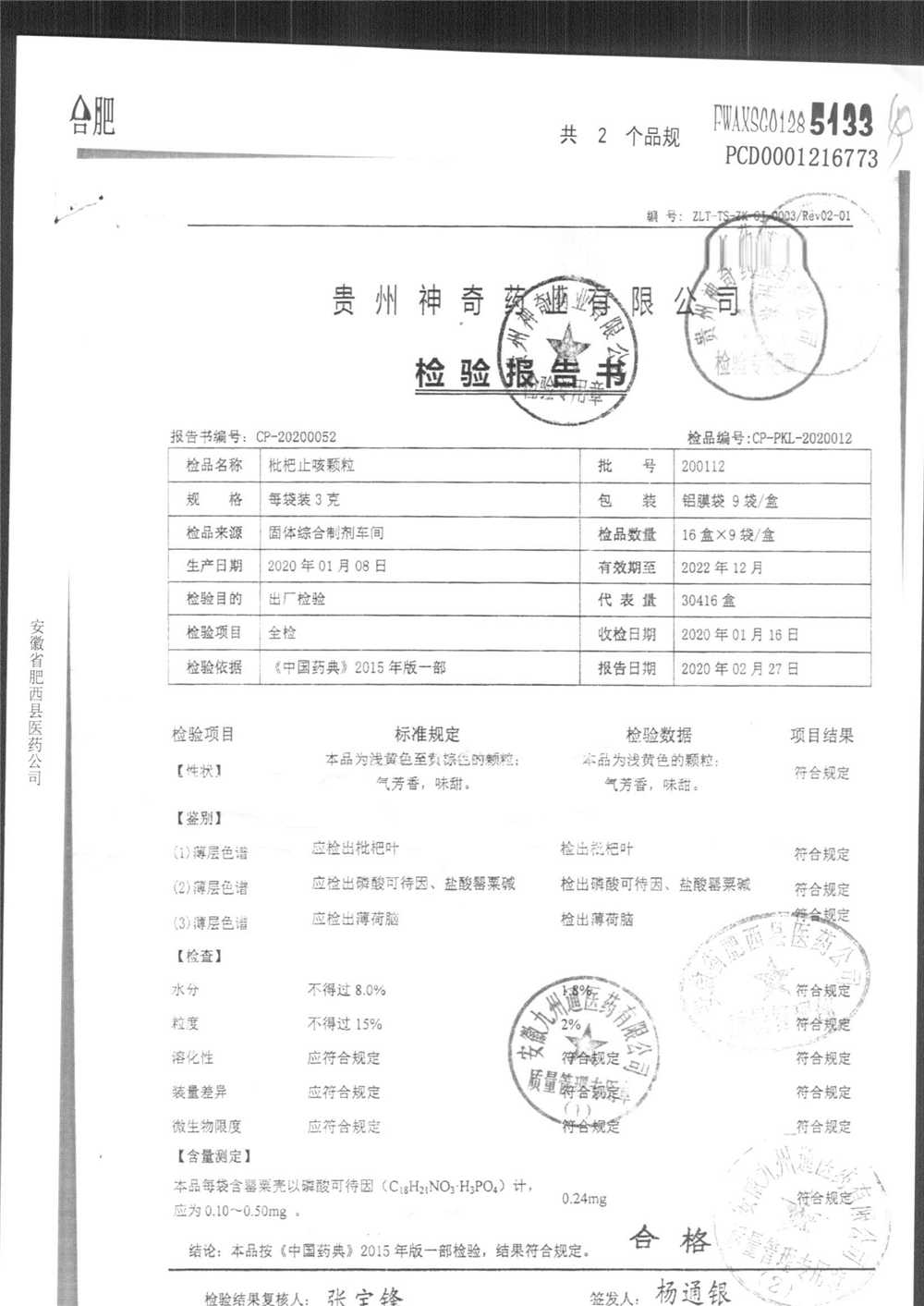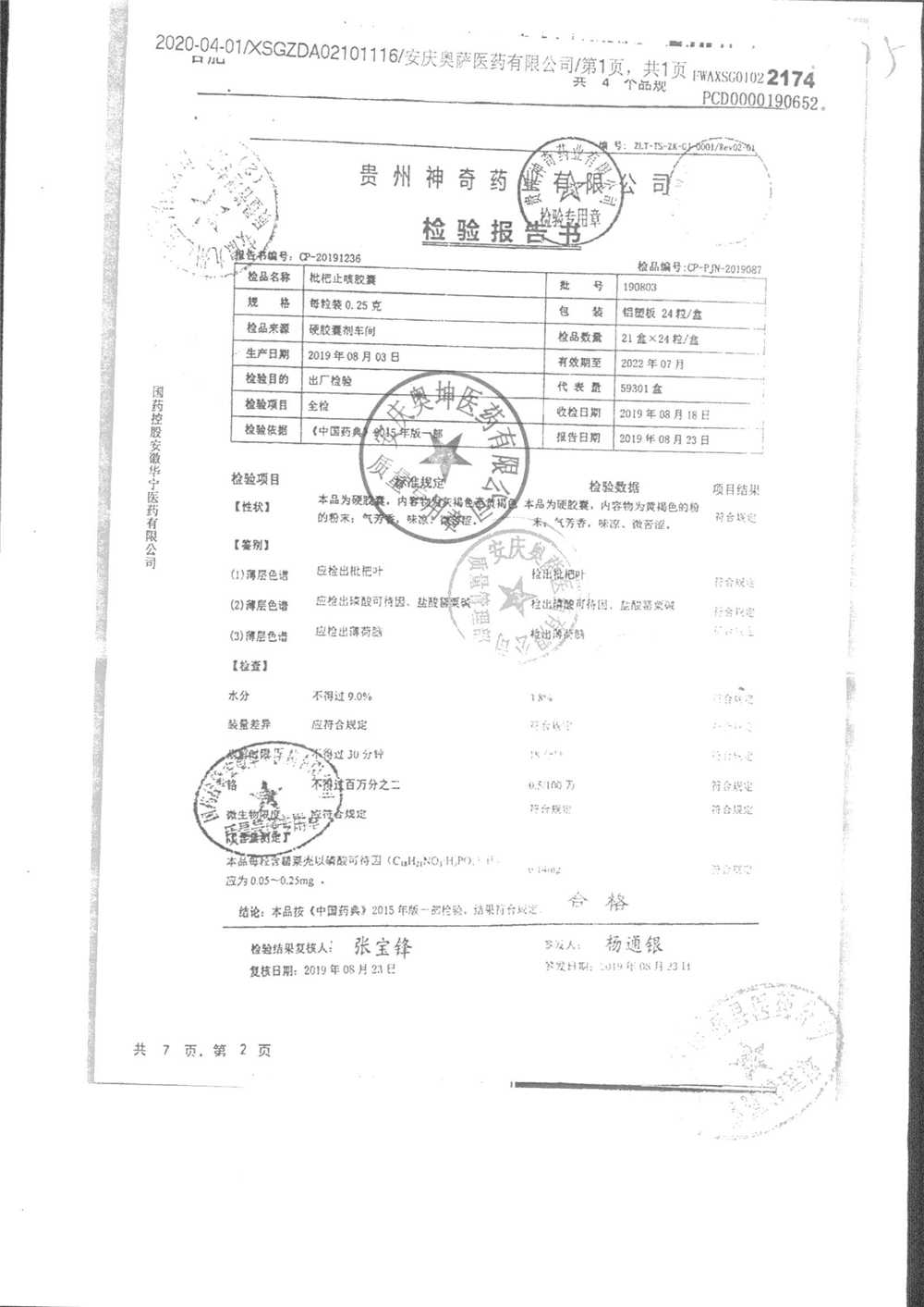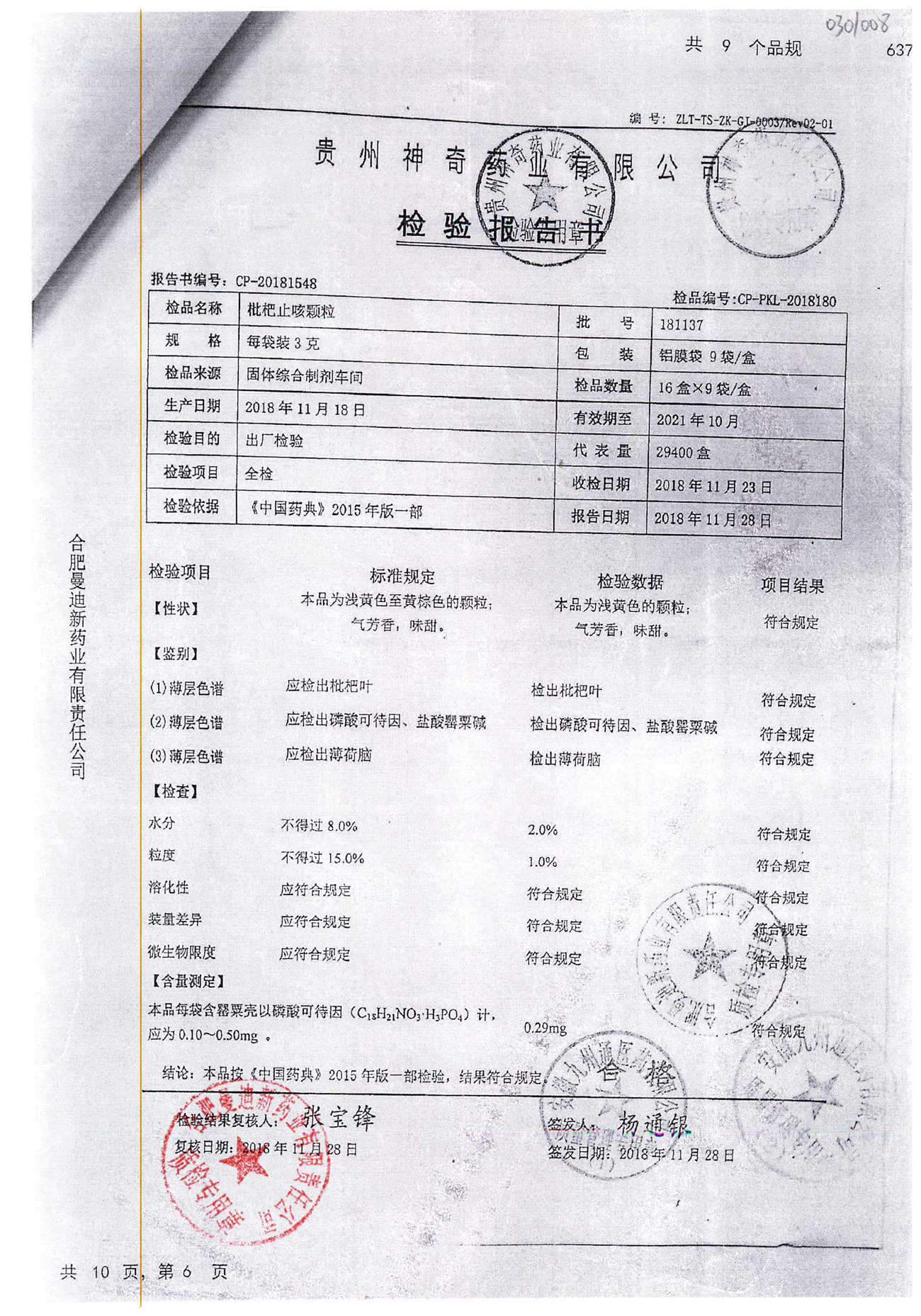 | 名稱 | 規(guī)格 | 批號(hào) | 藥檢報(bào)告 |