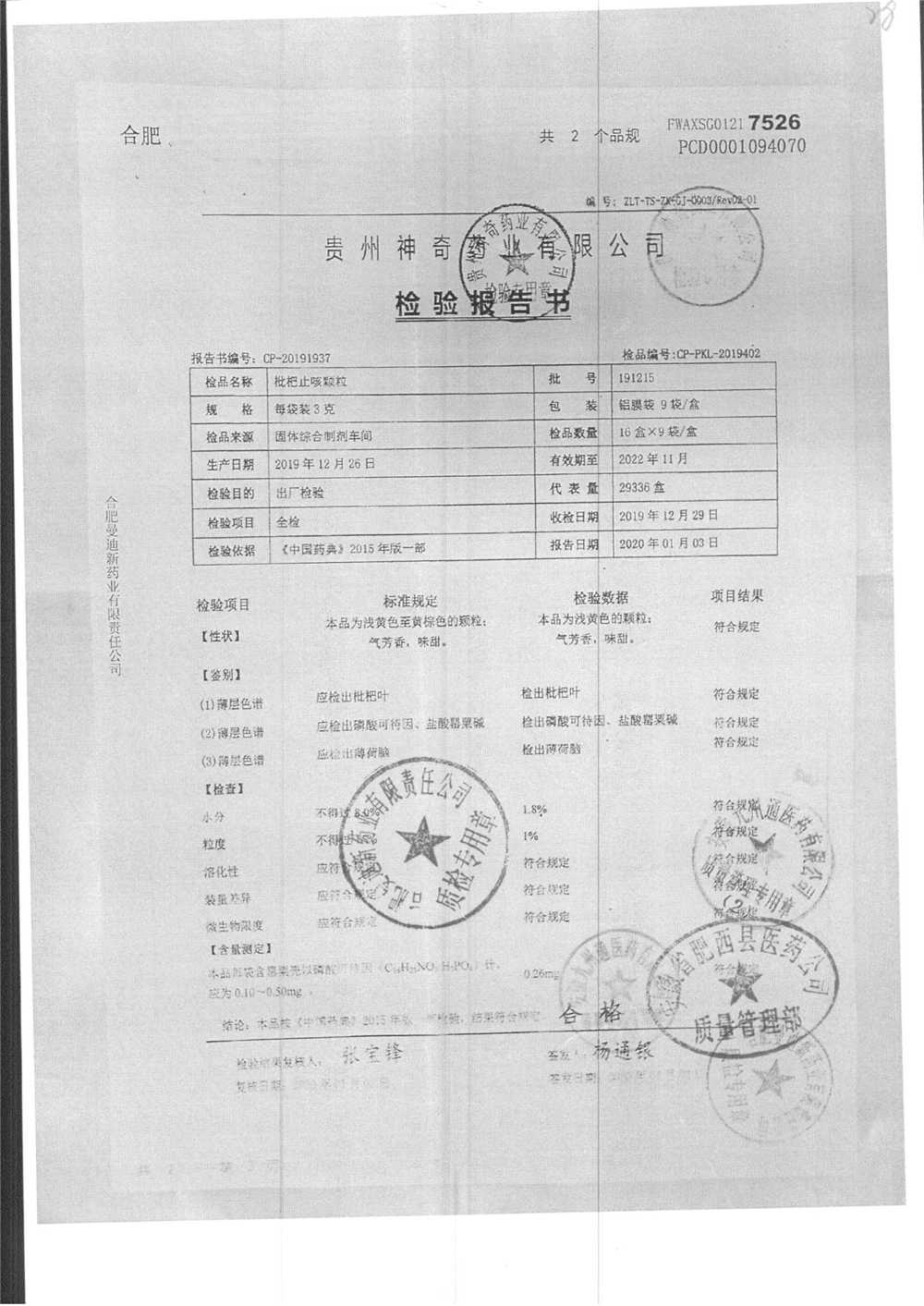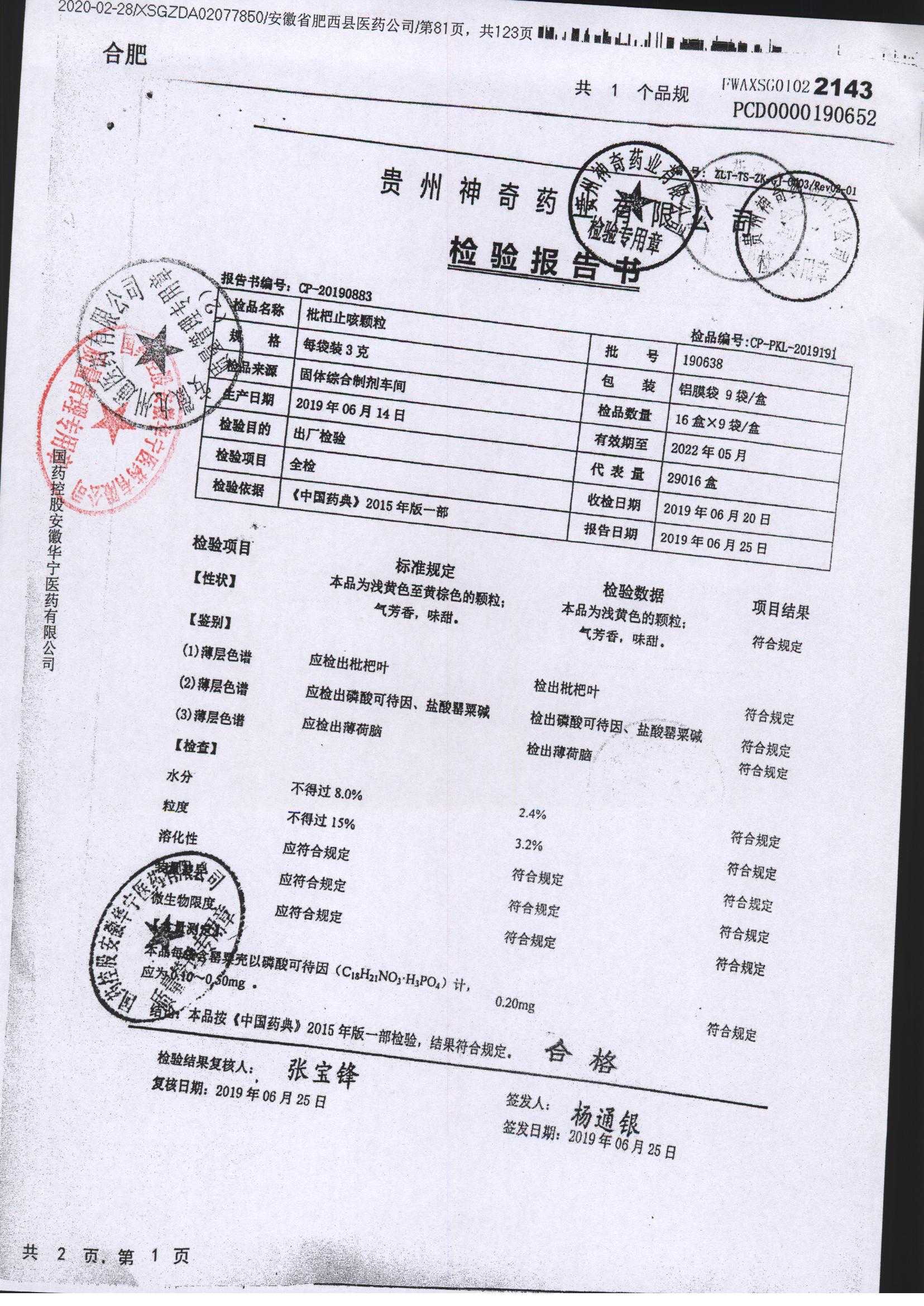| 枇杷止咳顆粒 | 3g | 191215 | 查看詳情 |
