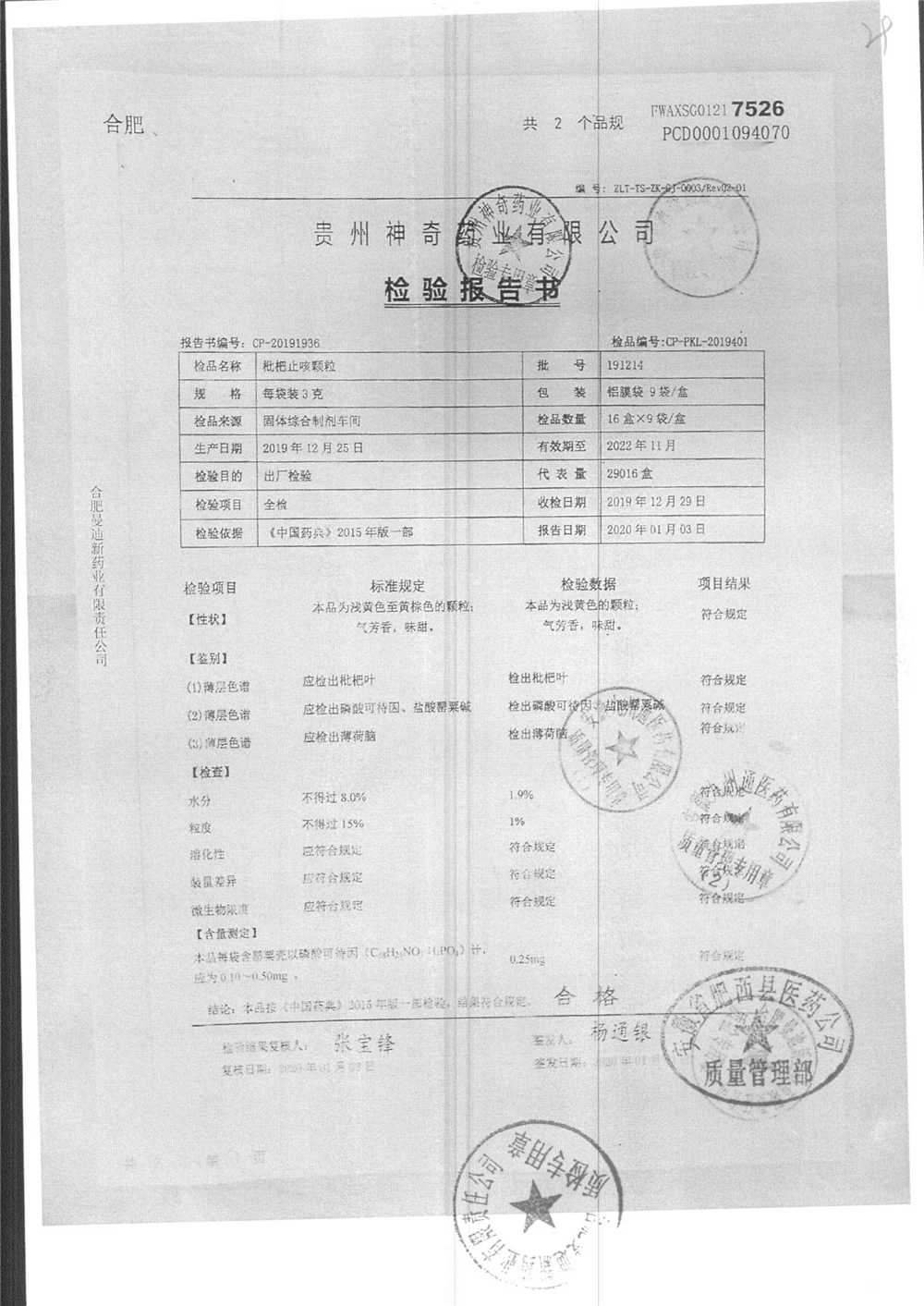 | 枇杷止咳顆粒 | 3g | 191214 | 查看詳情 |