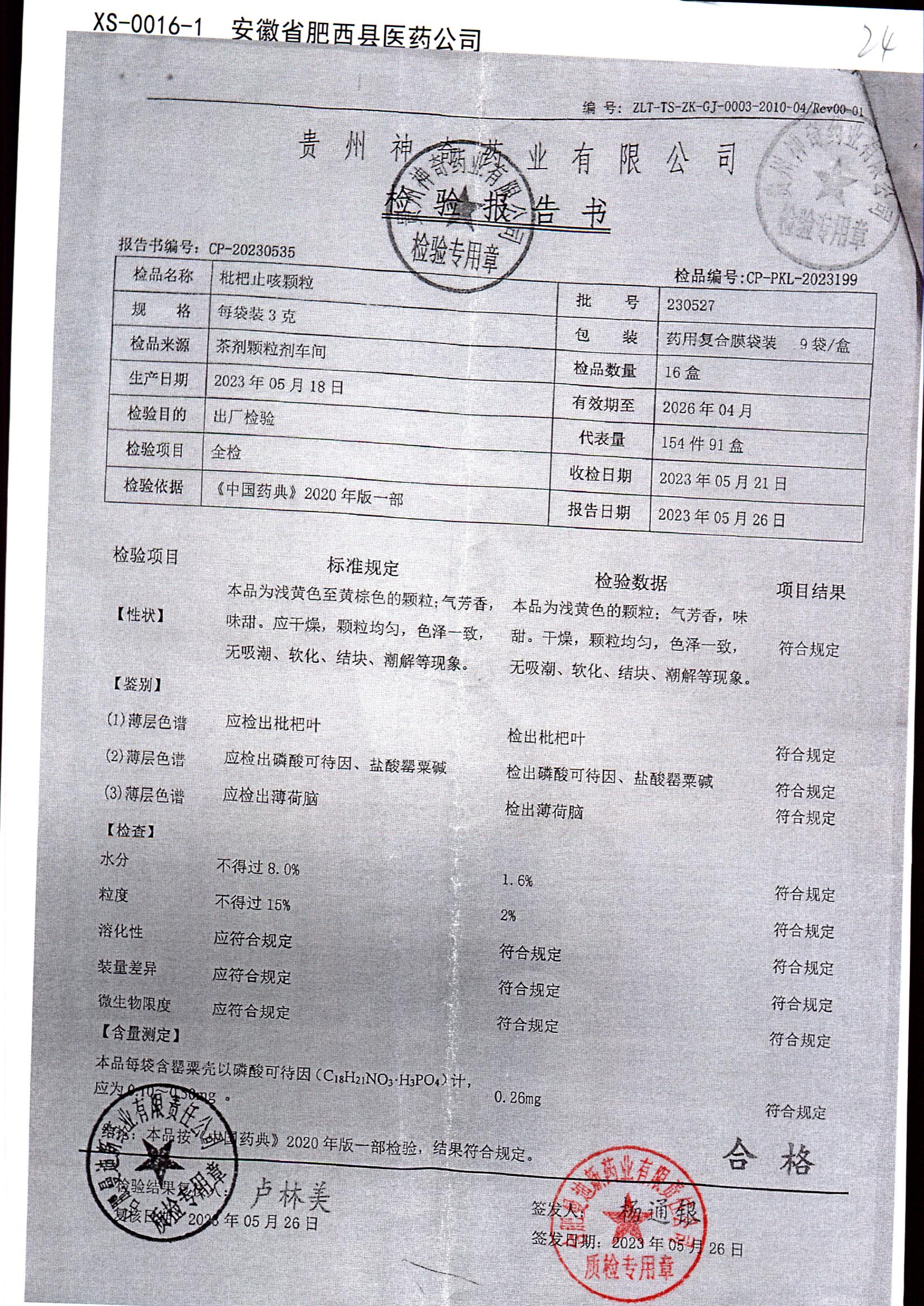 | 枇杷止咳顆粒 | 3g | 230527 | 查看詳情 |
